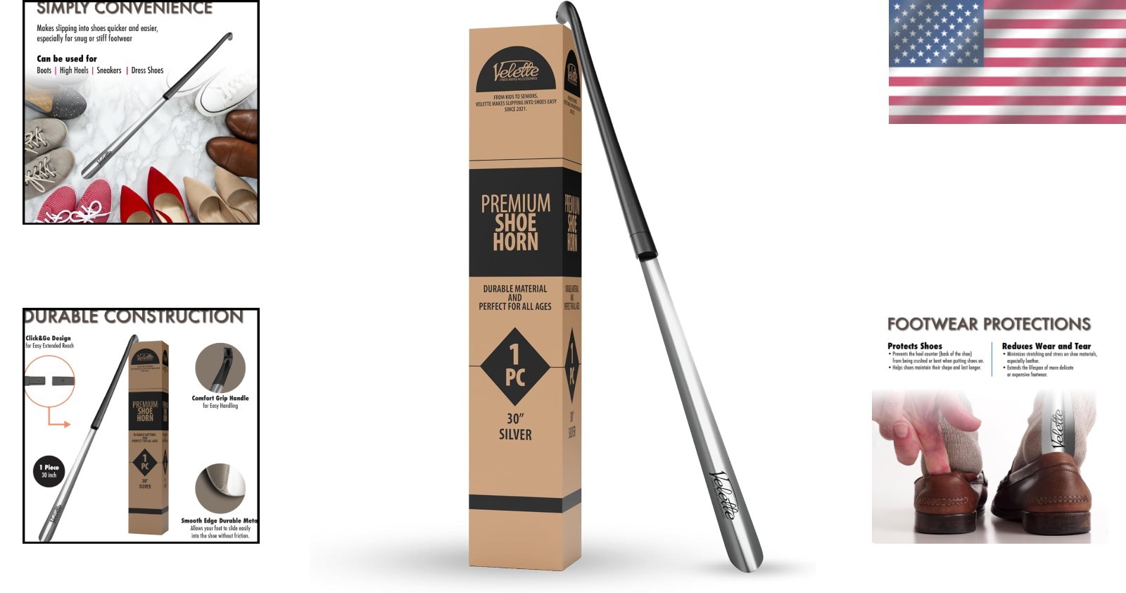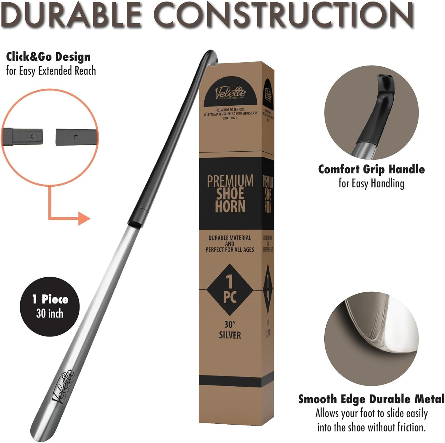 Metal Shoe Horn Long Handle for Seniors - 30 Extra Long Shoe Horn