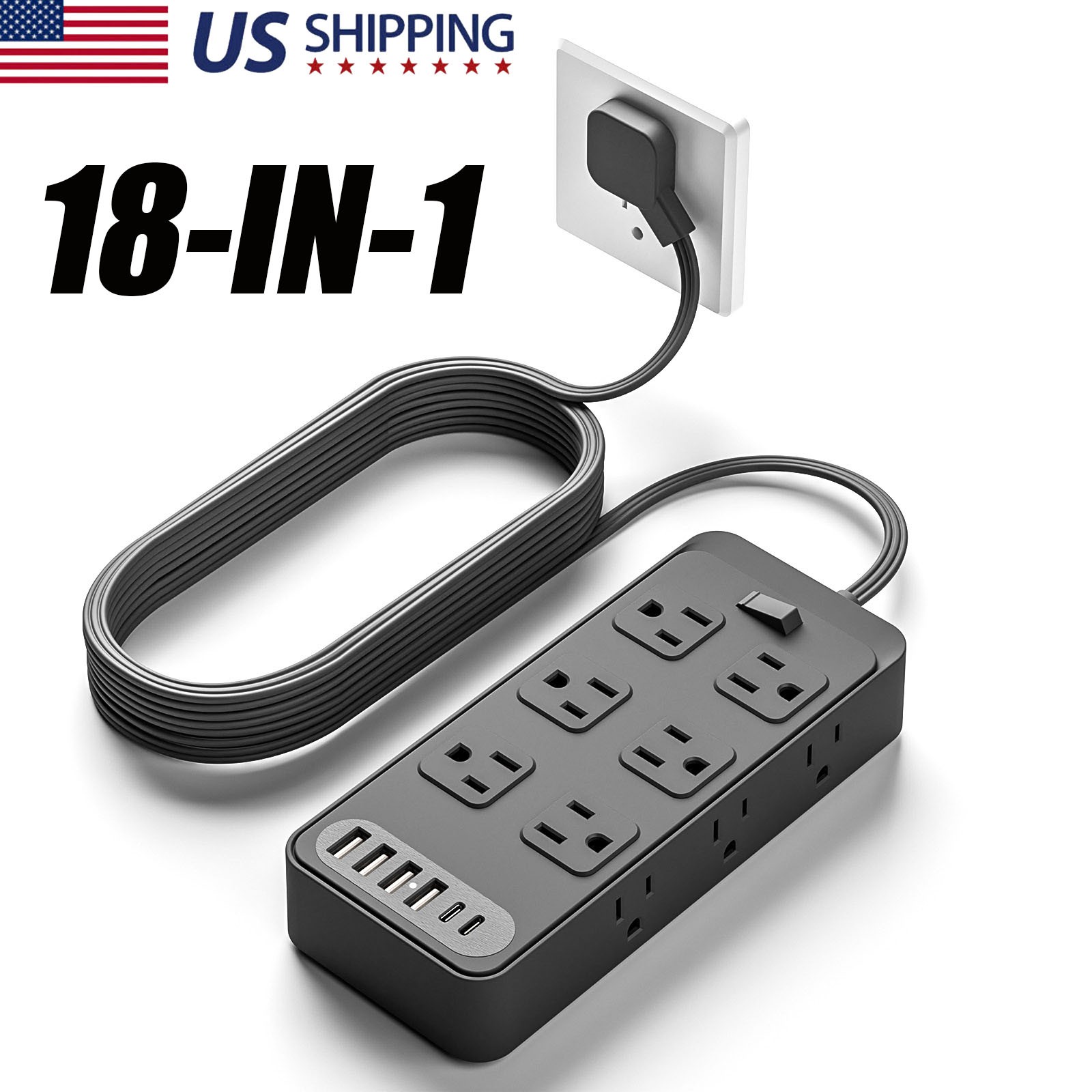 как выглядит 5FT Power Strip Surge Protector 12 AC Outlets 4 USB Ports 2 Type C Port NEW фото