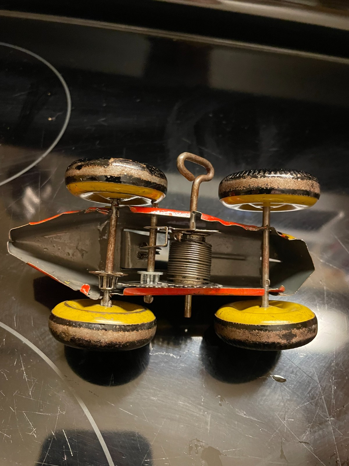 Character Family: MARX #7 BOAT TAIL RACE CAR TIN WIND UP TOY
