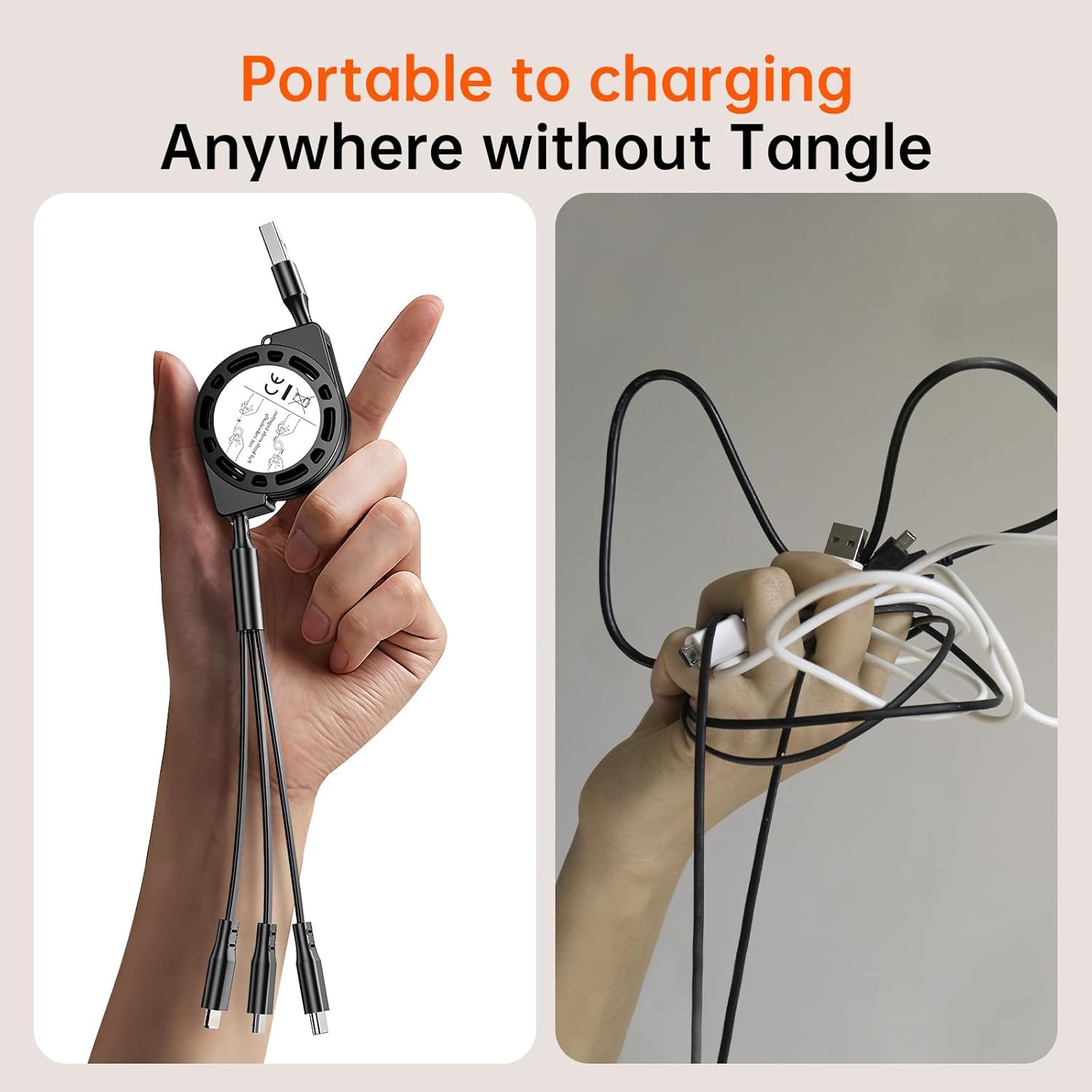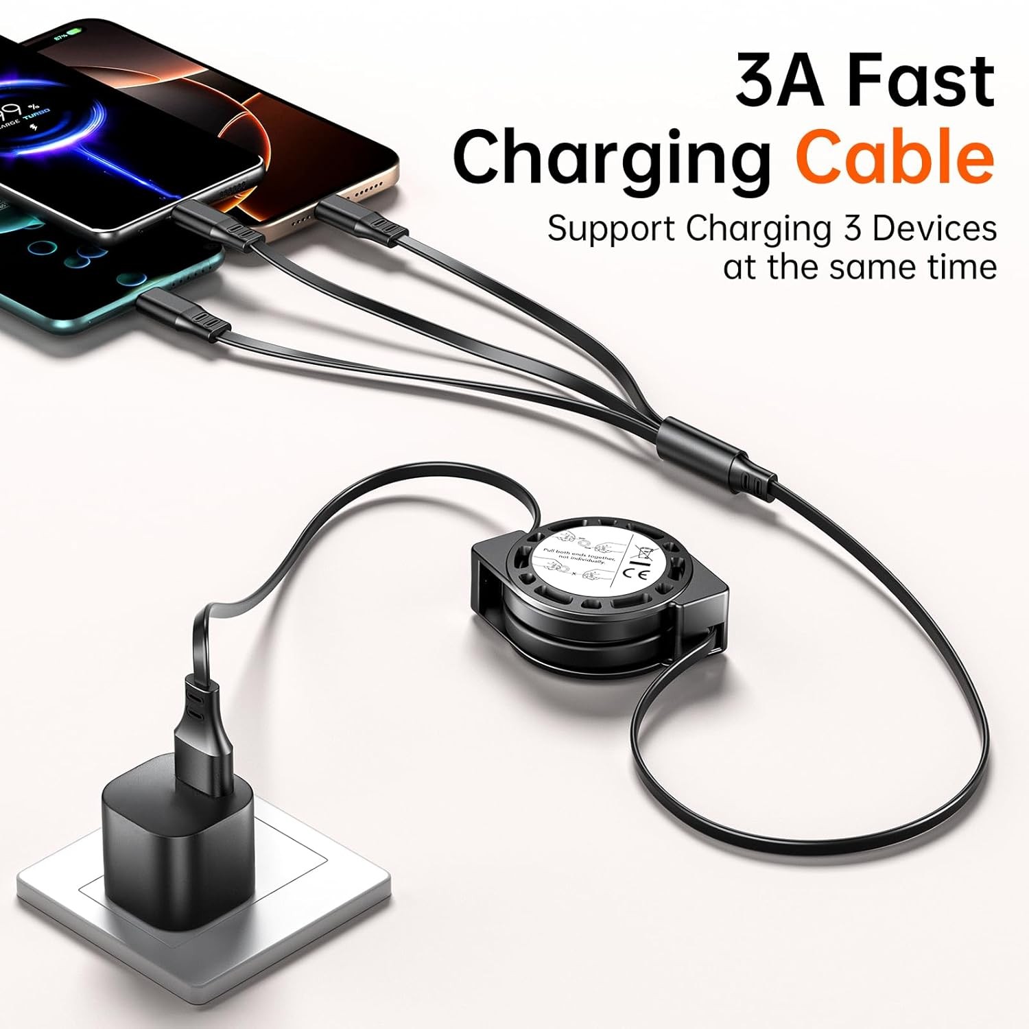2PK Retractable Multi Charging Cable Fast Charger w/ Lightning/Type C/Micro USB