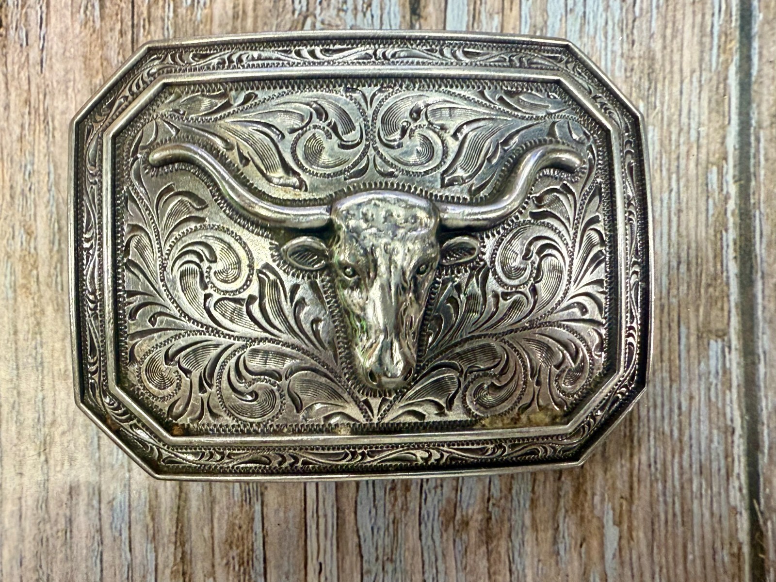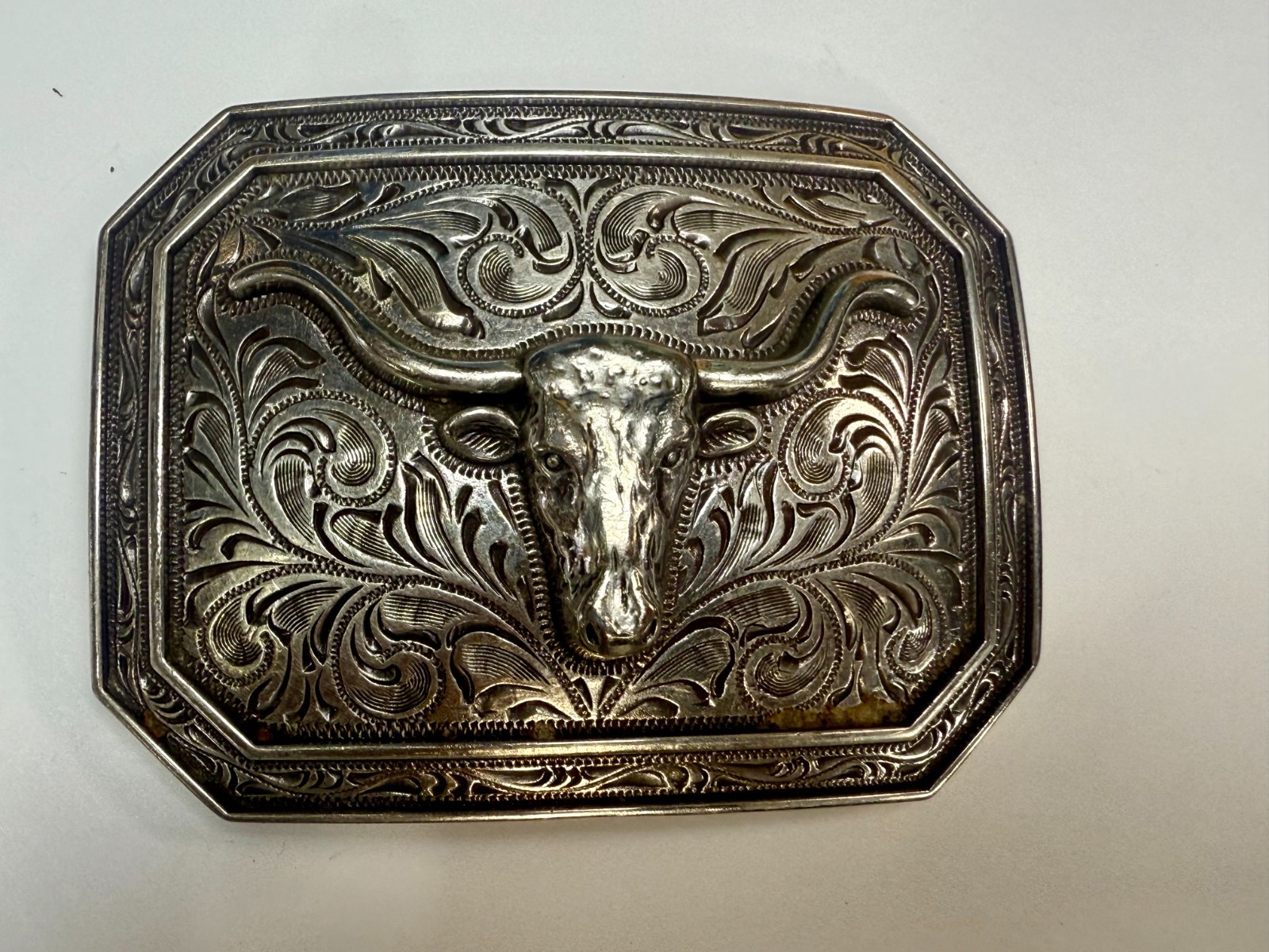 • Longhorn Cow Bull Head Steer Swirl Ornate Silver Tone Western Cowboy Belt Buckle