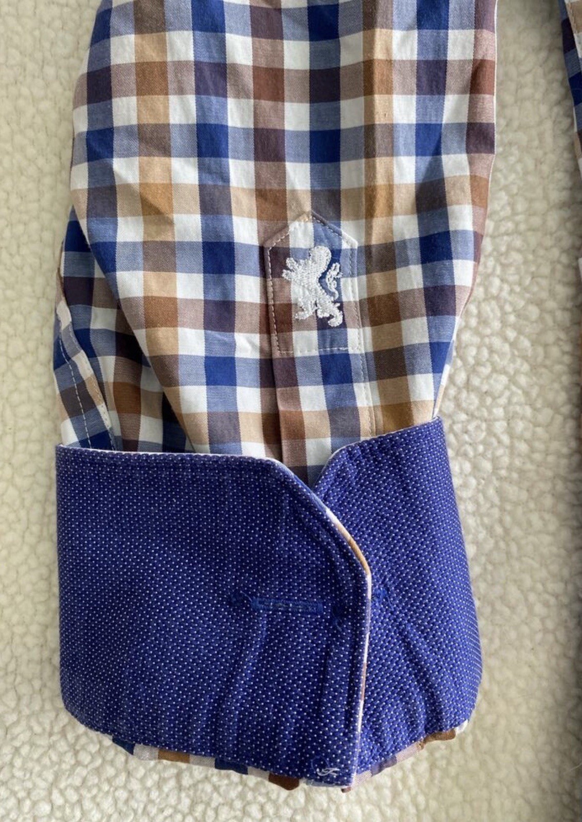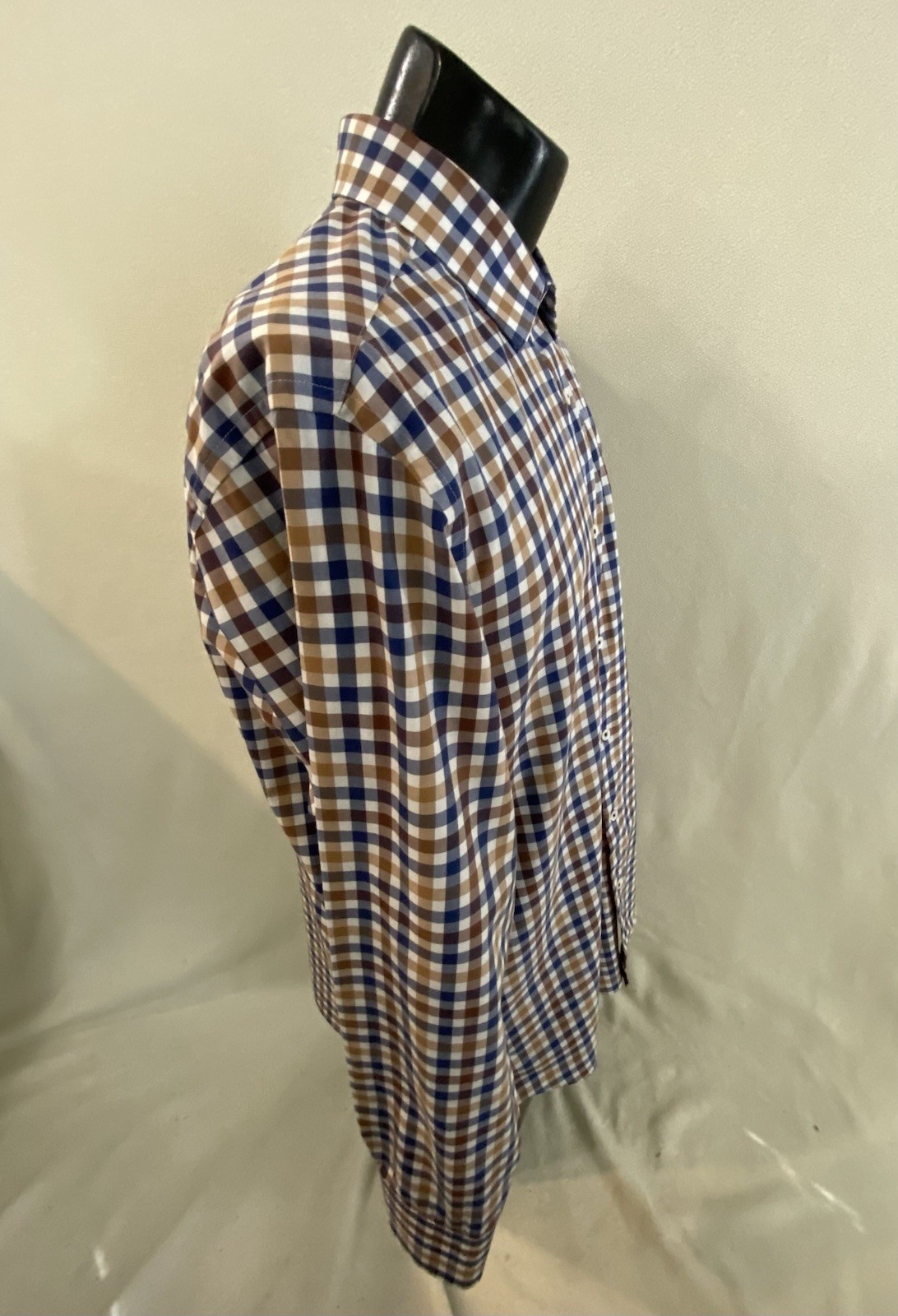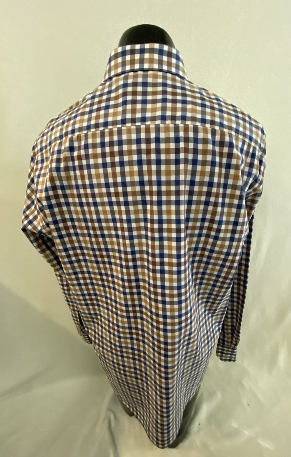 как выглядит Bugatchi Shirt Men s 17 x 34/35 Check Long Sleeve Flip Cuff Button Down EUC фото