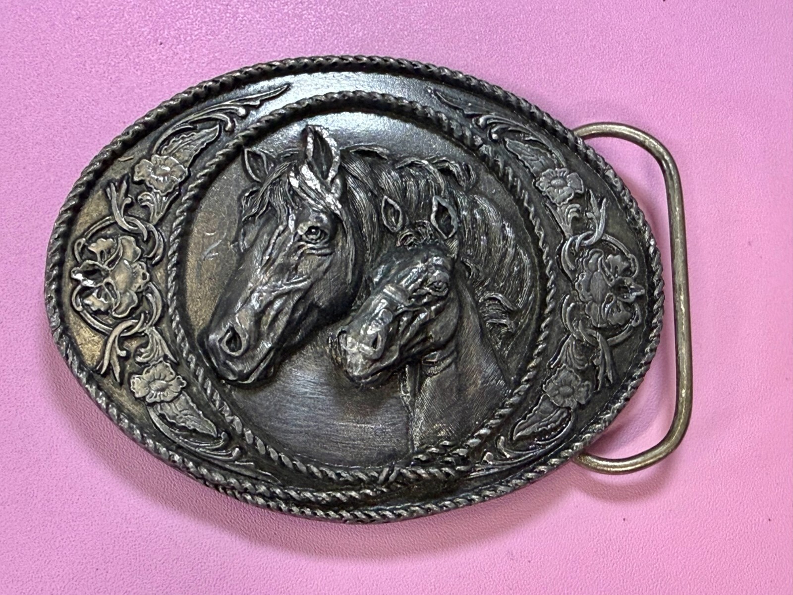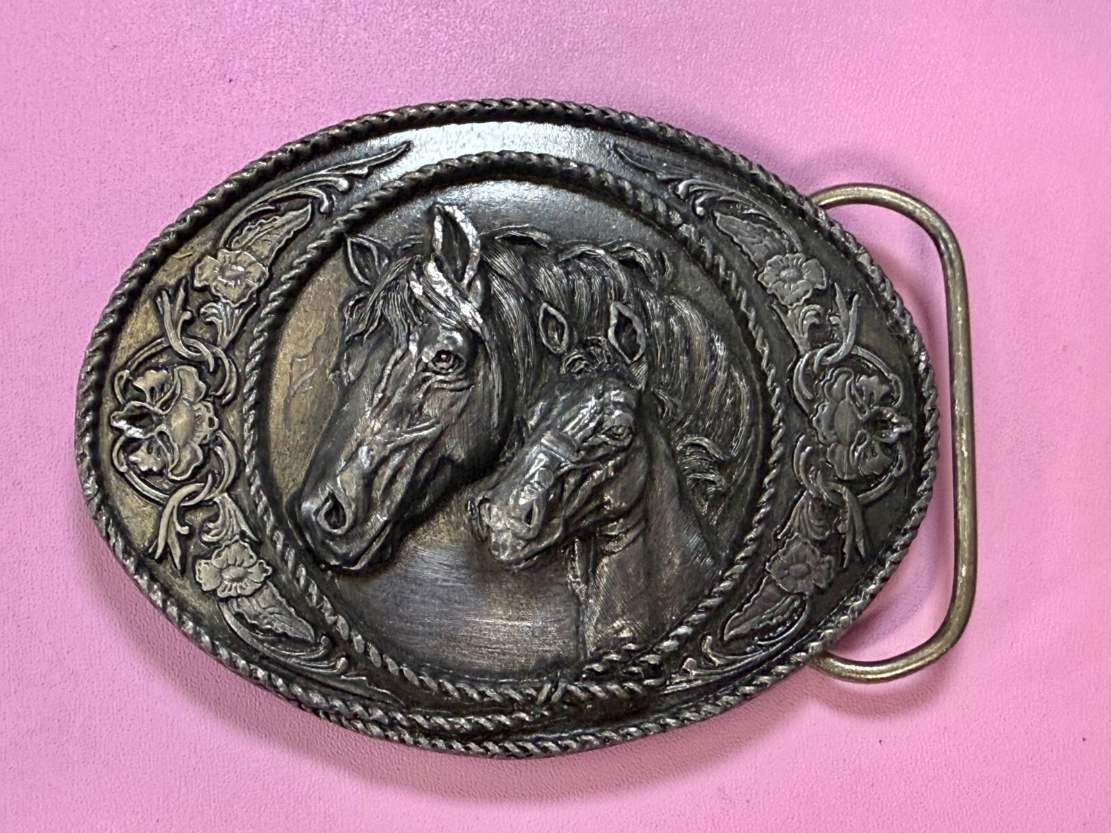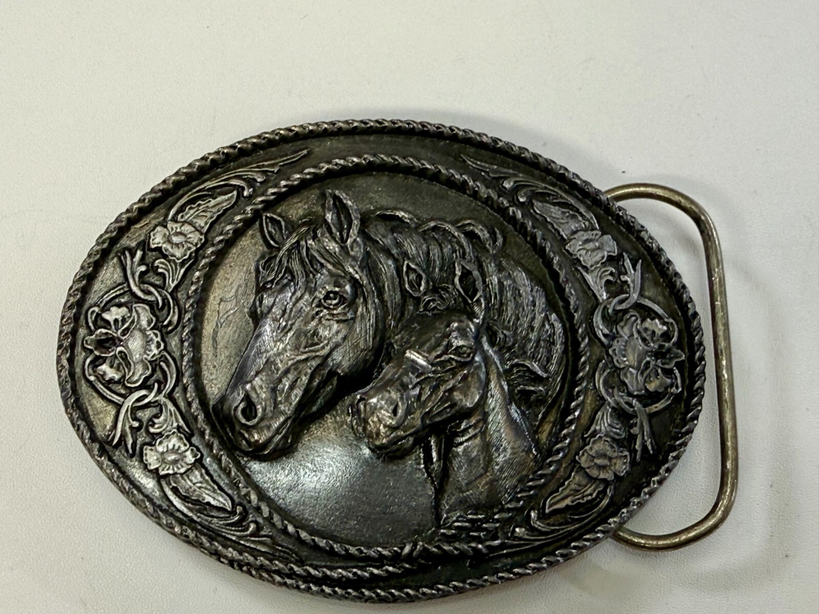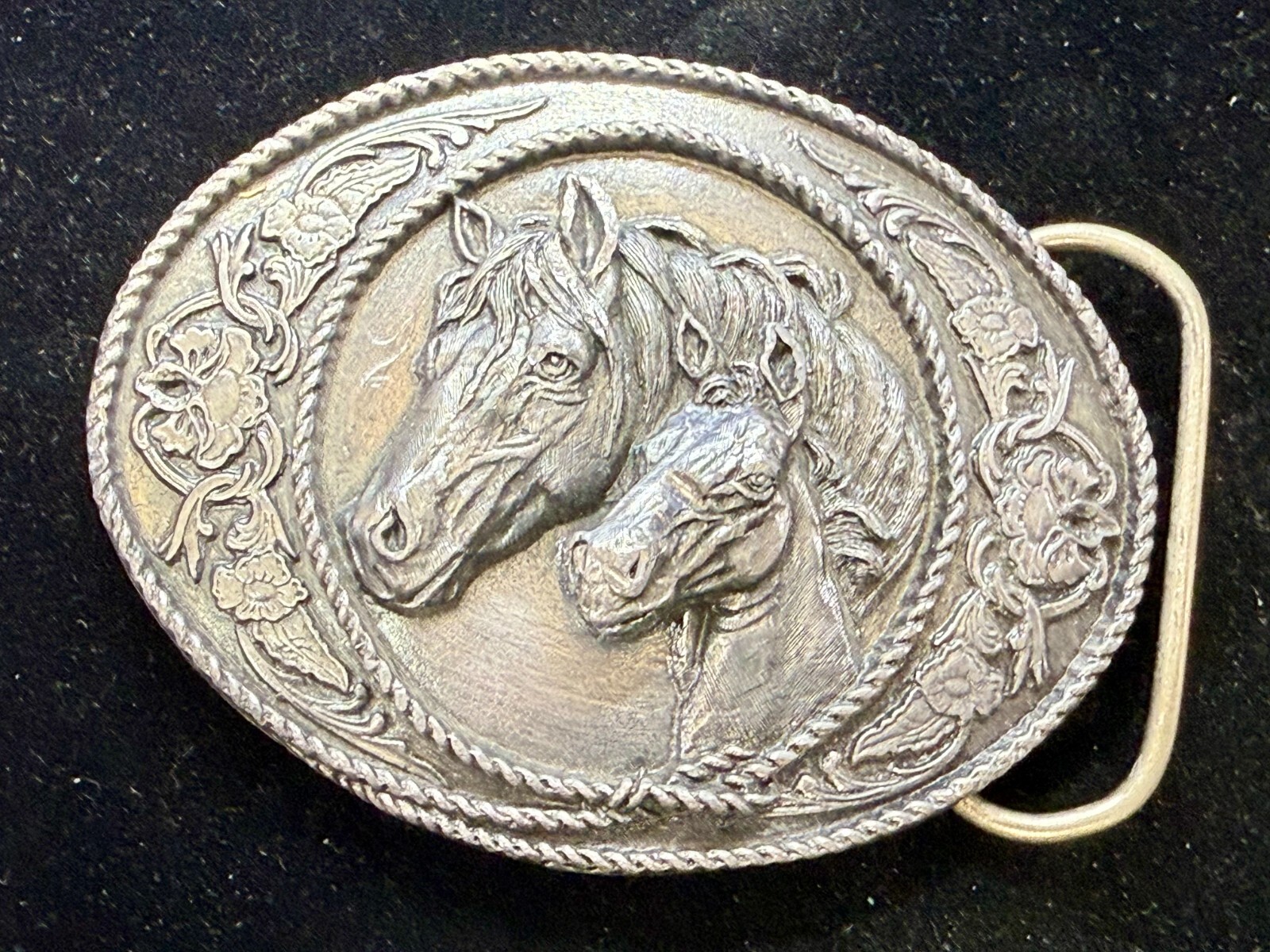 Western Style Two Horse Heads Mare Foal Vintage 1991 Siskiyou Belt Buckle A-5