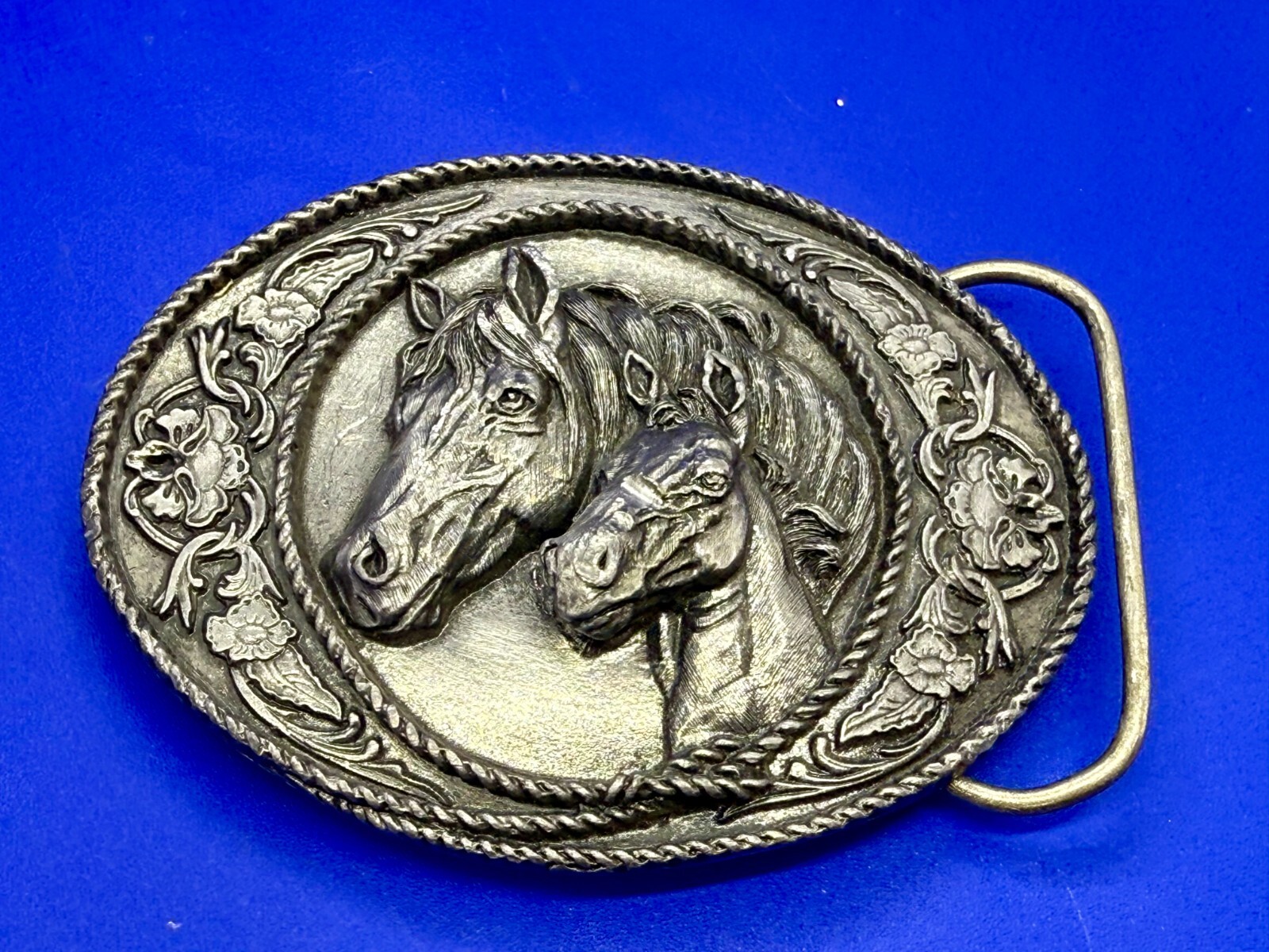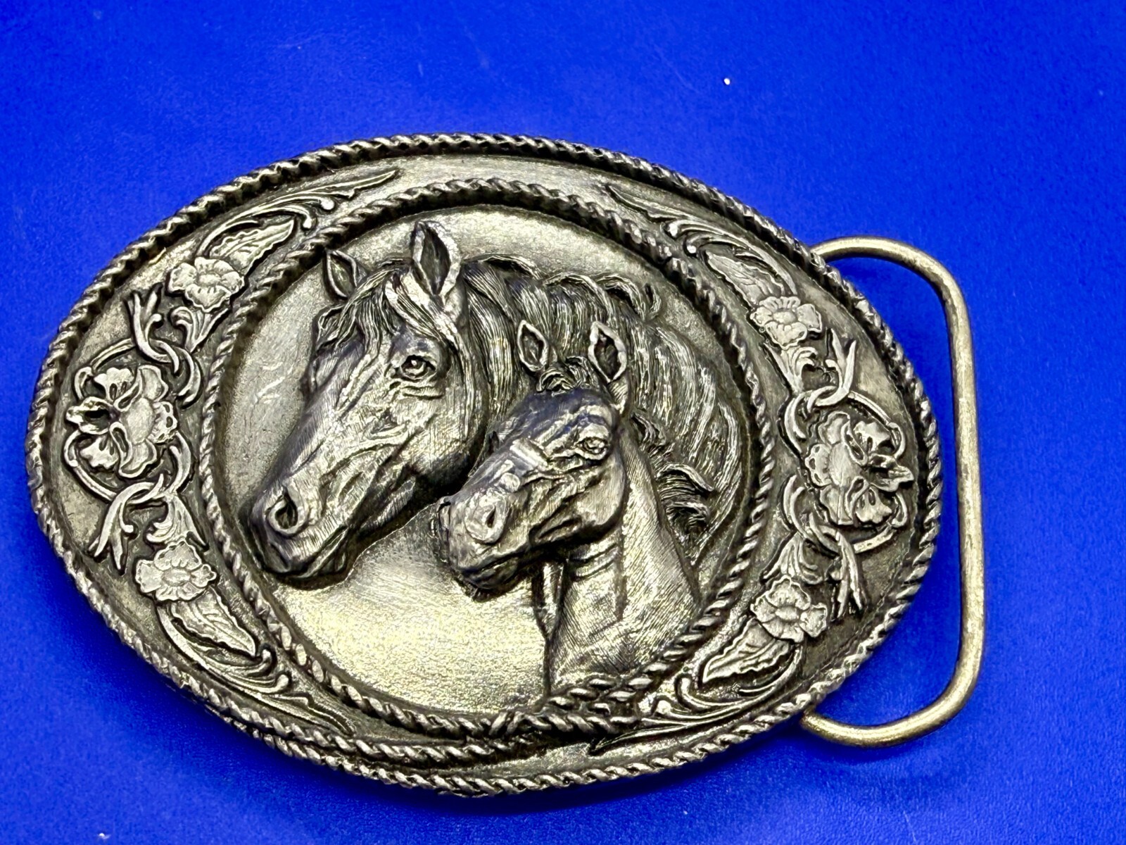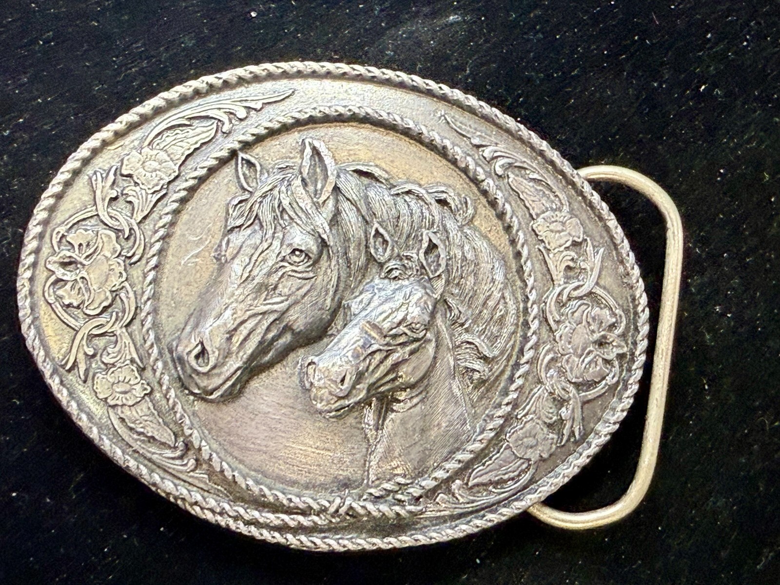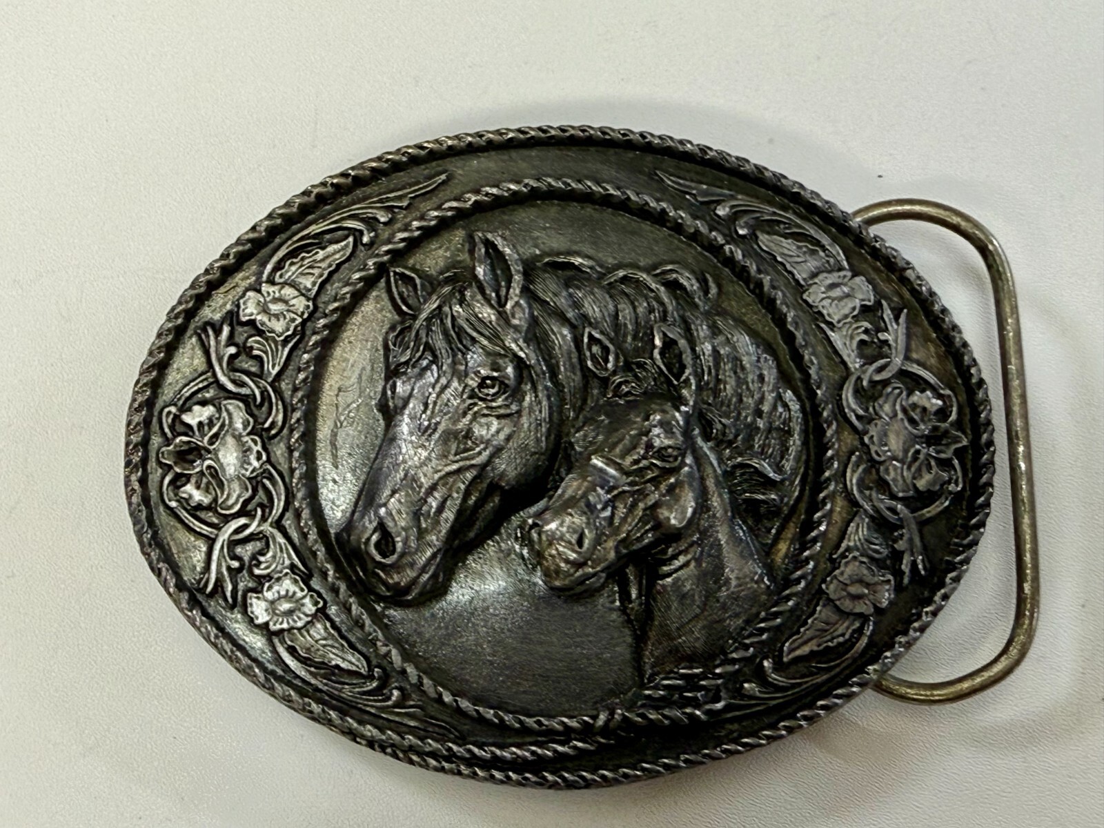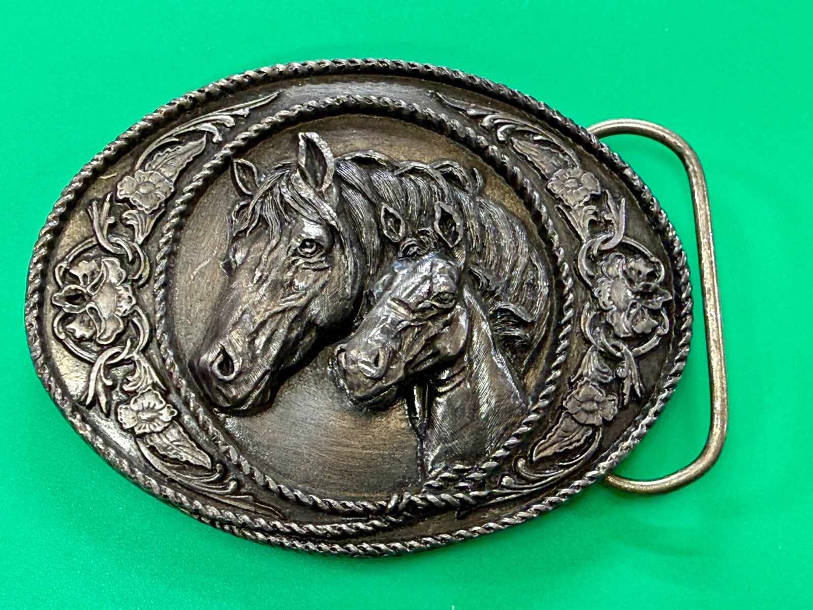 Western Style Two Horse Heads Mare Foal Vintage 1991 Siskiyou Belt Buckle A-5