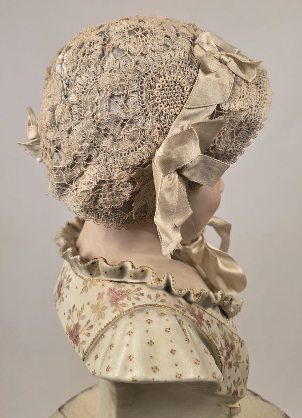 VICTORIAN 19TH C CHILD S HAND MADE BATTENBURG LACE BONNET W SPIDER WEB STITCHING