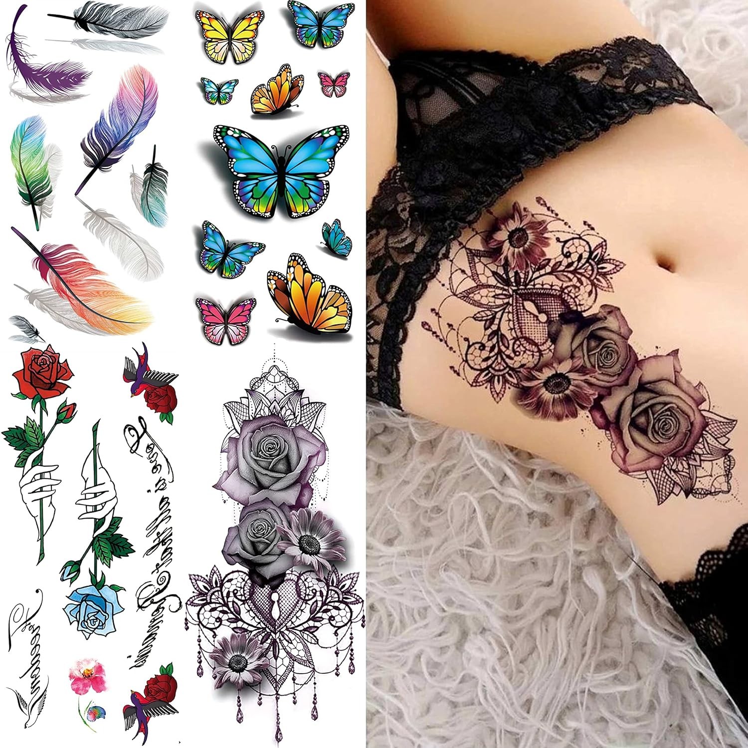 56 Sheets Variety Colorful Rose Flowers Temporary Tattoos For Women, Realistic F
