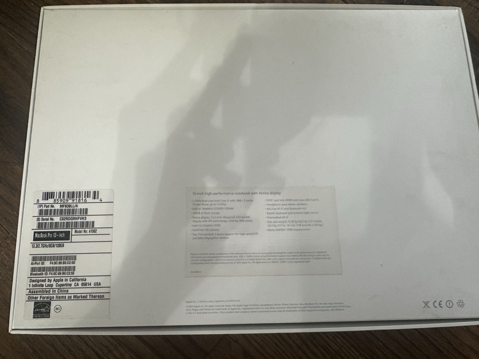 как выглядит BOX ONLY Apple MacBook Pro 13-inch A1502 фото