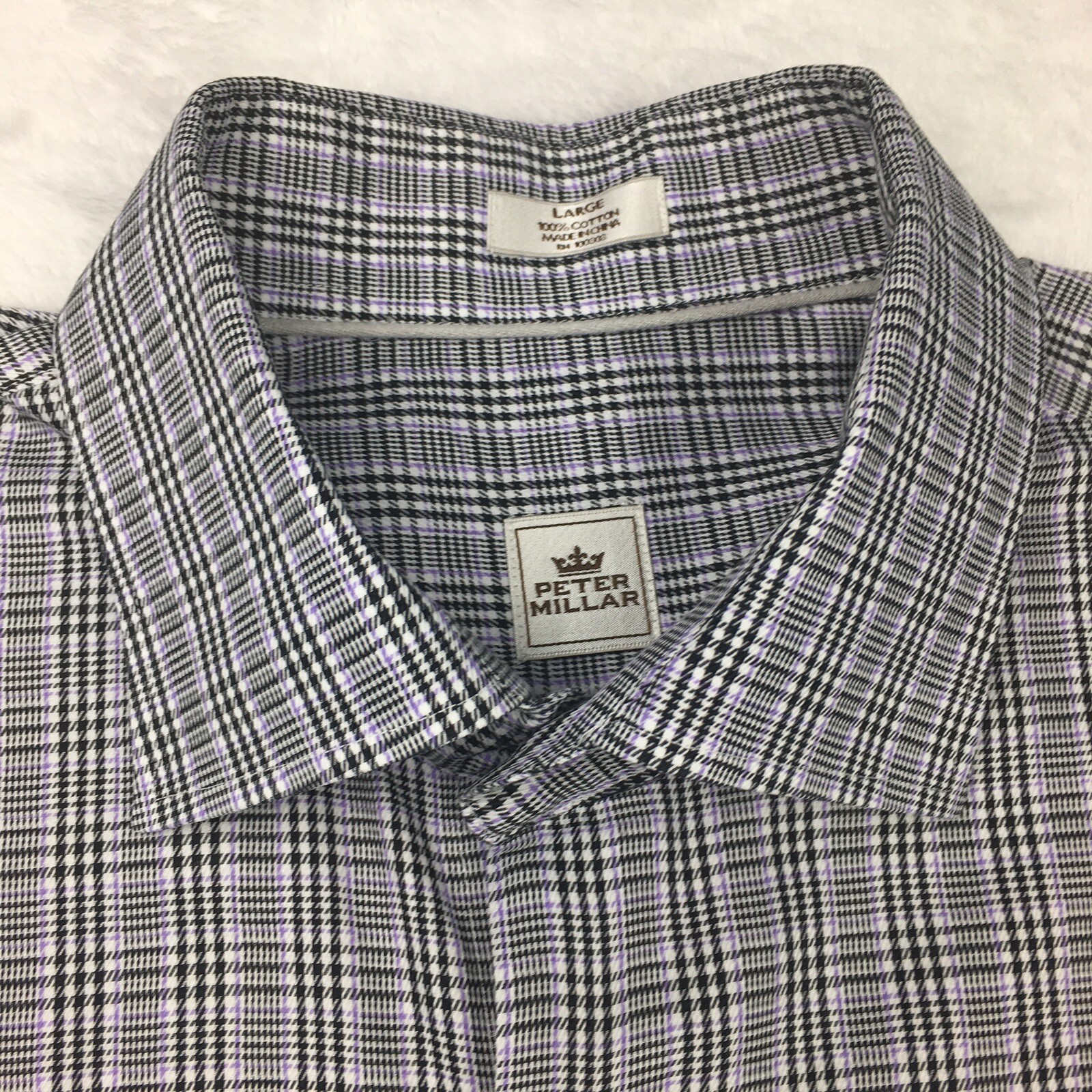 как выглядит Peter Millar Crown Dress Shirt Mens Large Black/White Plaid Long Sleeves фото