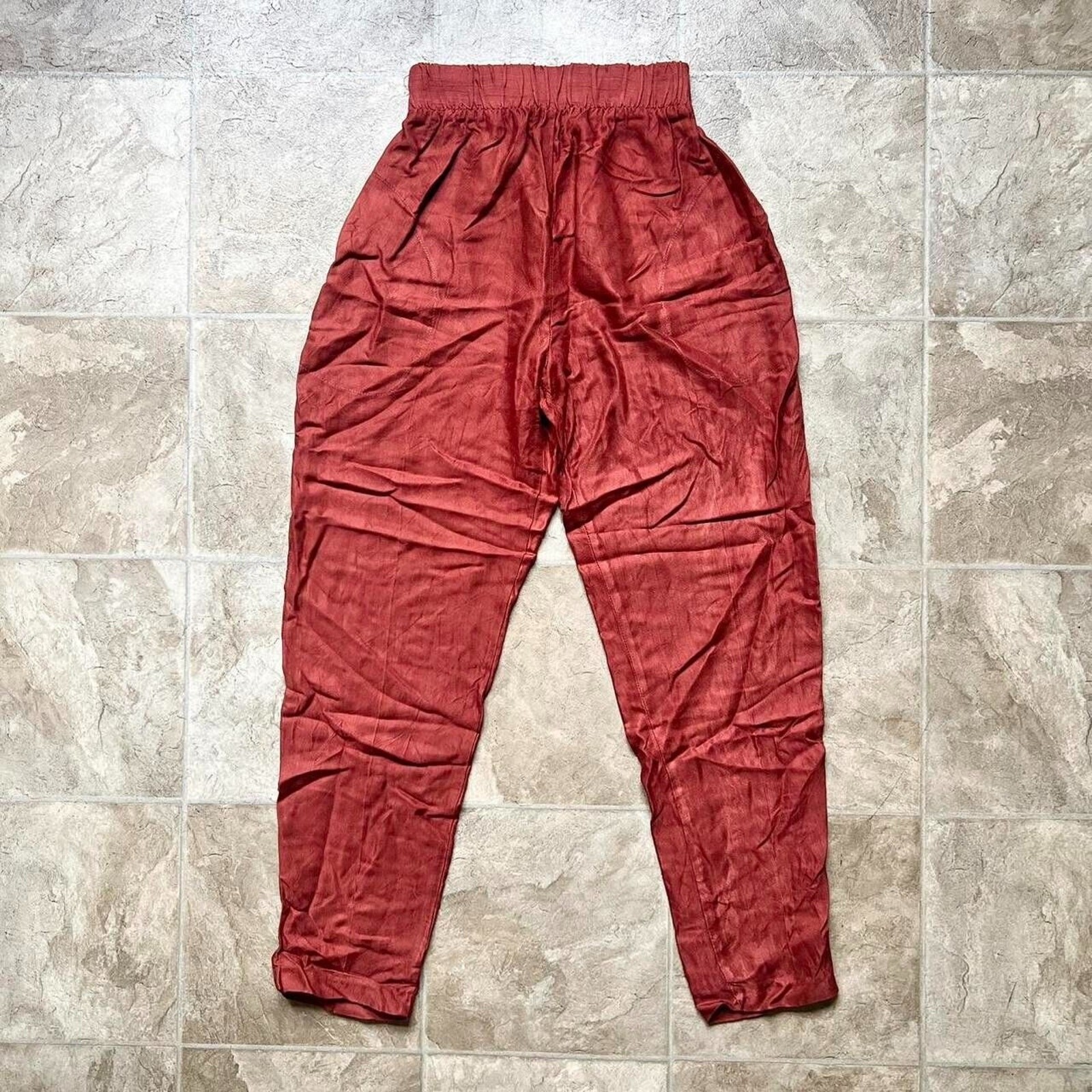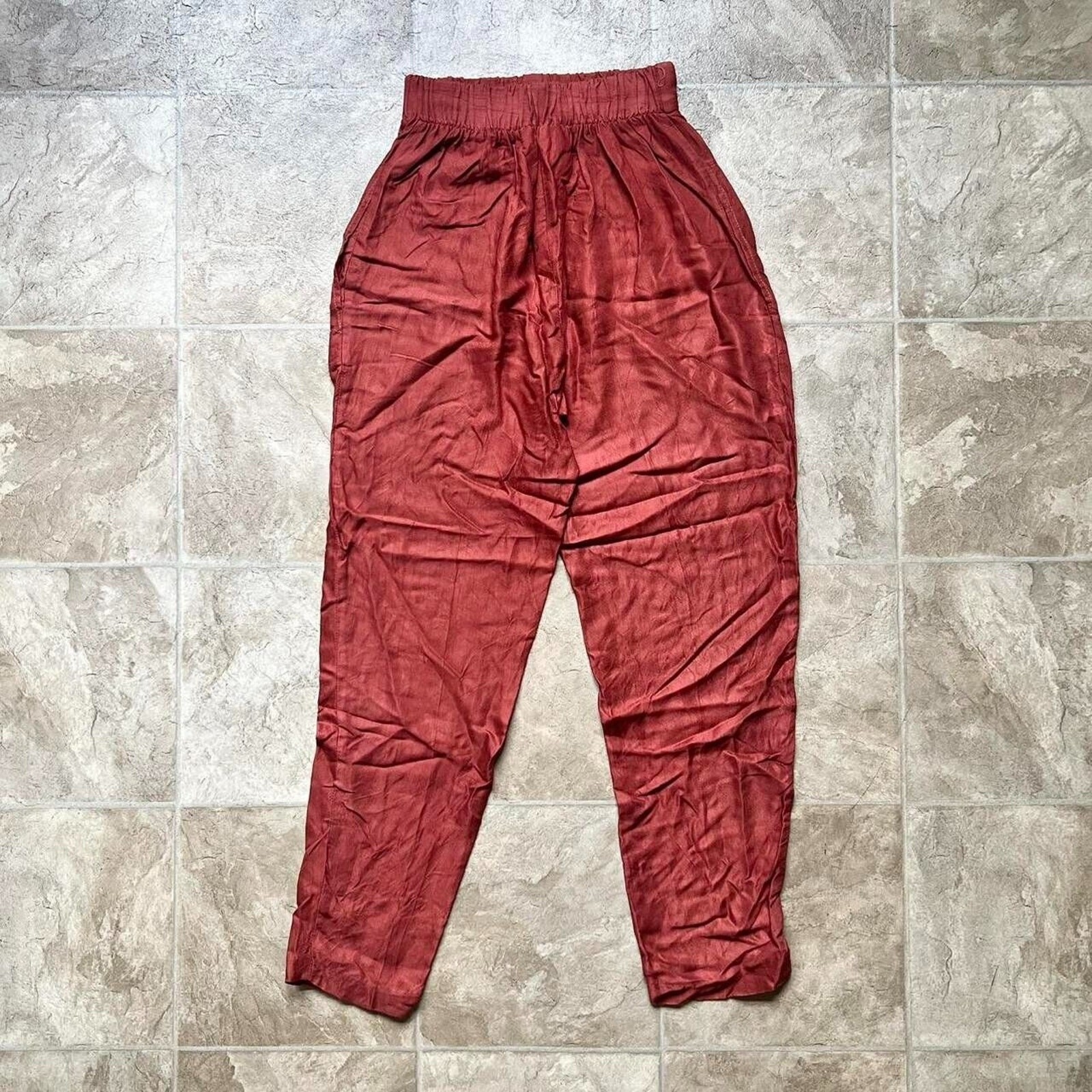 как выглядит Vtg 80s Womens Satin Pants Terracotta High Waisted Tapered Retro Groovy Glam фото