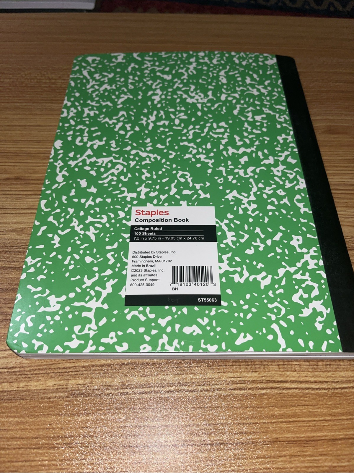 как выглядит STAPLES GREEN WIDE RULED COMPOSITION NOTEBOOK 100 pages BATCH OF 4 for 12 фото