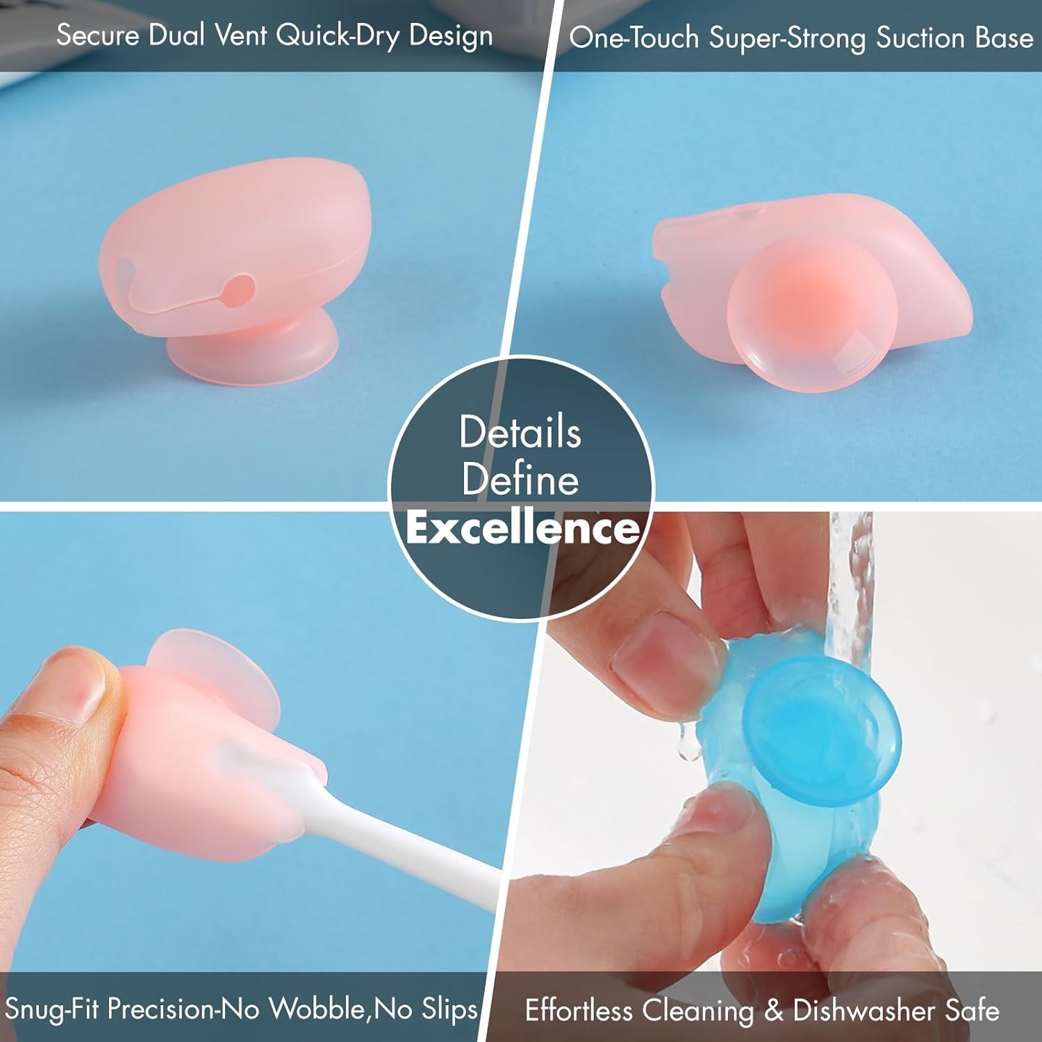 Особенности: Safe & Eco-Conscious Design, Dishwasher-Safe, Built to Last, Secure Suction Base, Breathable Ventilation, Compact Travel Essential, Vibrant Colors, eco-friendly, free from harsh chemicals, perfect for families, durable bathroom essentials, green lifestyle, flexible silicone, easy to clean, withstand daily use, prevent residue buildup, long-lasting solution, strong suction cup, adheres firmly to mirrors, tiles, countertops, ventilation holes, keep brushes dry