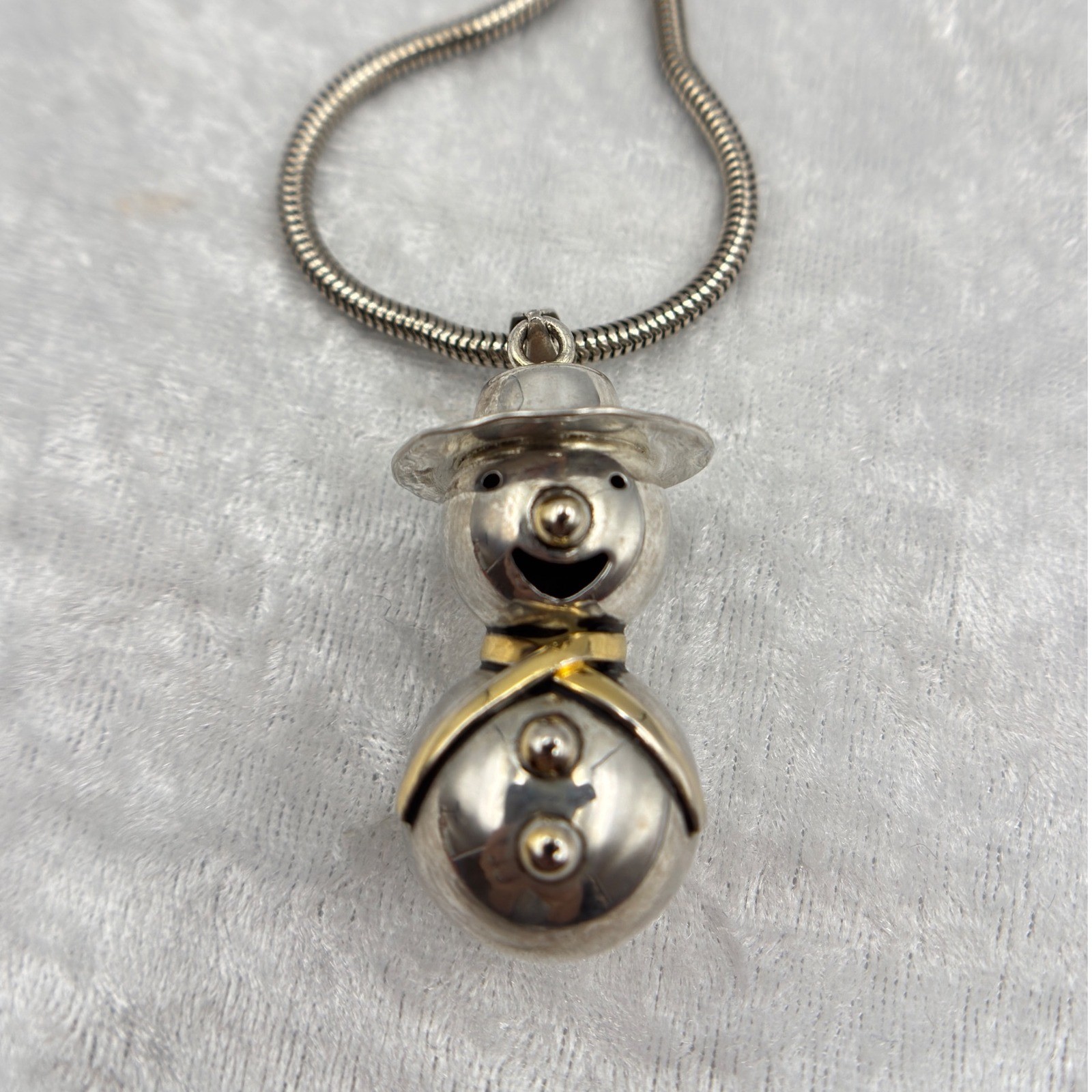 как выглядит Snowman Pendant Necklace Shiny Silver Tone Festive Winter Holiday Jewelry фото