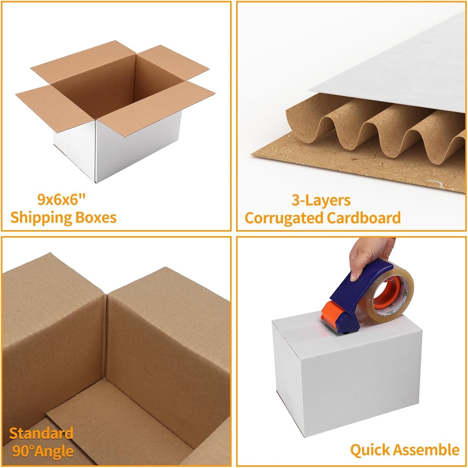 9x6x6 Shipping Boxes Set of 25, White, Cardboard
