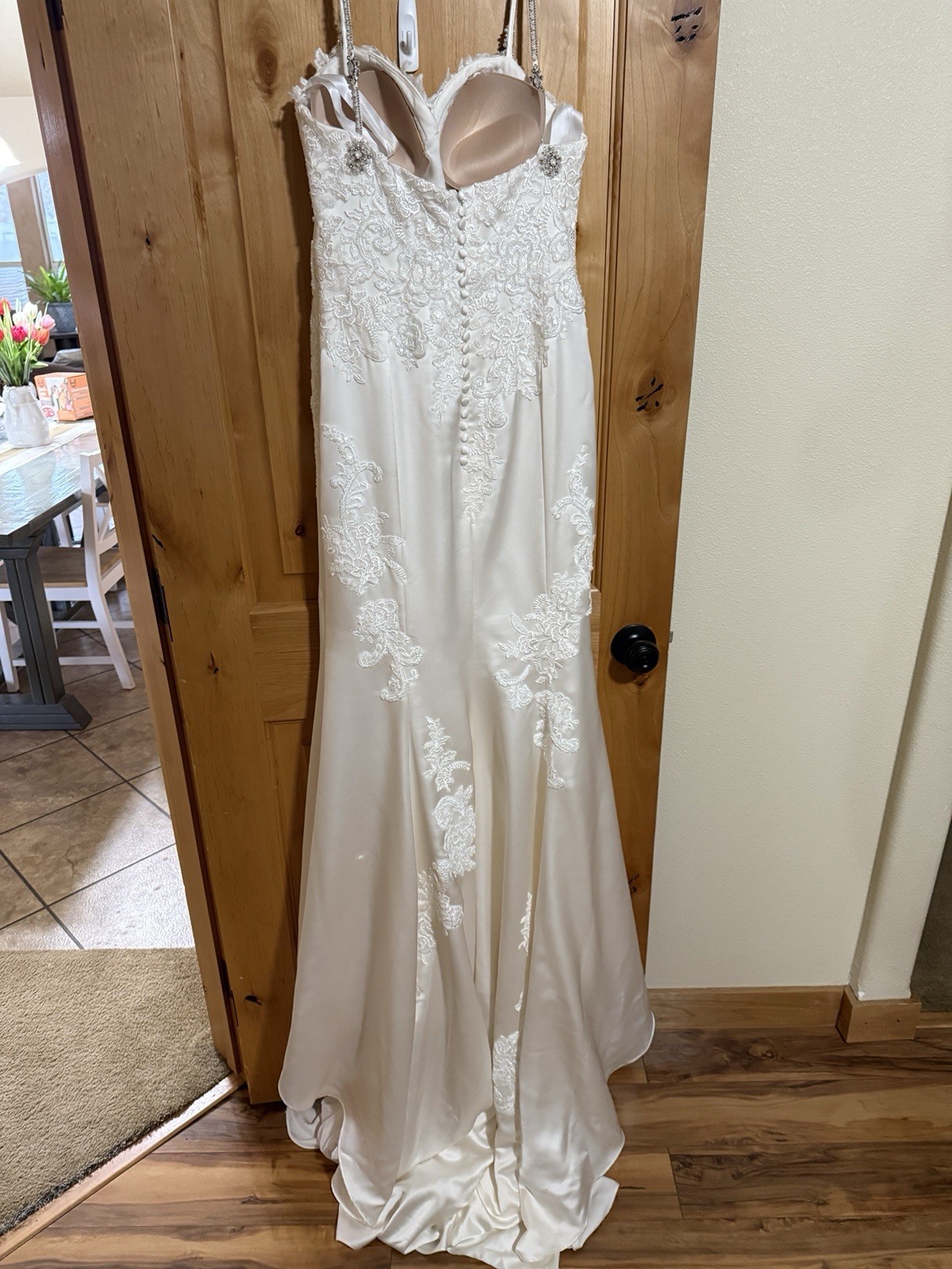 как выглядит Pronovias Barcelona Wedding Dress Lace Mermaid Gown Size 12/44 w/ Train Bag фото