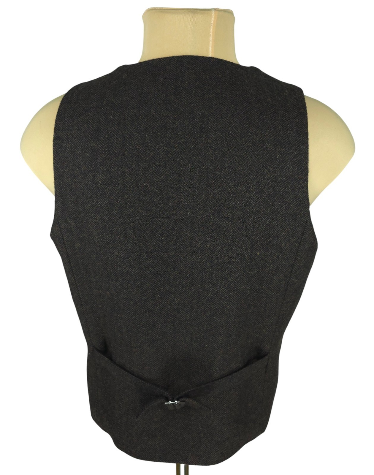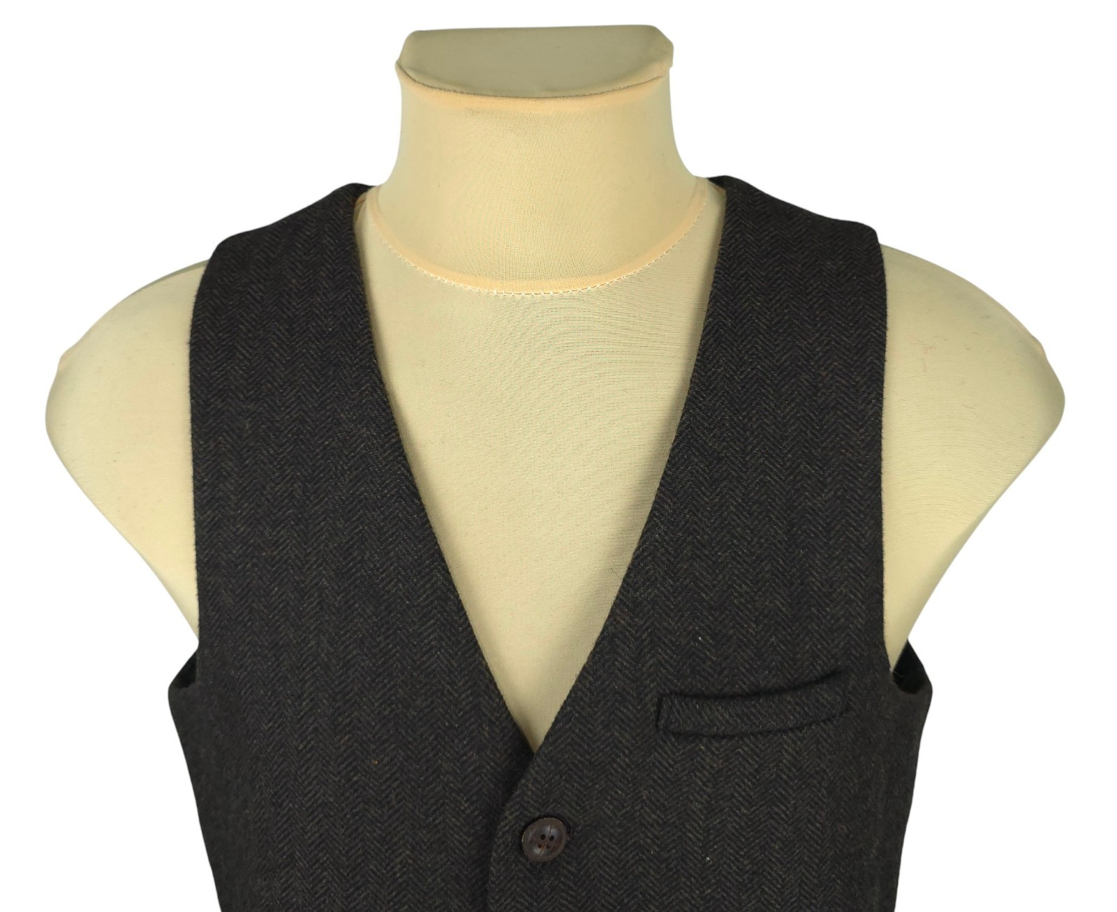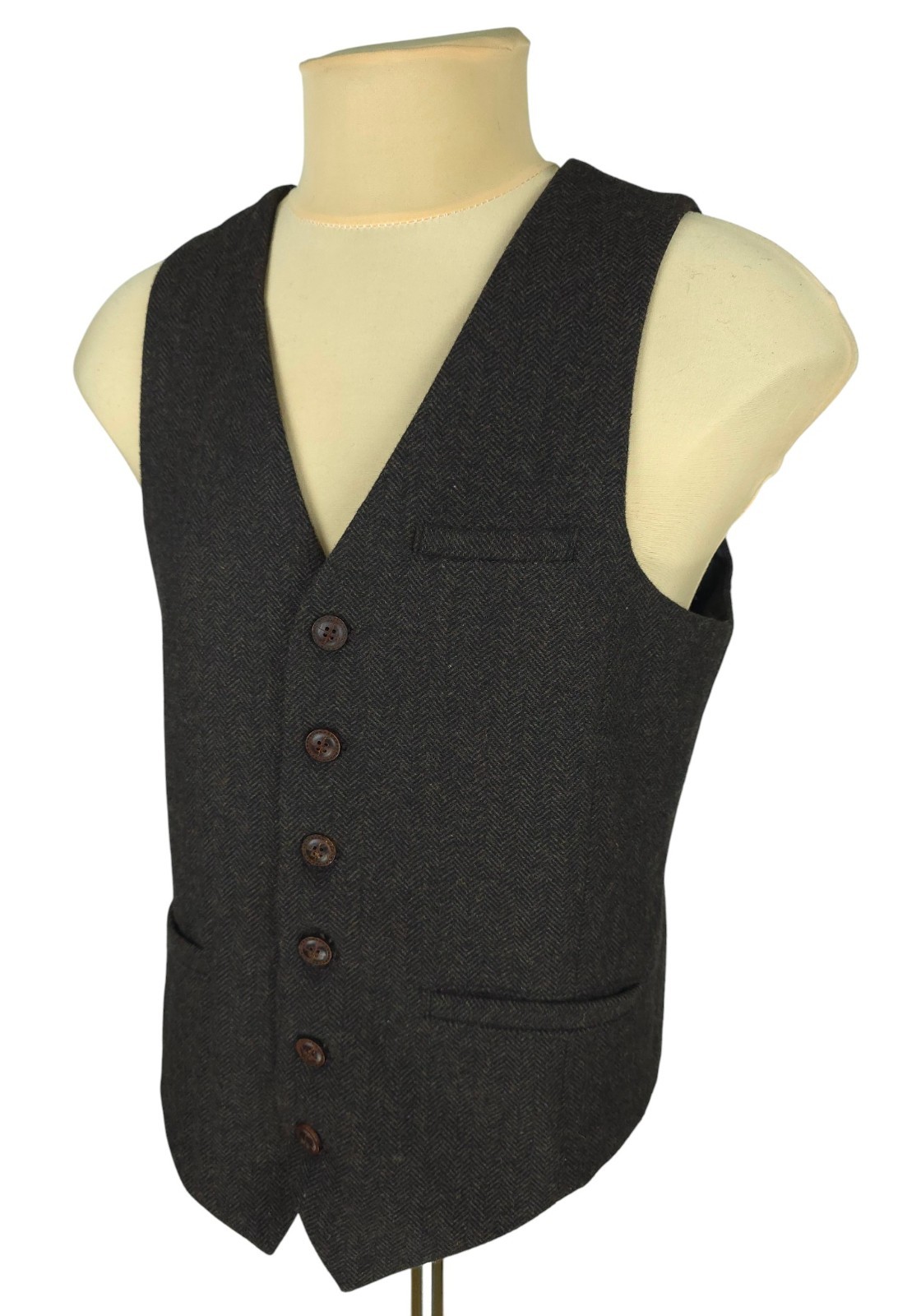 Voboom Mens Brown Wool Blend Herringbone Waistcoat Tweed Vest Size S