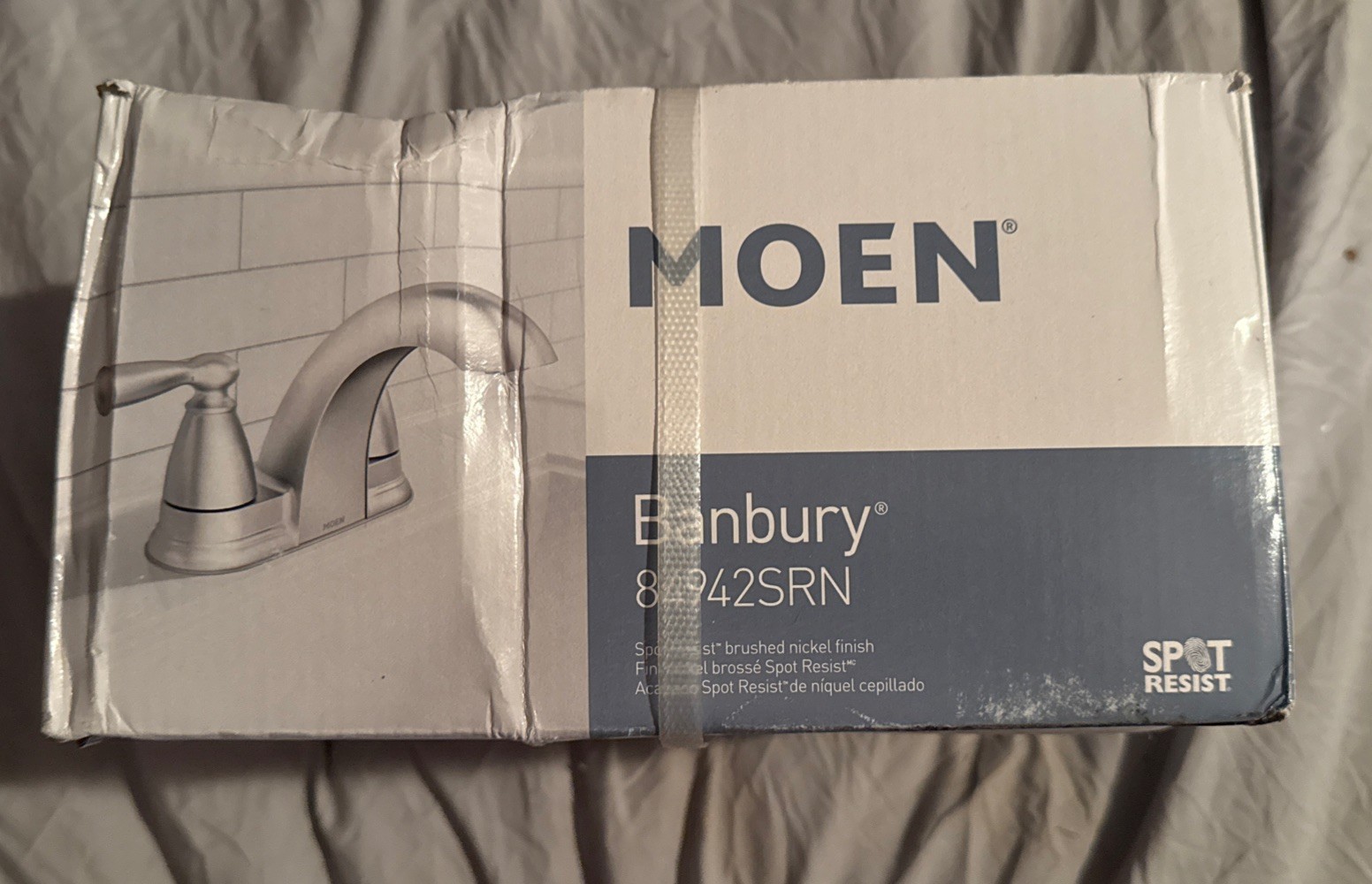 как выглядит MOEN Banbury 4 in Centerset Double Handle Low-Arc Bathroom Faucet Brushed Nickel фото