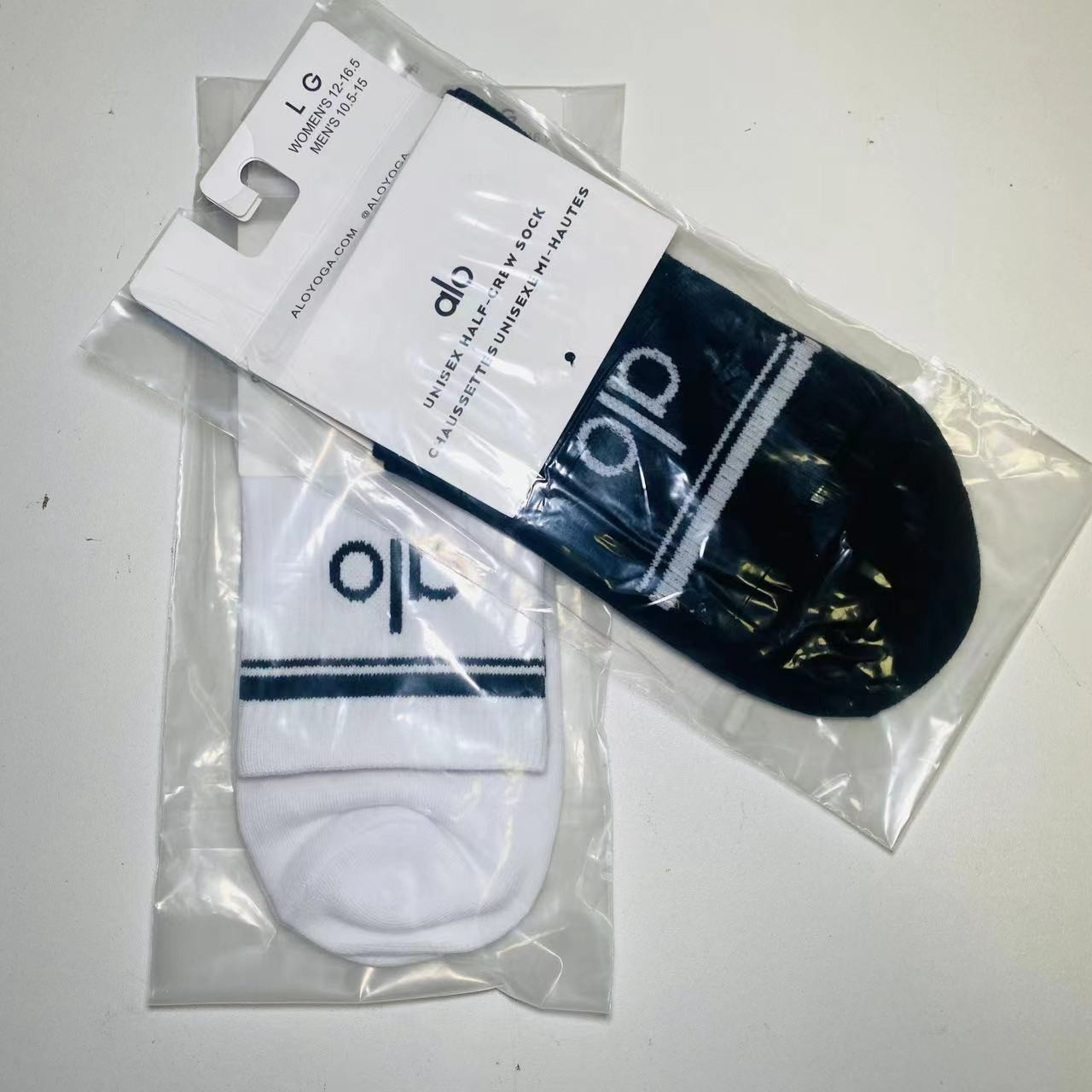 Alo Yoga Unisex Crew Socks Combo 2 Pairs, White and Black - Size S