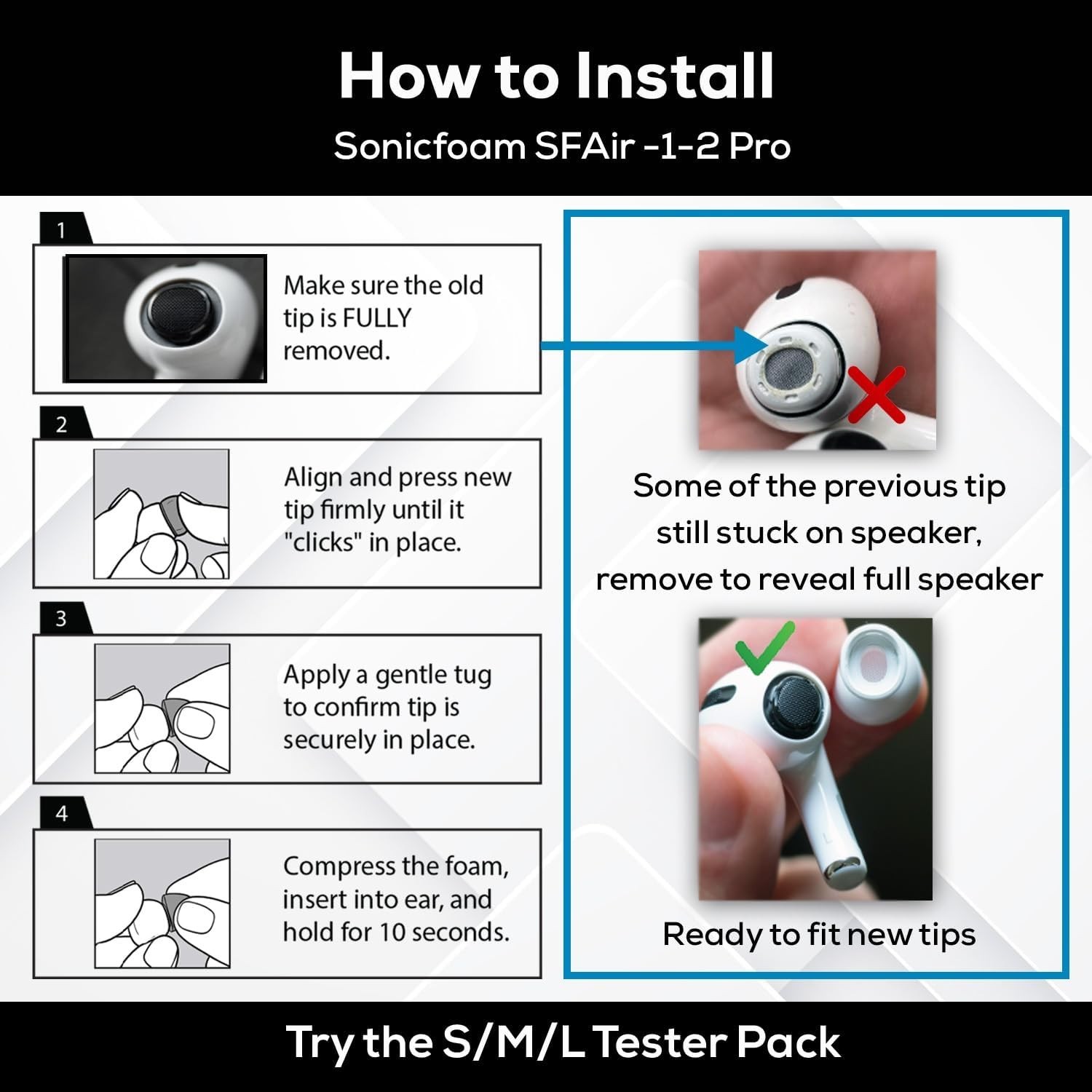 6-Pack Black Memory Foam Earbud Tips for AirPods Pro - Ultimate Sound Experience