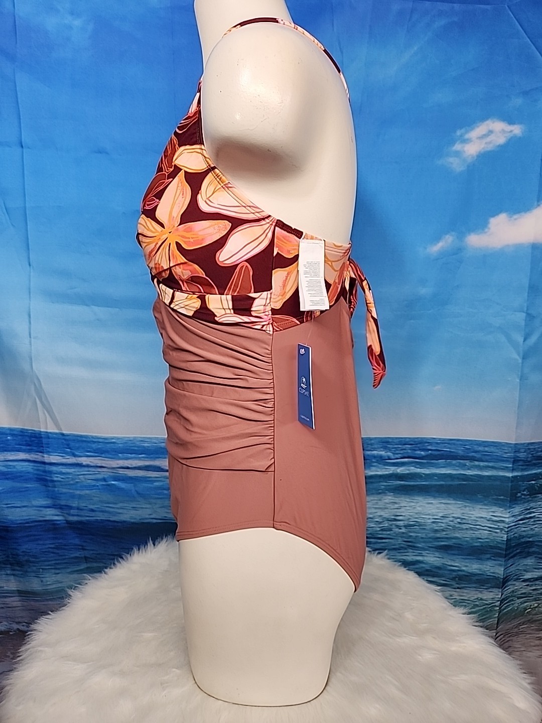 NWT Cupshe Womens One Piece Swimsuit Size Extra Large Dusty Rose W/ Floral Top