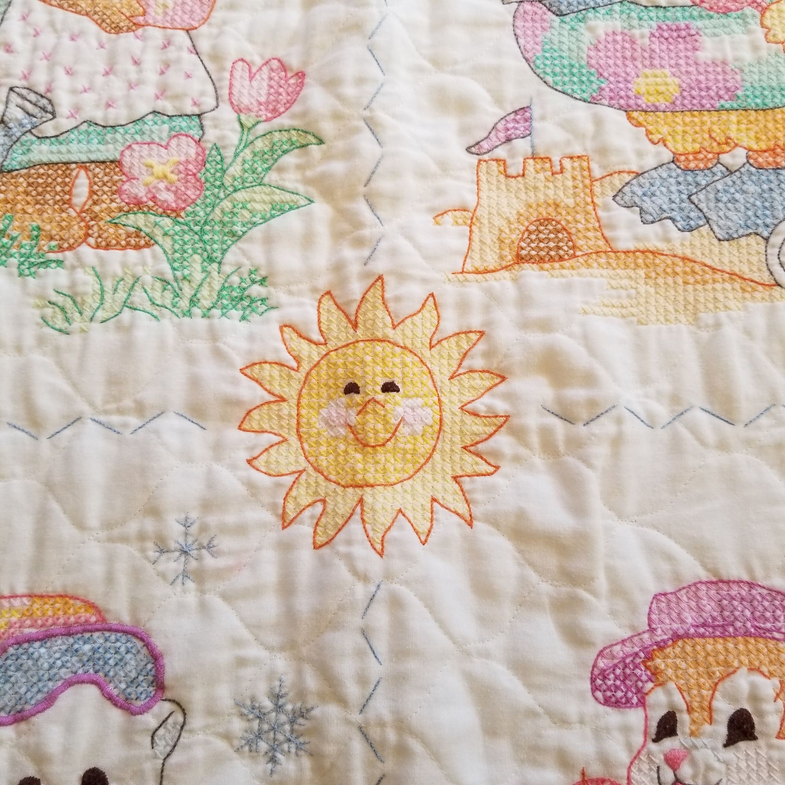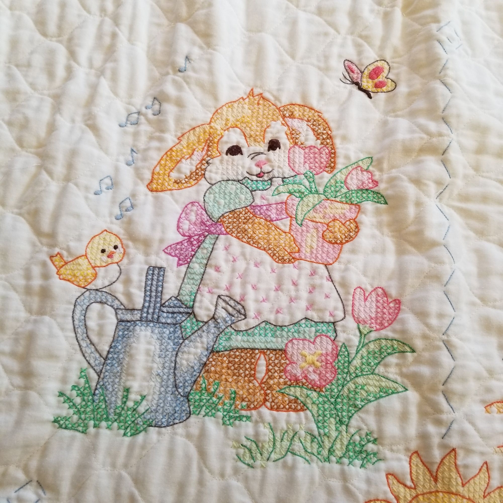 Cross Stitch Quilt Baby Blanket Comforter Crib Toddler Bed Gift Nursery Decor