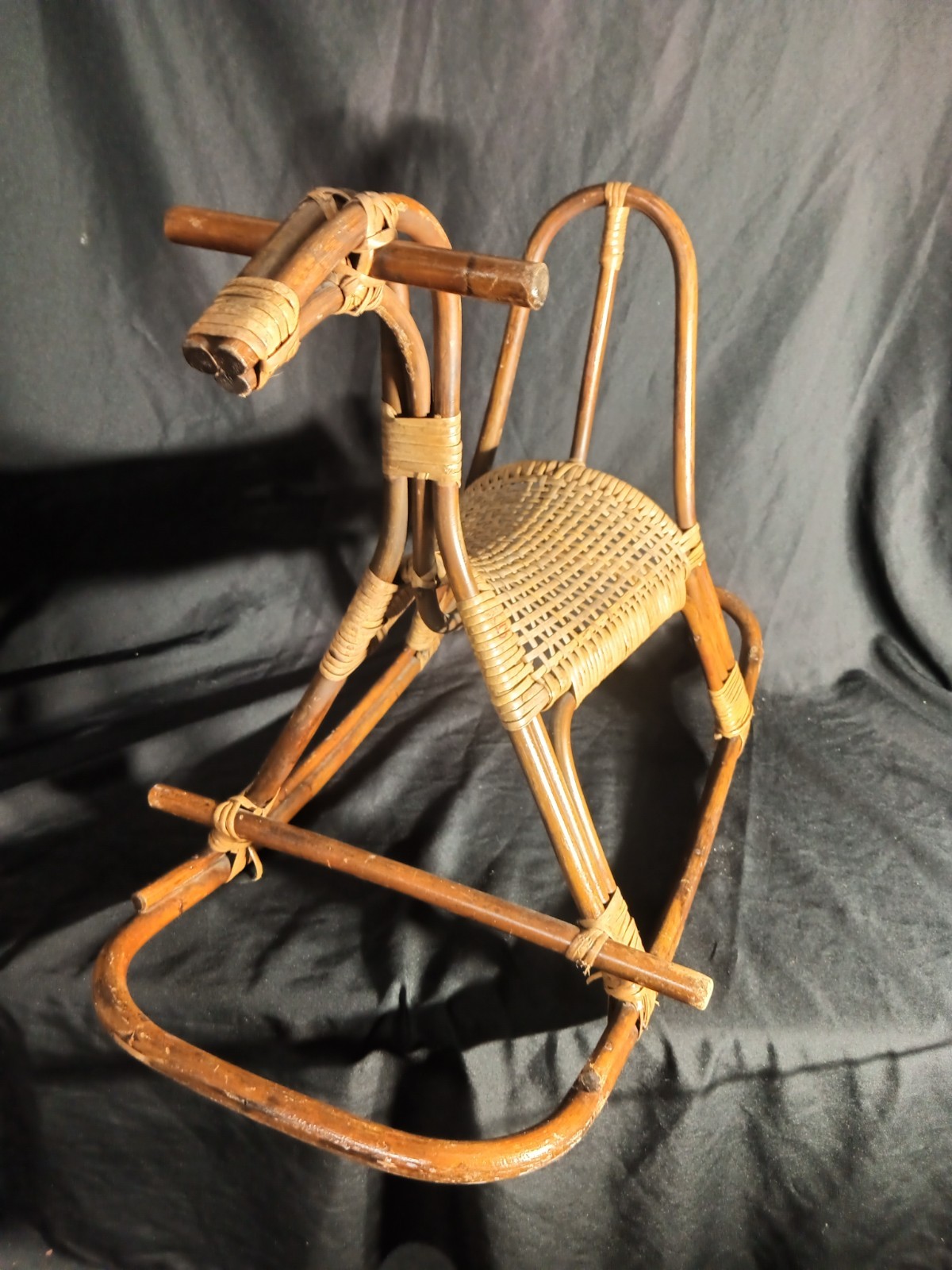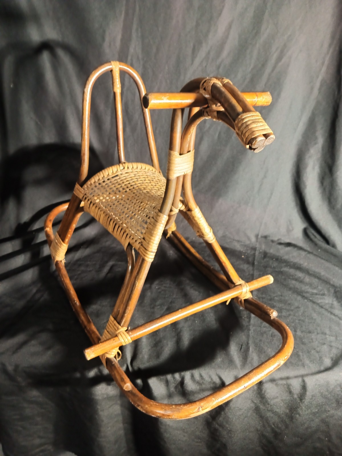 как выглядит Vintage Franco Albini Wicker Bamboo Rattan Rocking Horse 1960s фото