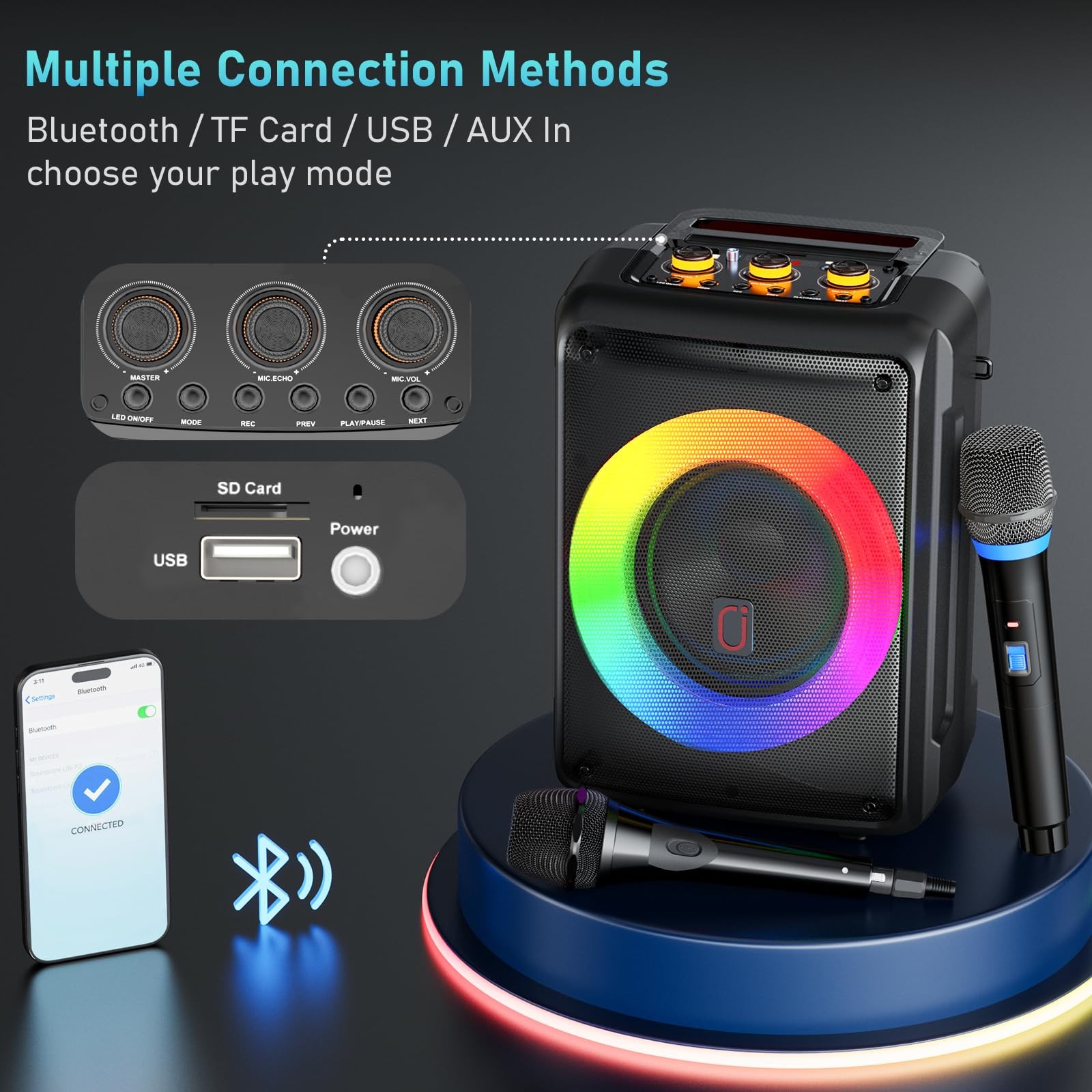 Karaoke Machine with 2 Microphones, Portable Bluetooth Karaoke Speaker for Ad...