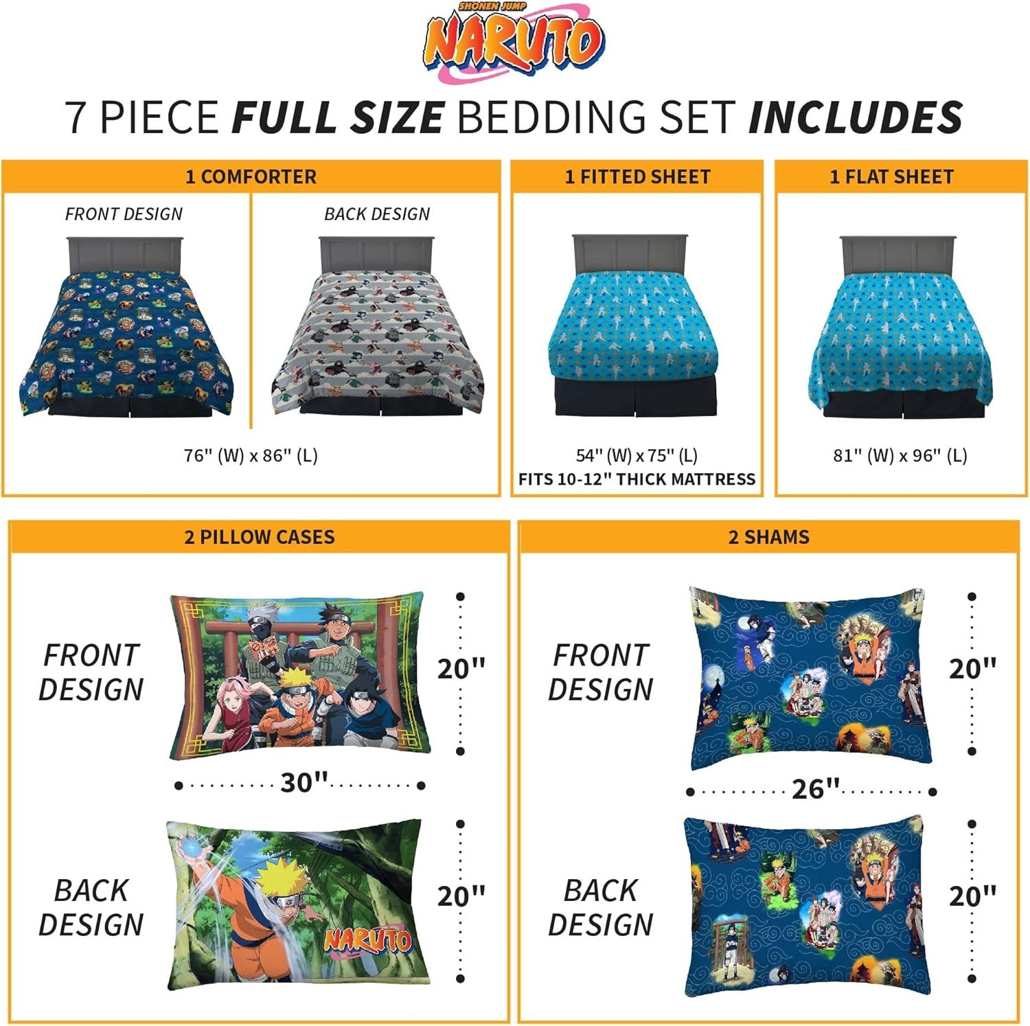 Cozy 7-Piece Naruto Bedding Set - Reversible Comforter Complete Sheet Set