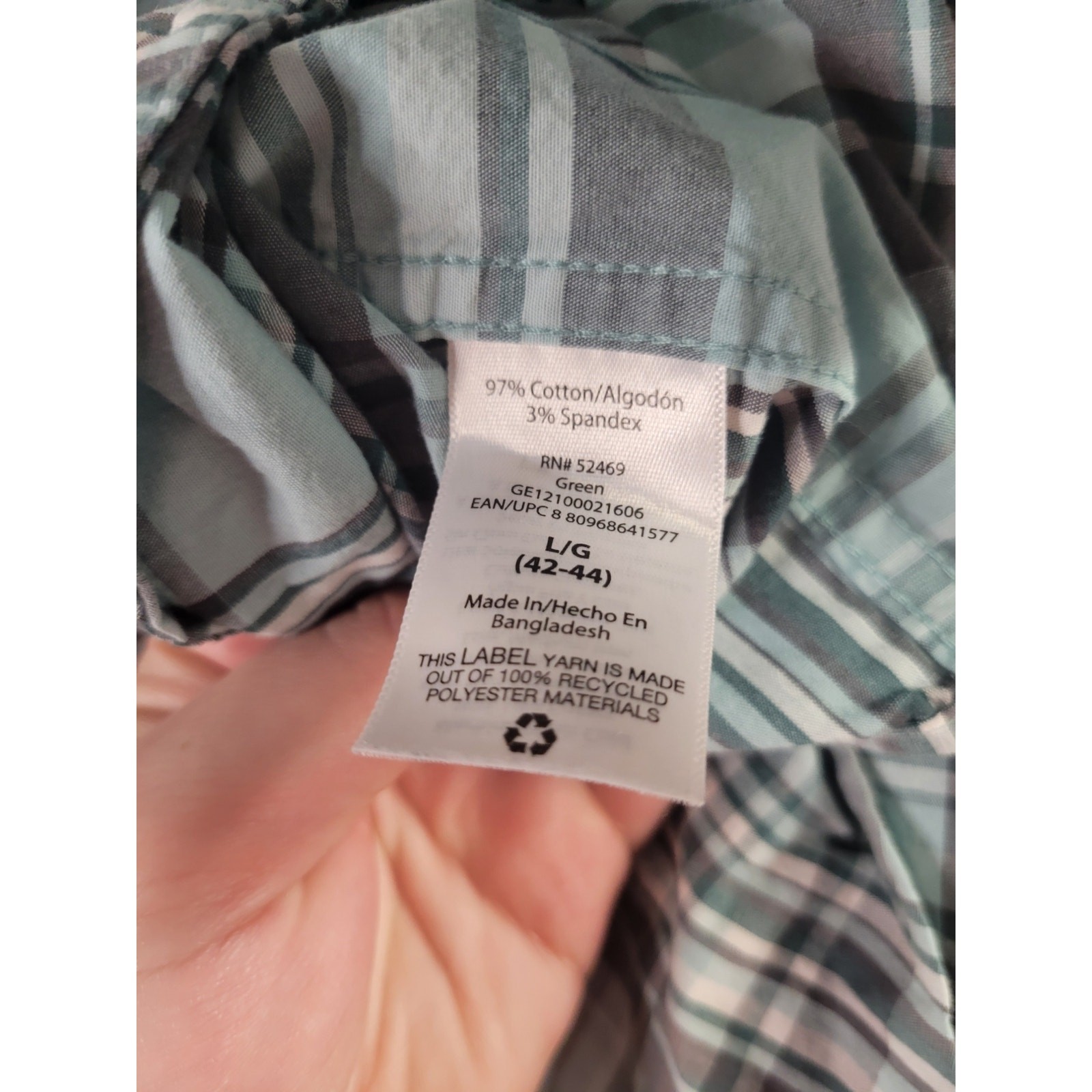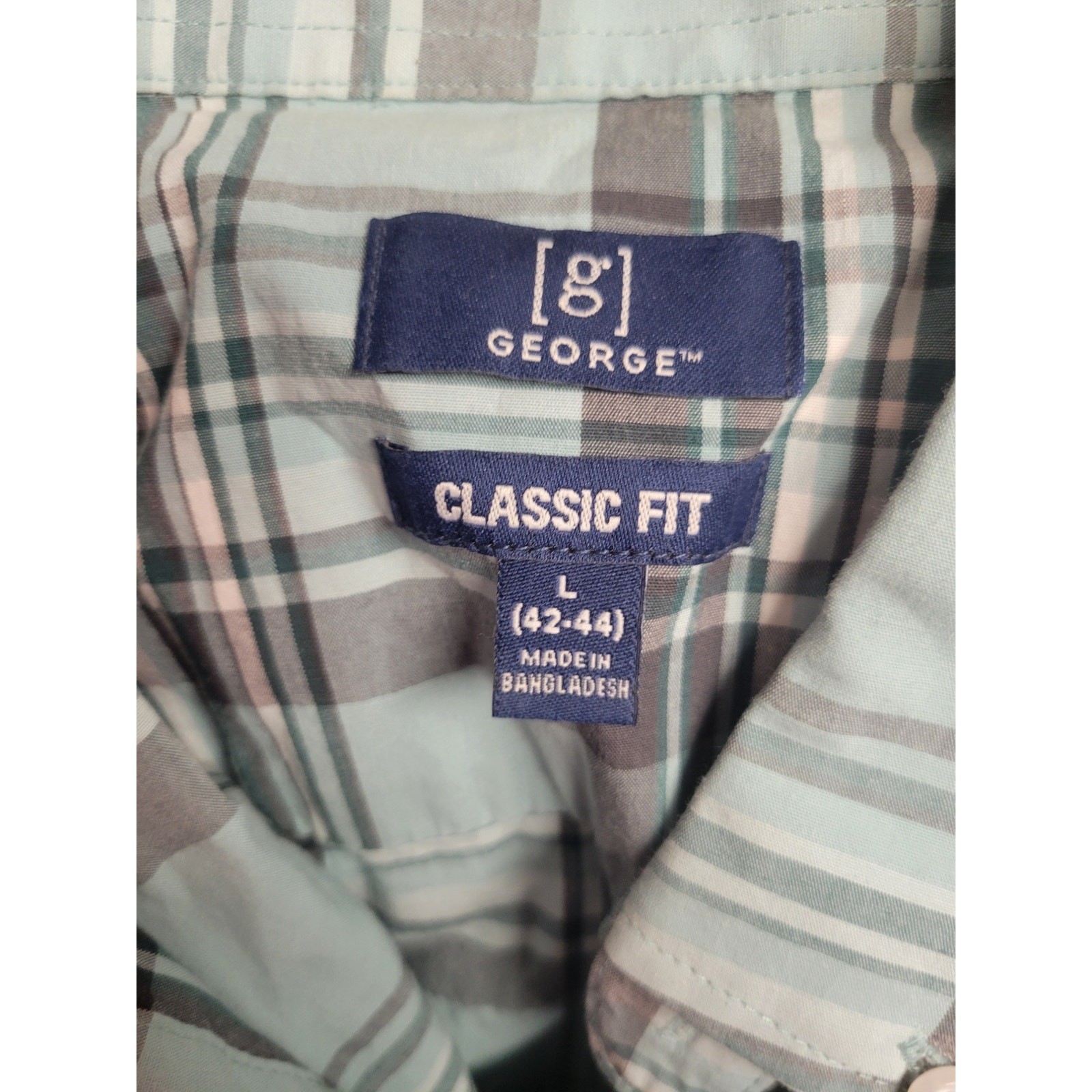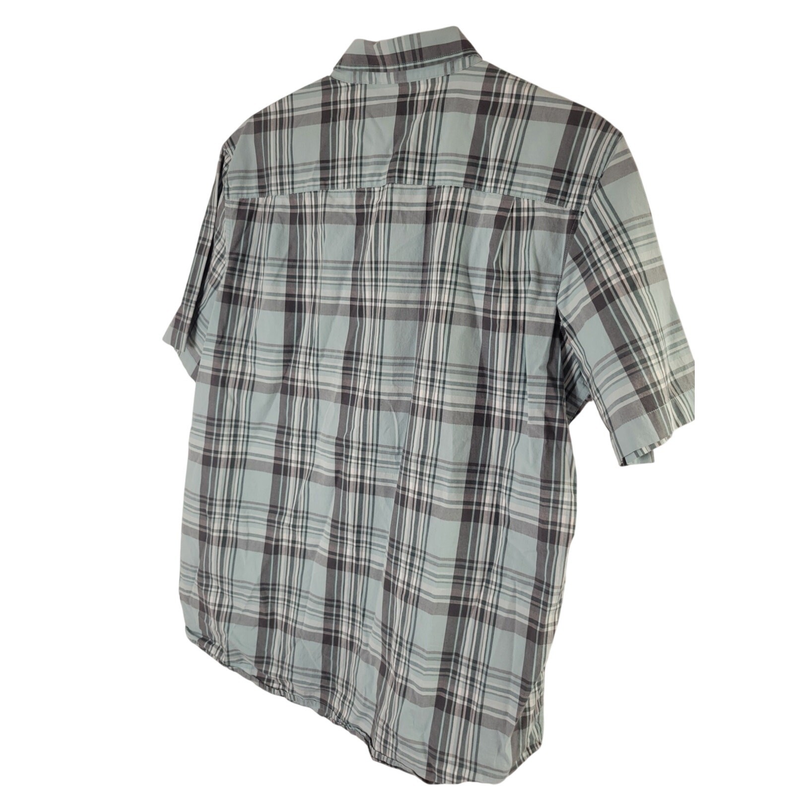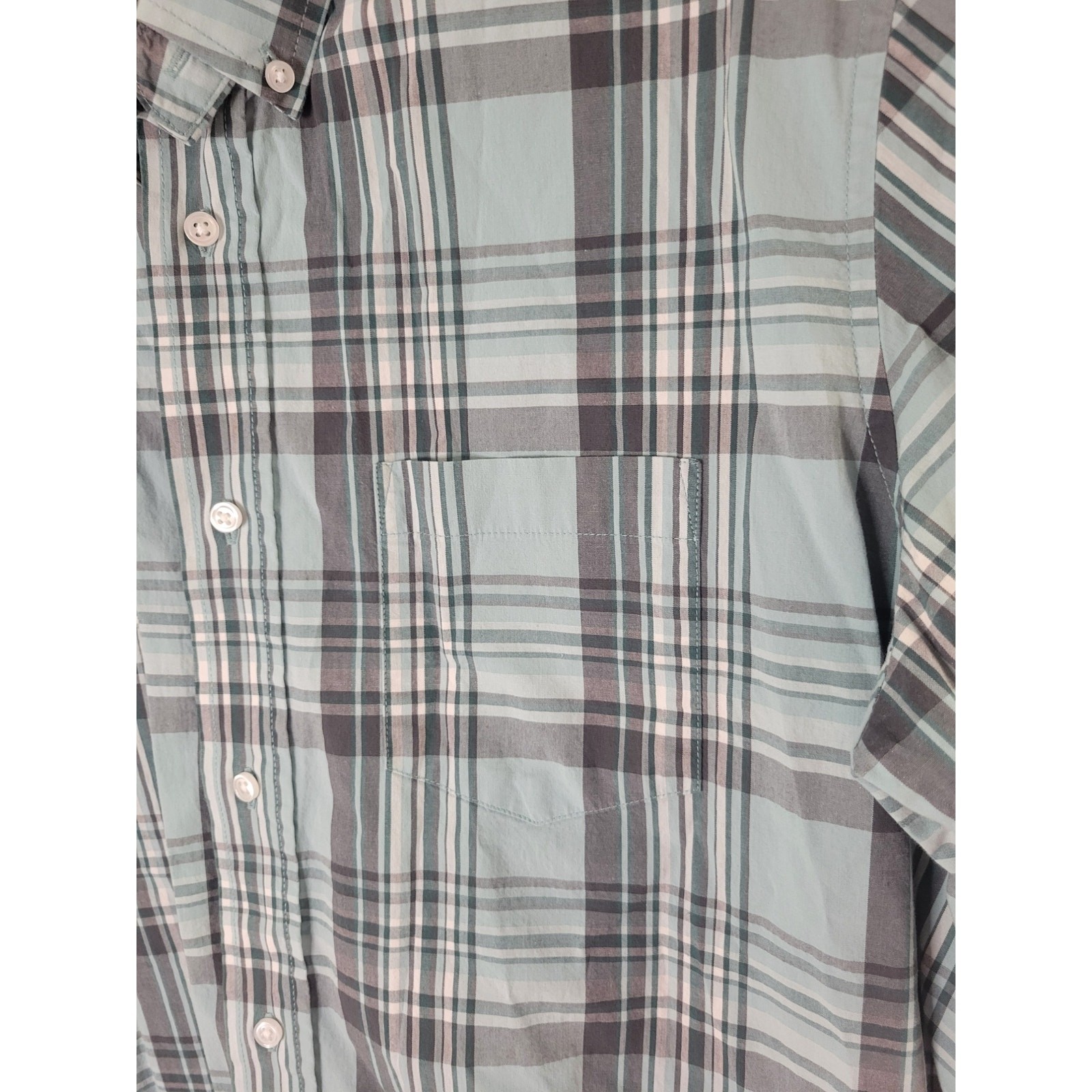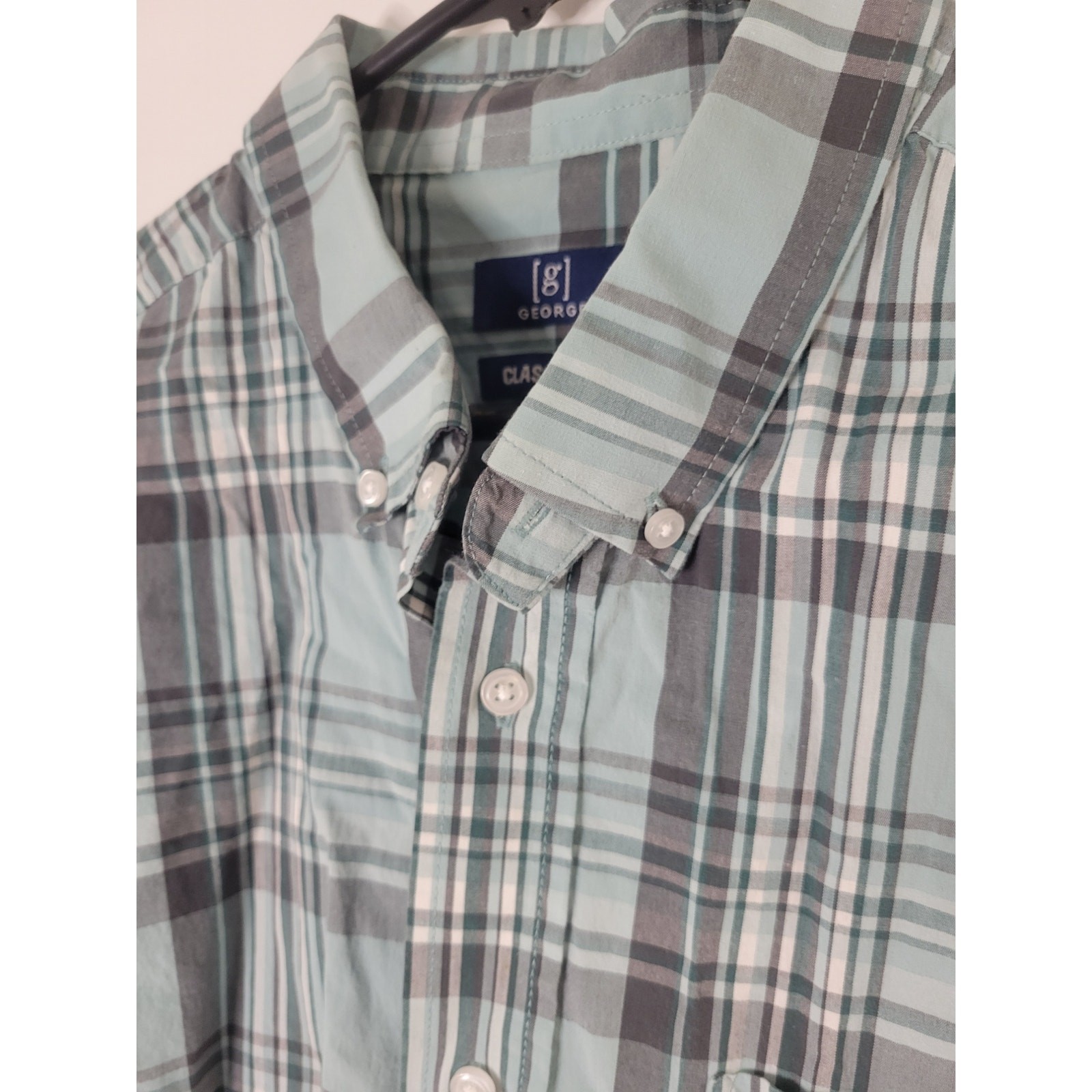 как выглядит George Mens Classic Fit Short Sleeve Poplin Shirt Green/Gray Plaid Button Front фото