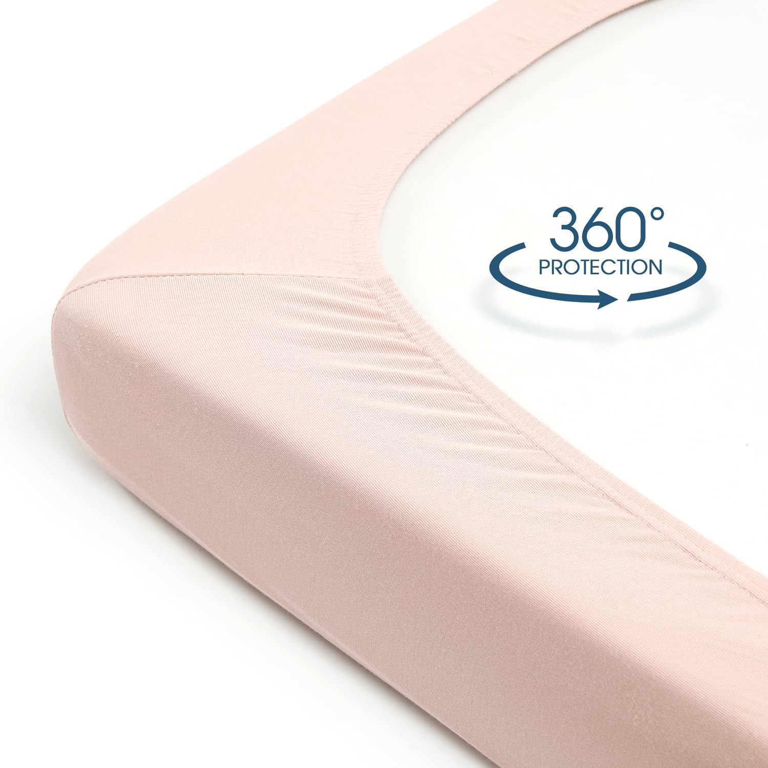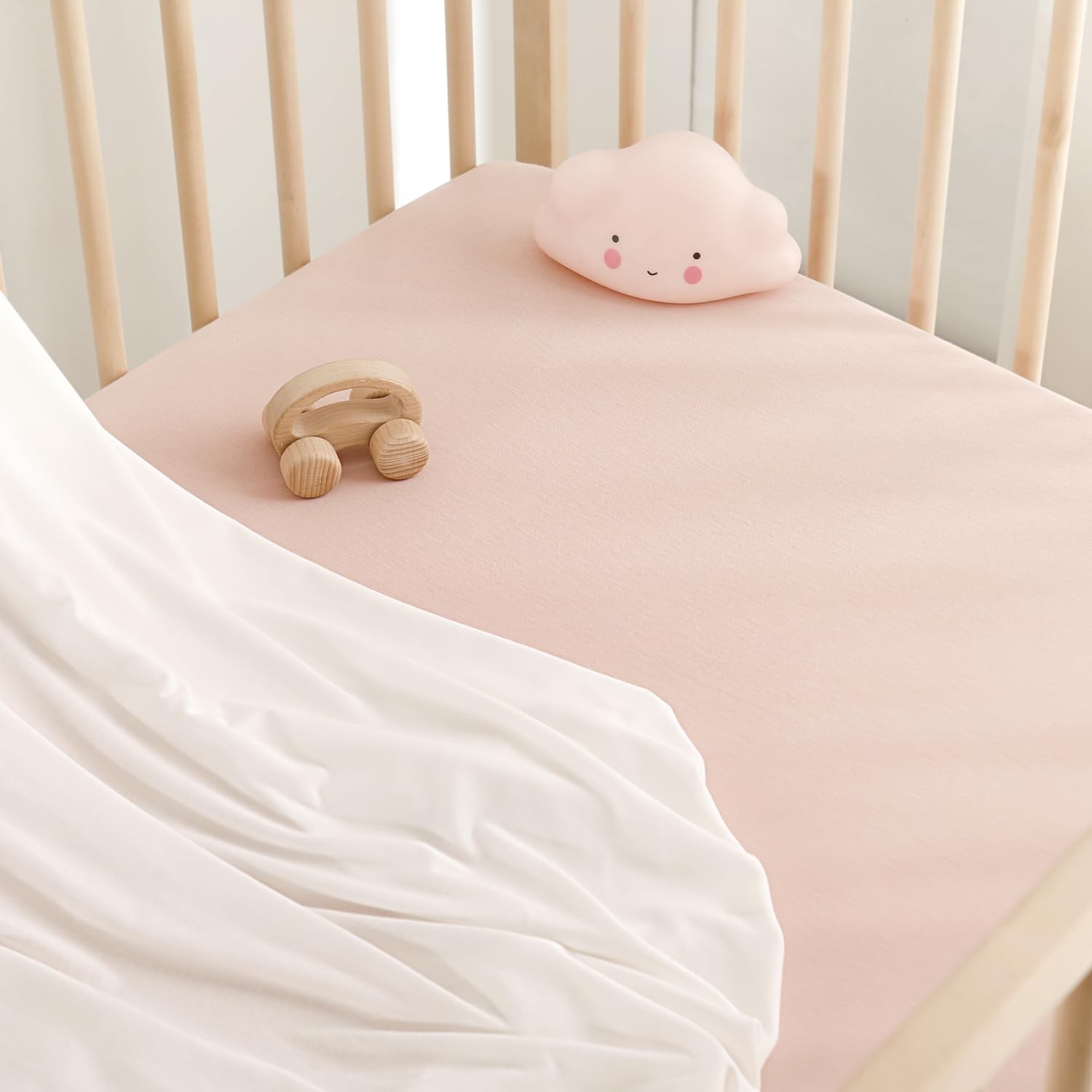 Soft Crib Sheets Set for Girls, 2 Pack Stretchy Fitted Mattress Pads, White/Pink