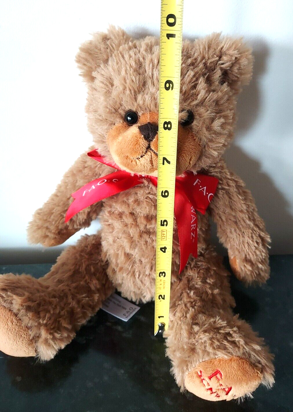 как выглядит FAO SCHWARZ Stuffed Animal Beige Tan Brown Teddy Bear 10" Red Bow Plush Toy фото