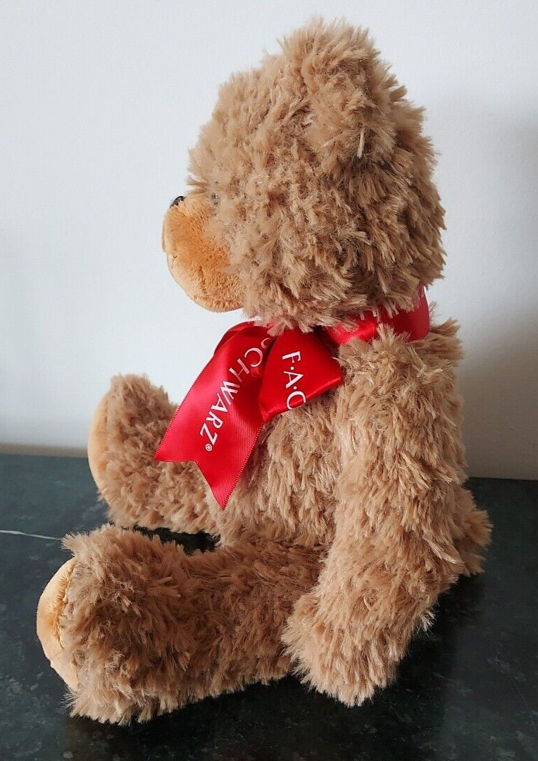 FAO SCHWARZ Stuffed Animal Beige Tan Brown Teddy Bear 10 Red Bow Plush Toy