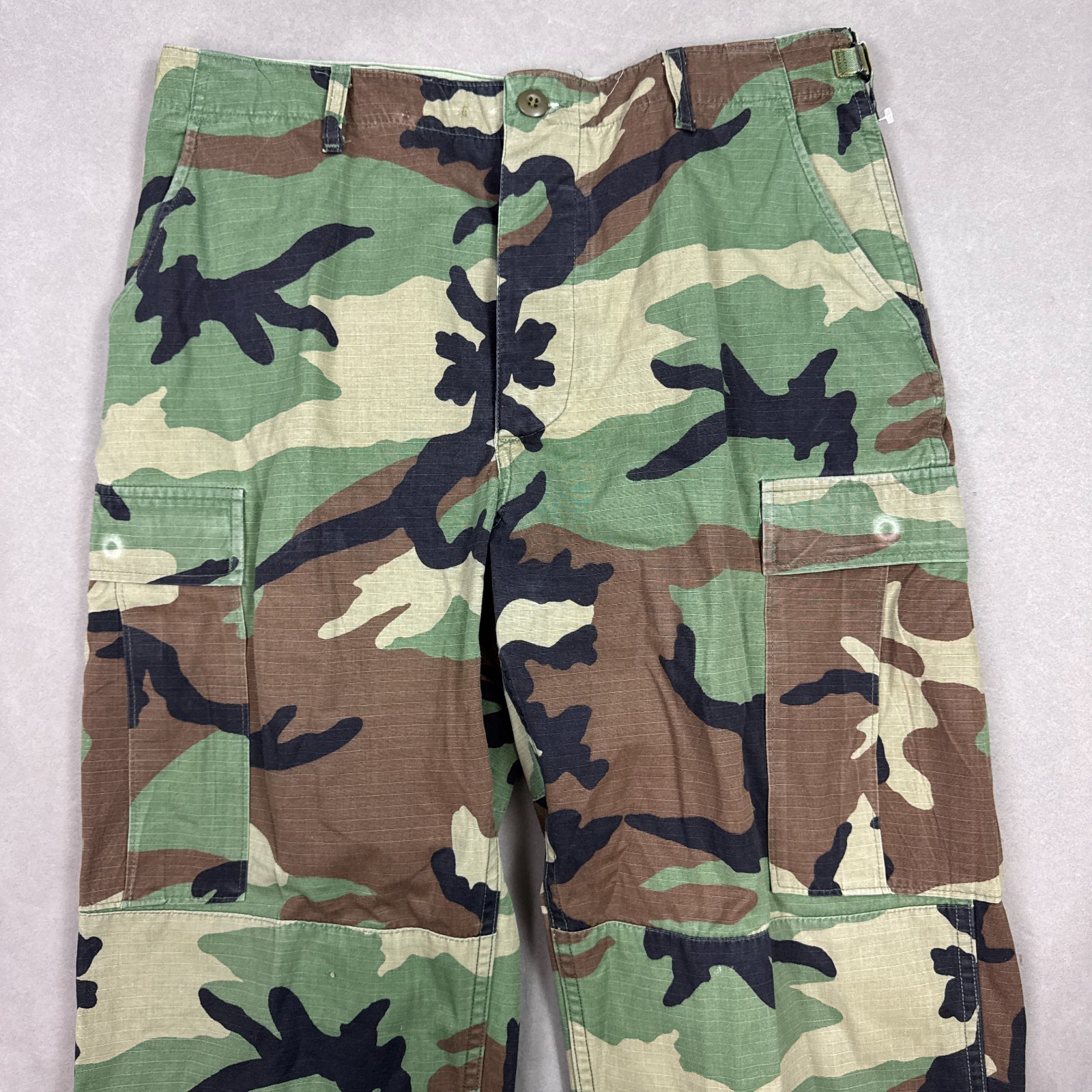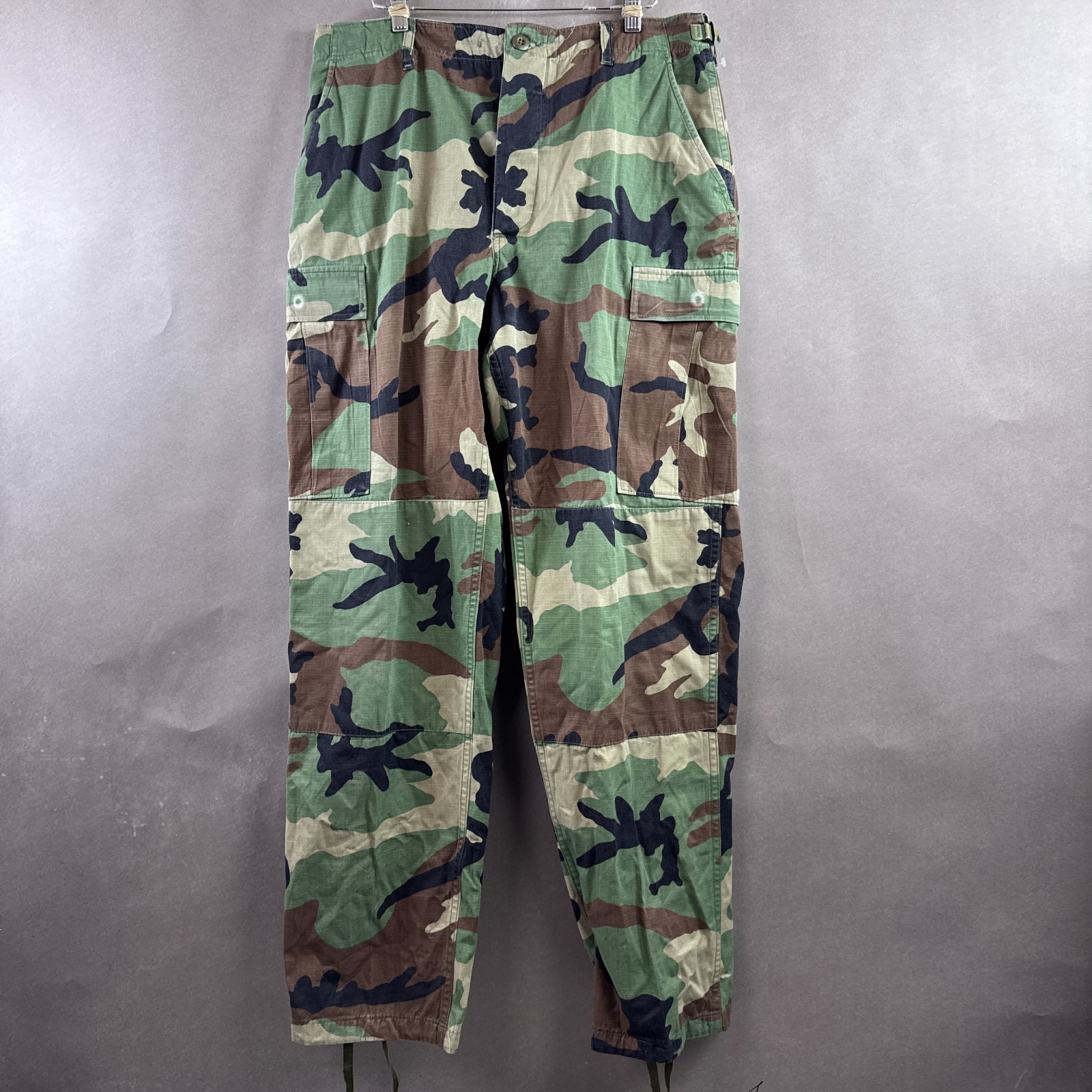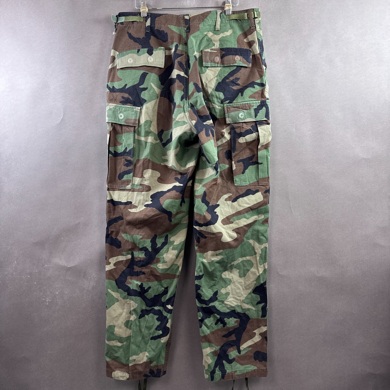 • Vintage US Military Pants Mens Medium Long Camo Woodland Cargo Trouser 34x34