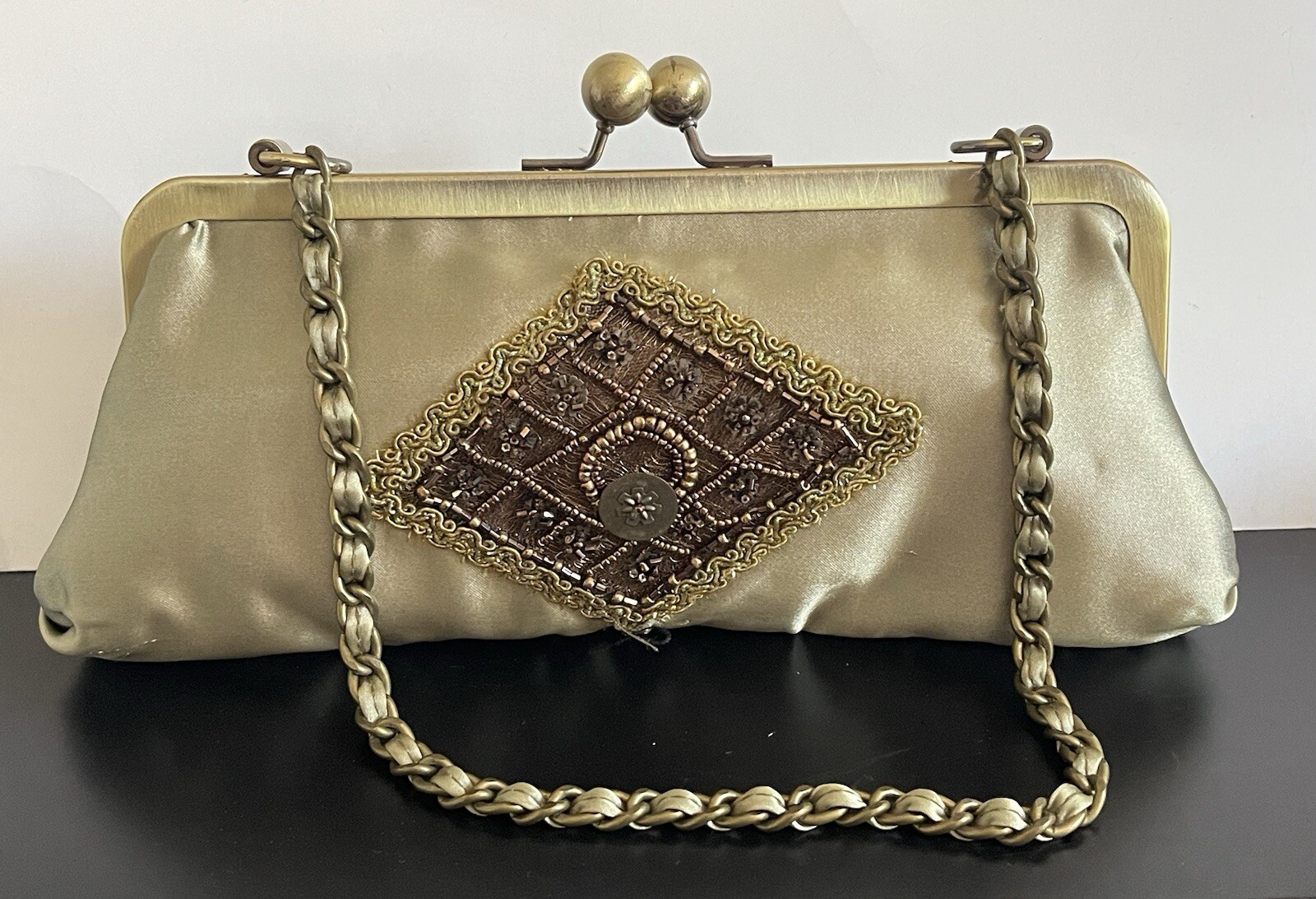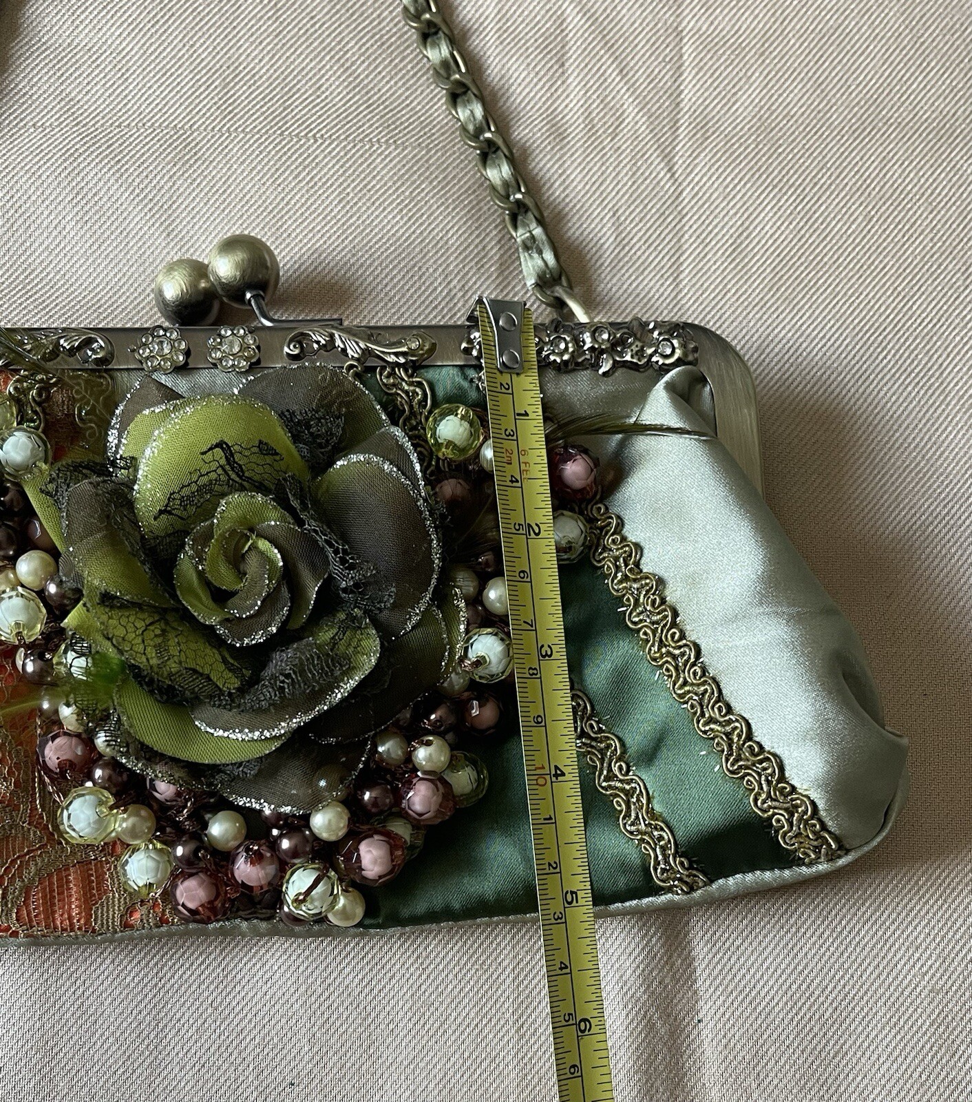 как выглядит VTG Victorian Style Lace Shoulder Decorated Ruffled Flower Chain Strap Handbag фото