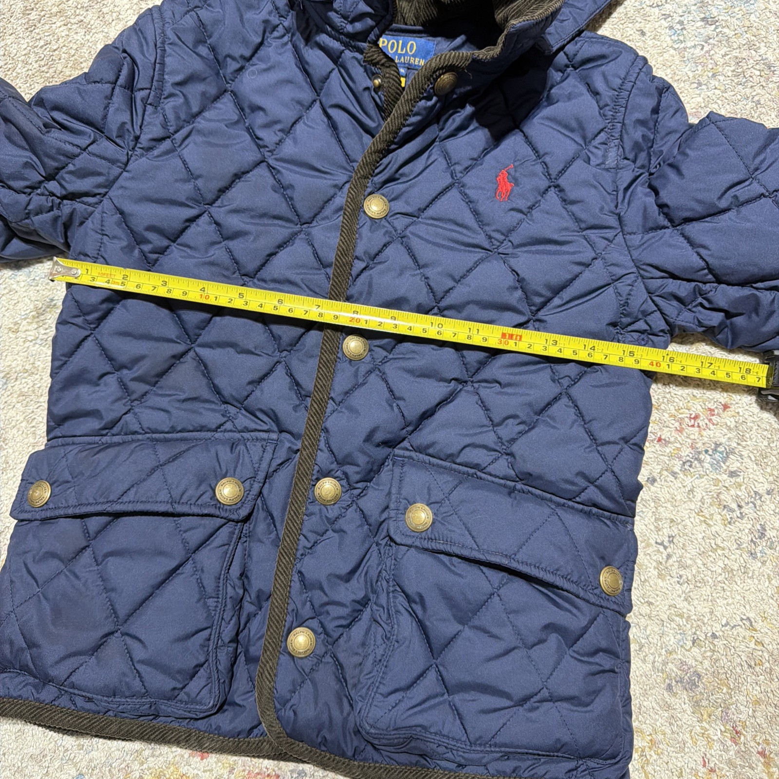 как выглядит Polo Ralph Lauren Quilted Jacket Pockets Curduroy Collar w Hood Youth M 10/12 фото