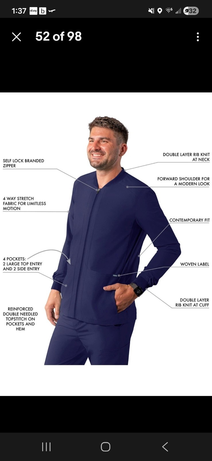 как выглядит Adar Addition Scrubs For Men - Zippered Bomber Scrub Jacket medium фото