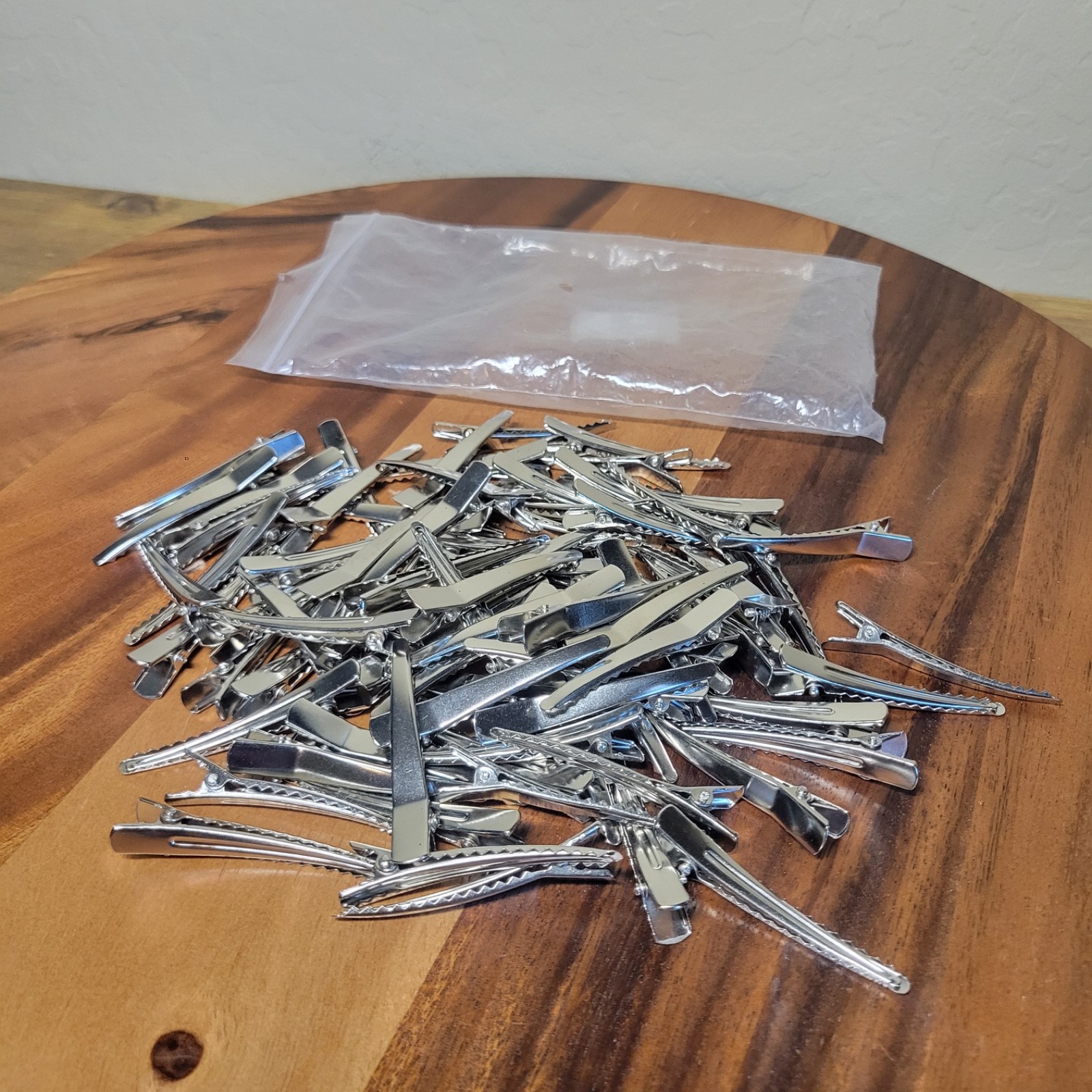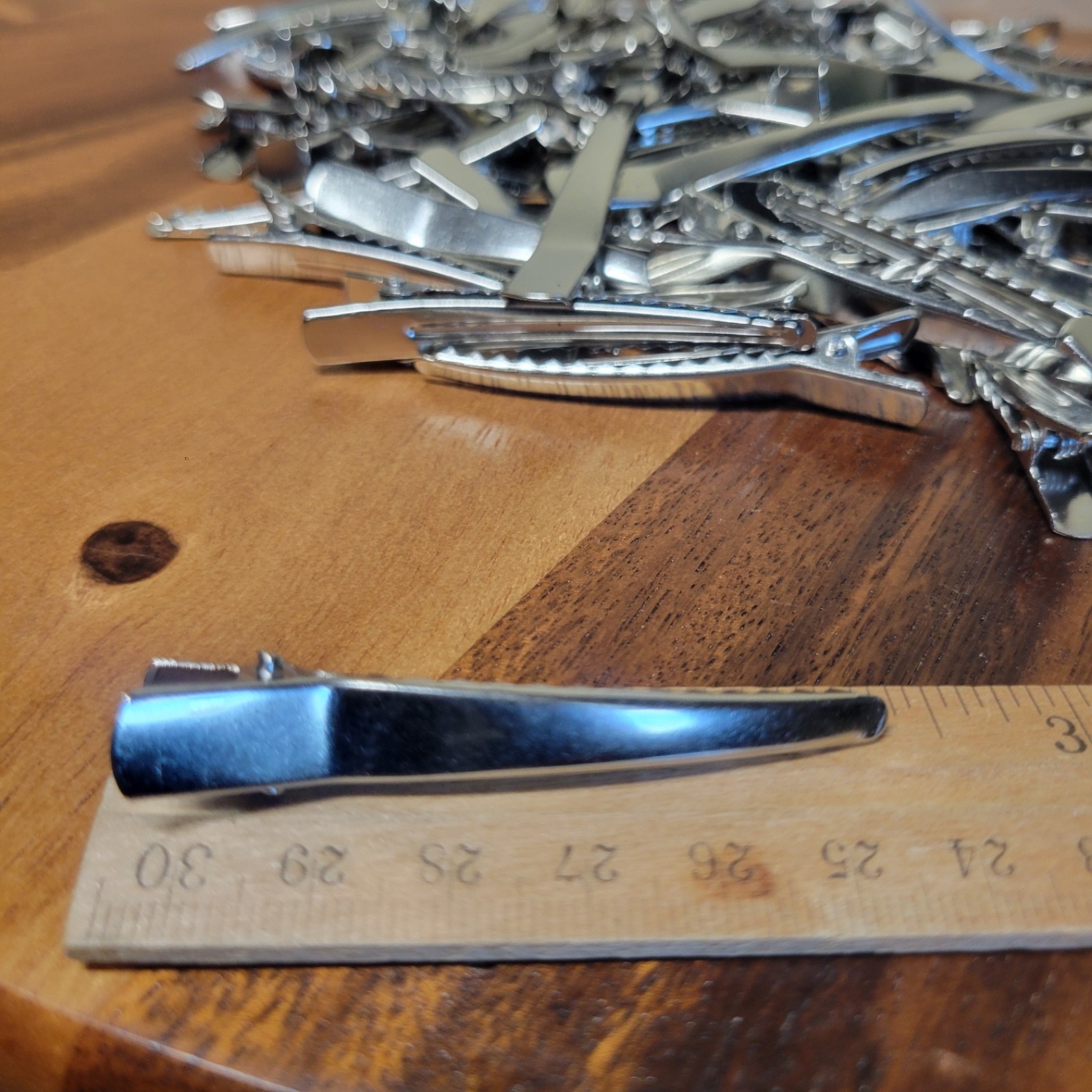 80 Pcs Duckbill Hair or Crafts Accessories Large Flat Billed Clips Silver