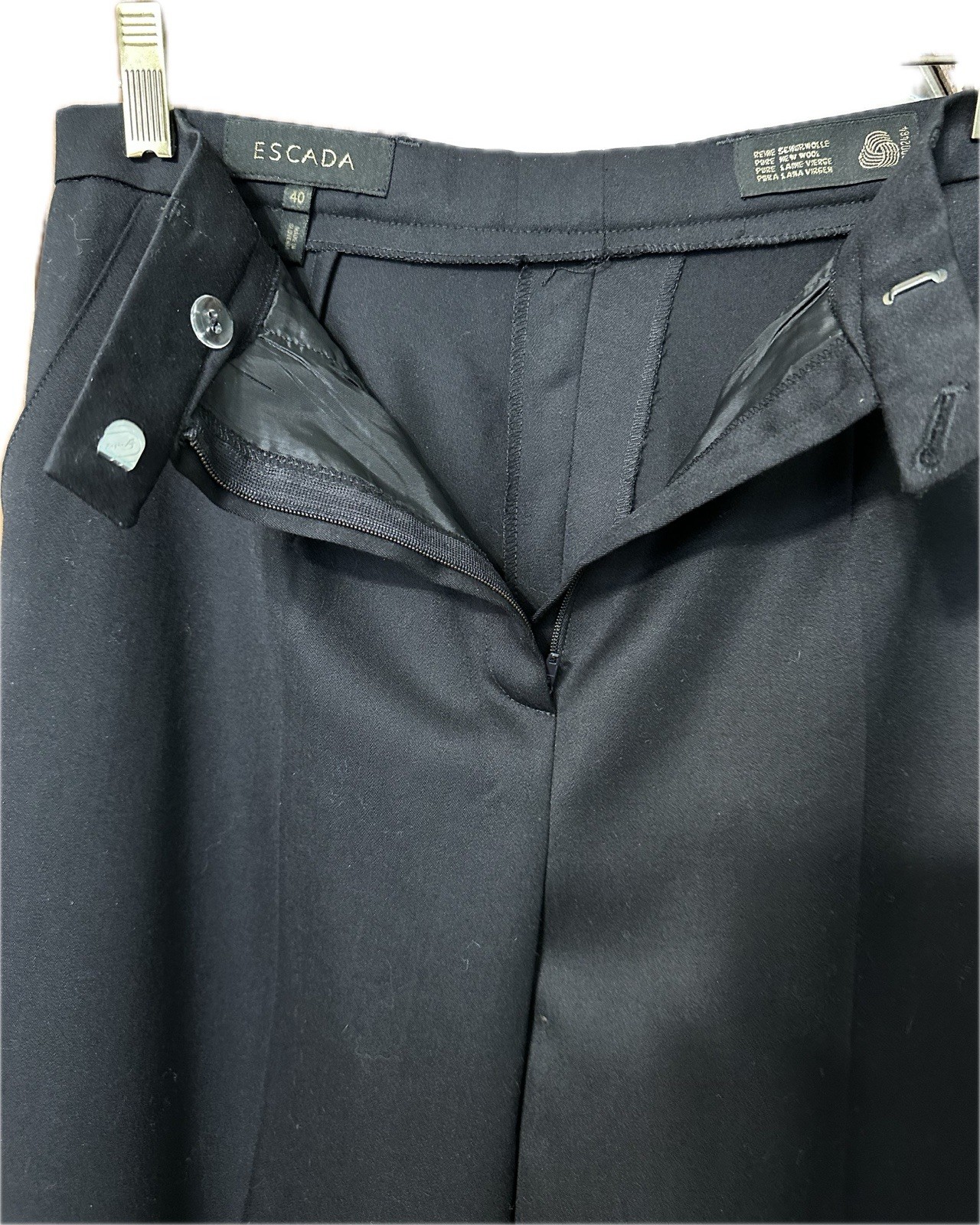 как выглядит NWOT ESCADA Dark Navy Pants Womens 40 US 8/10 Wide Leg 100 Wool Flat Front фото