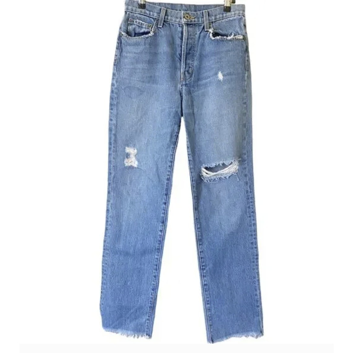 как выглядит Carmar Luna Distressed Straight Leg Denim Jeans Hi-Rise Medium Wash Cotton 26 фото