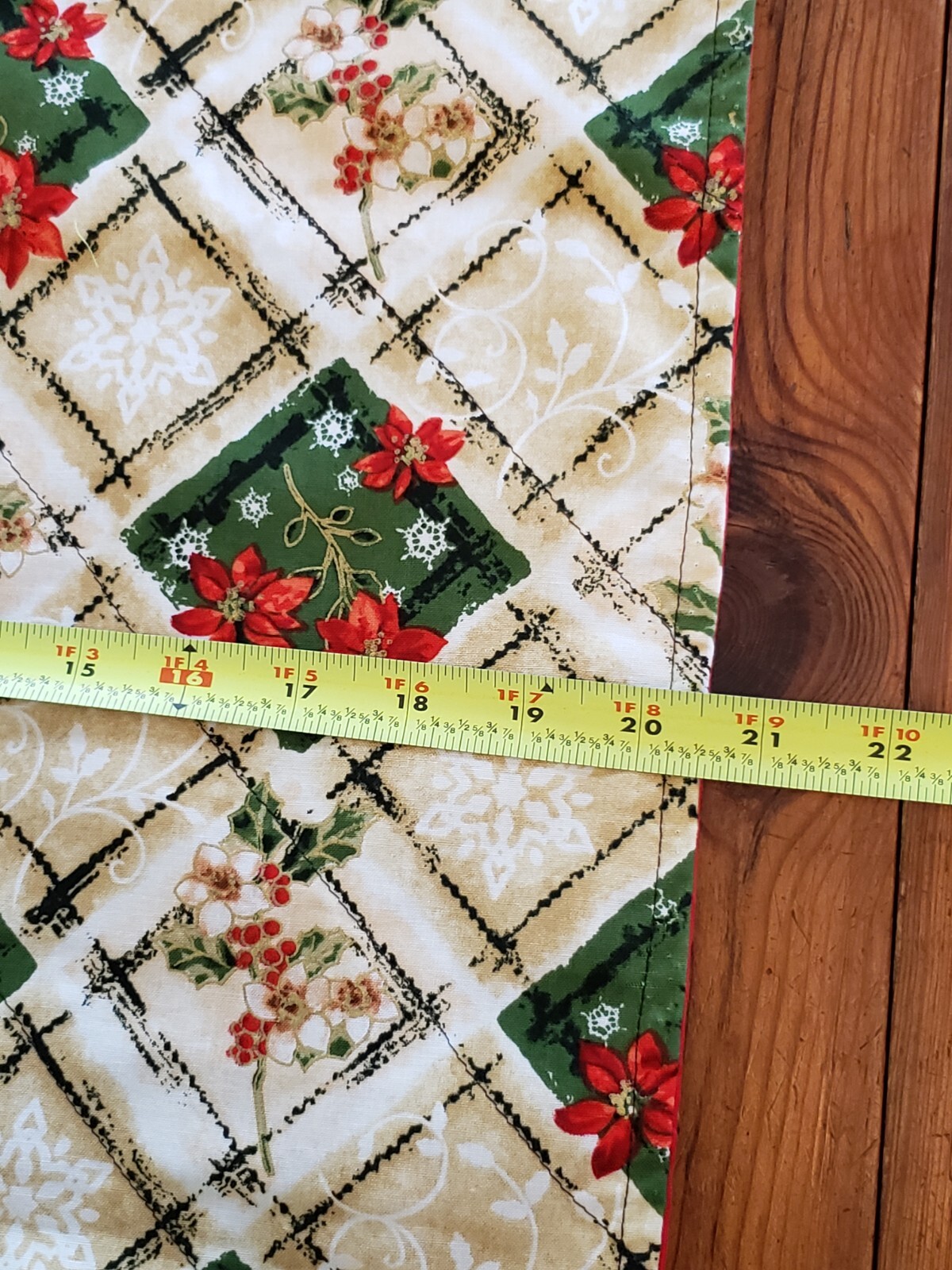 • Holiday Table Runner Hand Sewn Cotton Fabric Poinsettia Flowers Reversible