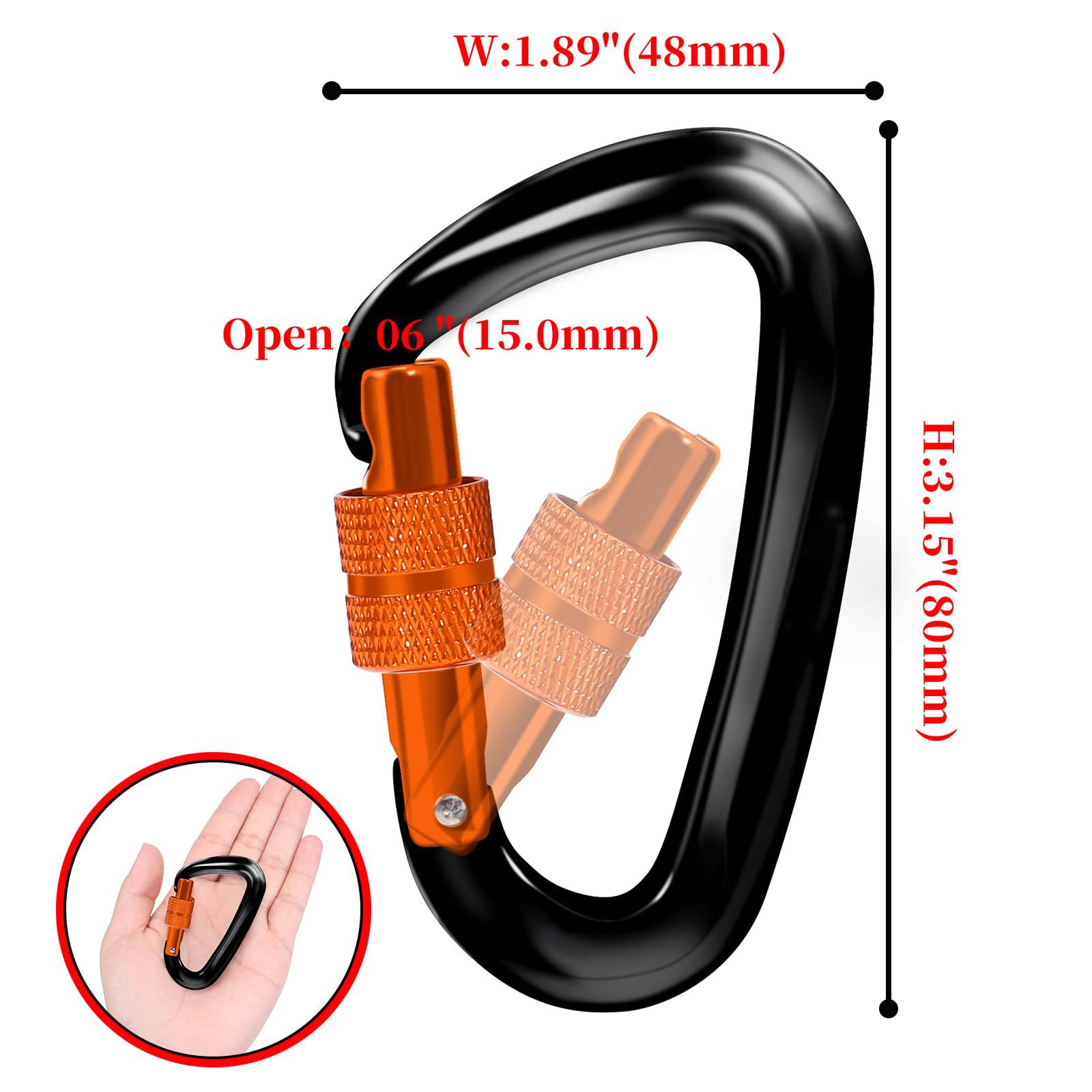 Locking Carabiner Clips 12kN 2697Lbs, Hammock Hiking Keychain Utility, Black