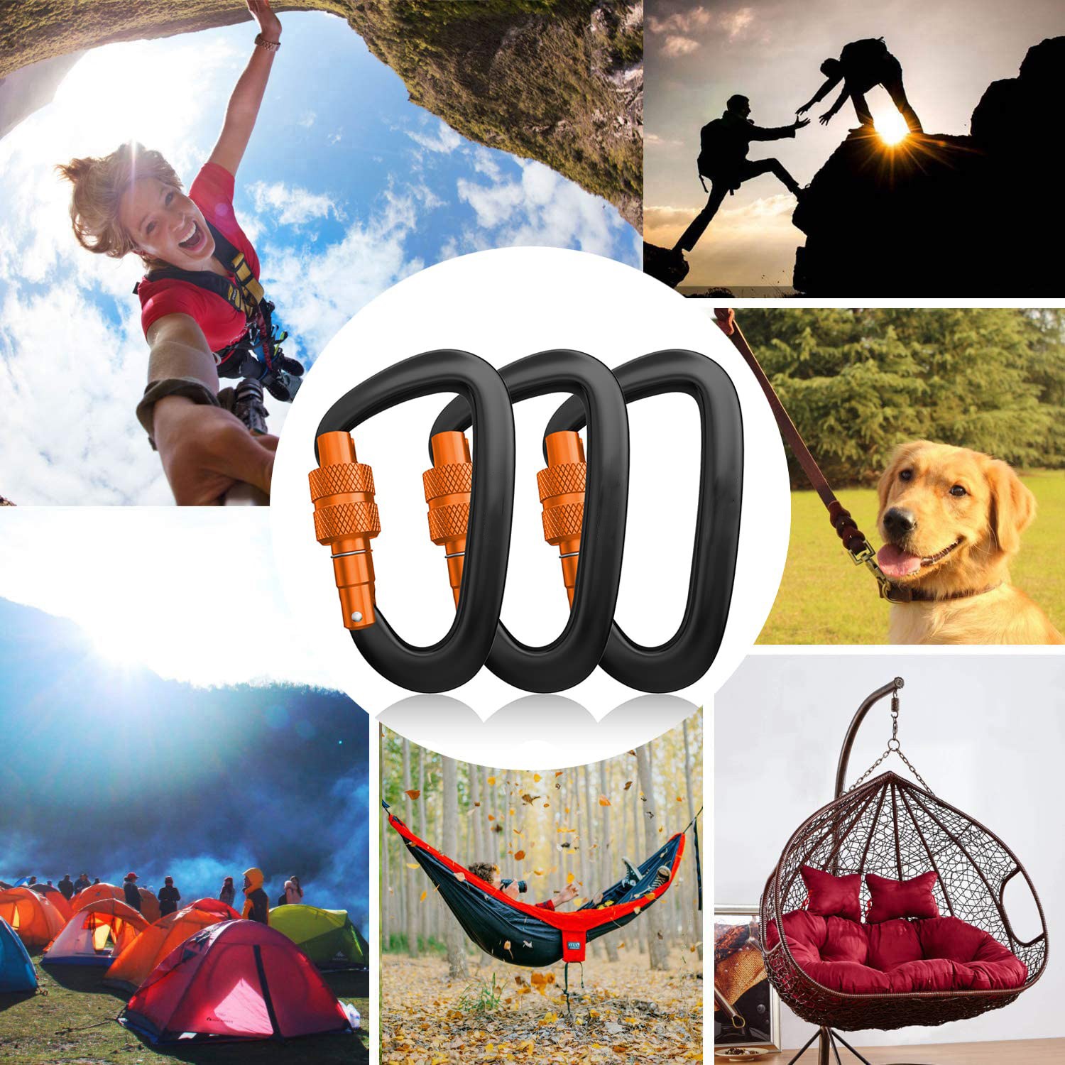 как выглядит Heavy Duty Carabiner Clip 12kN, Hammock Dog Leash Outdoor Gear Black фото