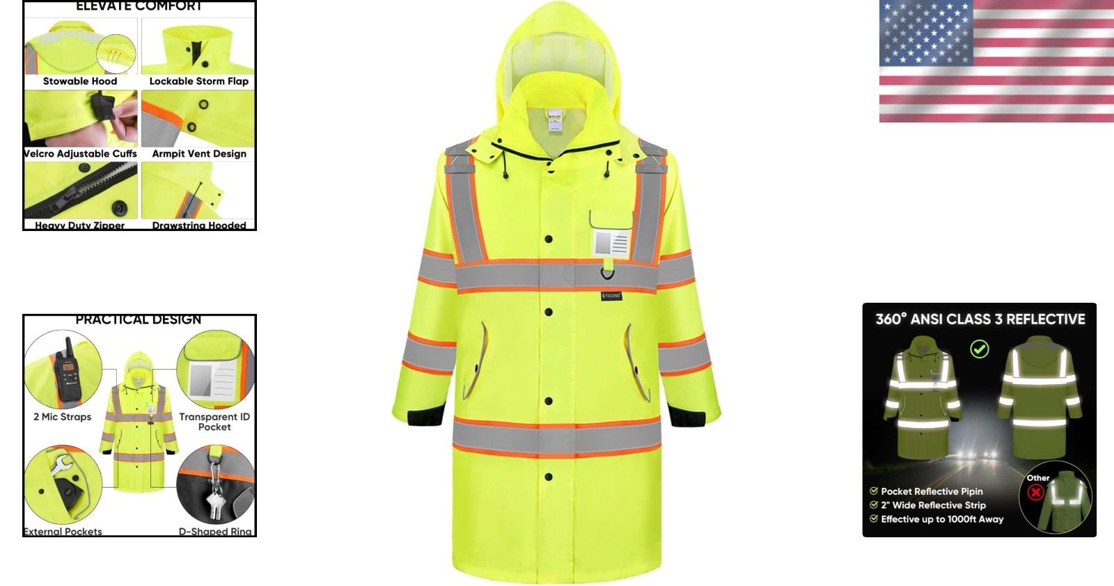 HIGH VISIBILITY REFLECTIVE ROAD WORK SAFETY RAINCOAT- ANSI CLASS 3 SAFETY JACKET