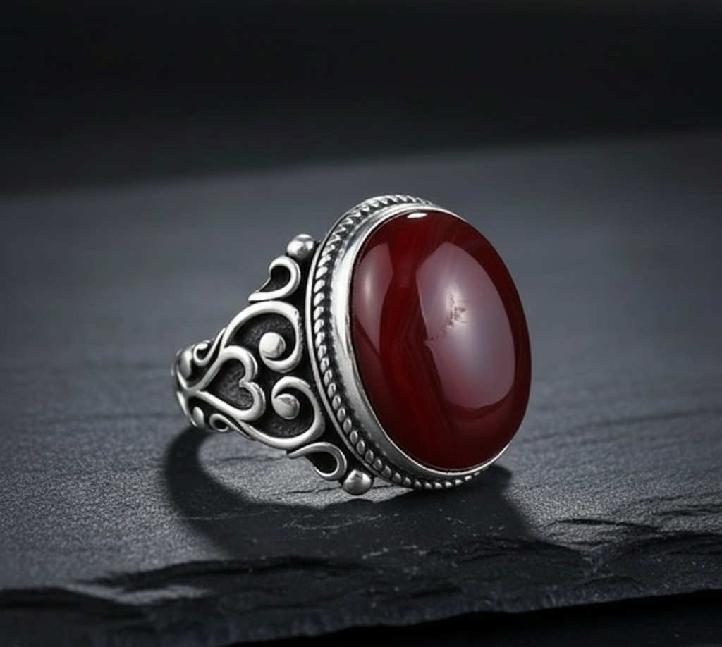 как выглядит 925 Sterling Silver Handmade Red Agate Oval Red Carnelian Gemstone Ring фото