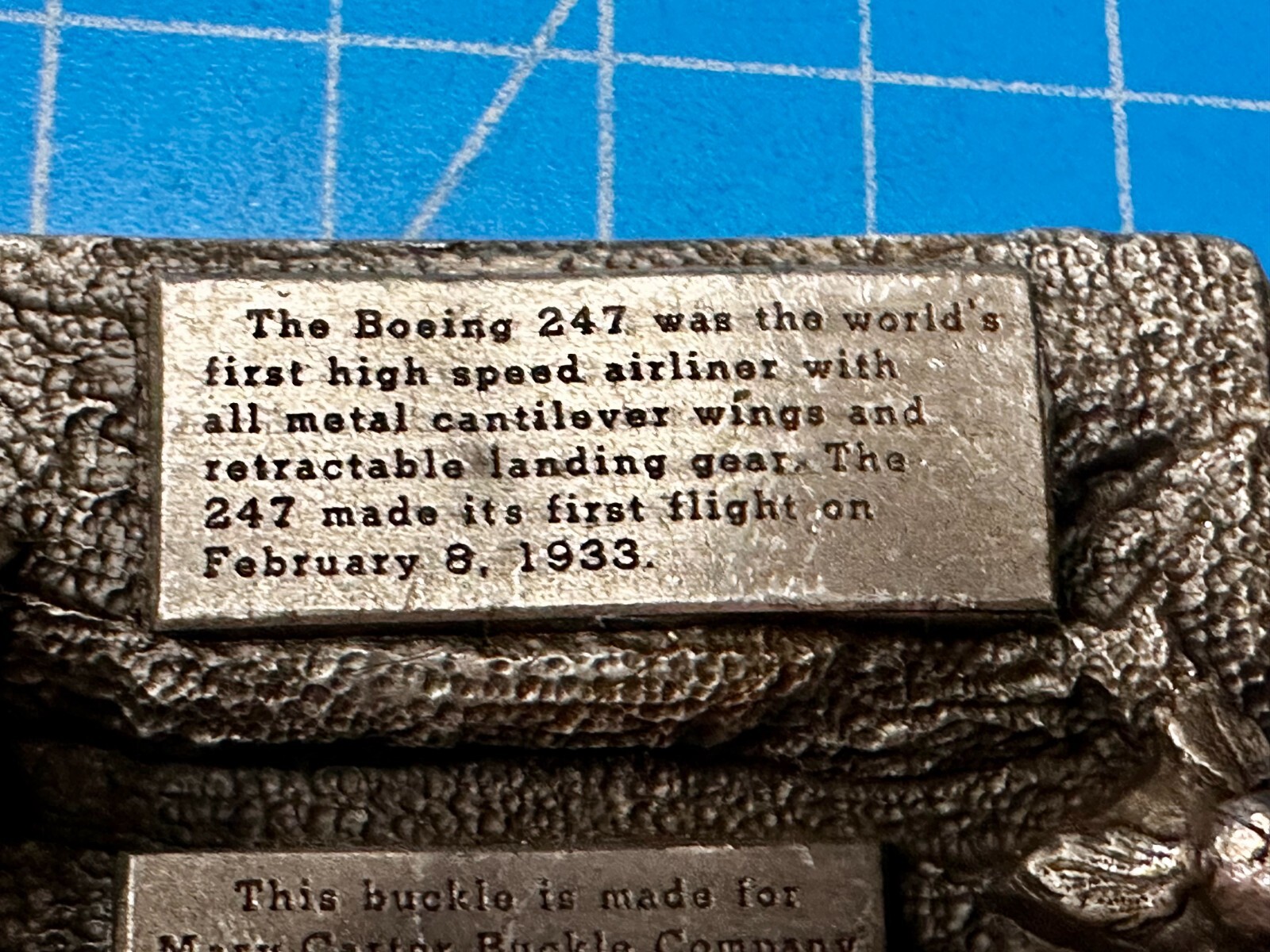 The Boeing 247D High Speed Aircraft Vintage 1986 Belt Buckle by Siskiyou