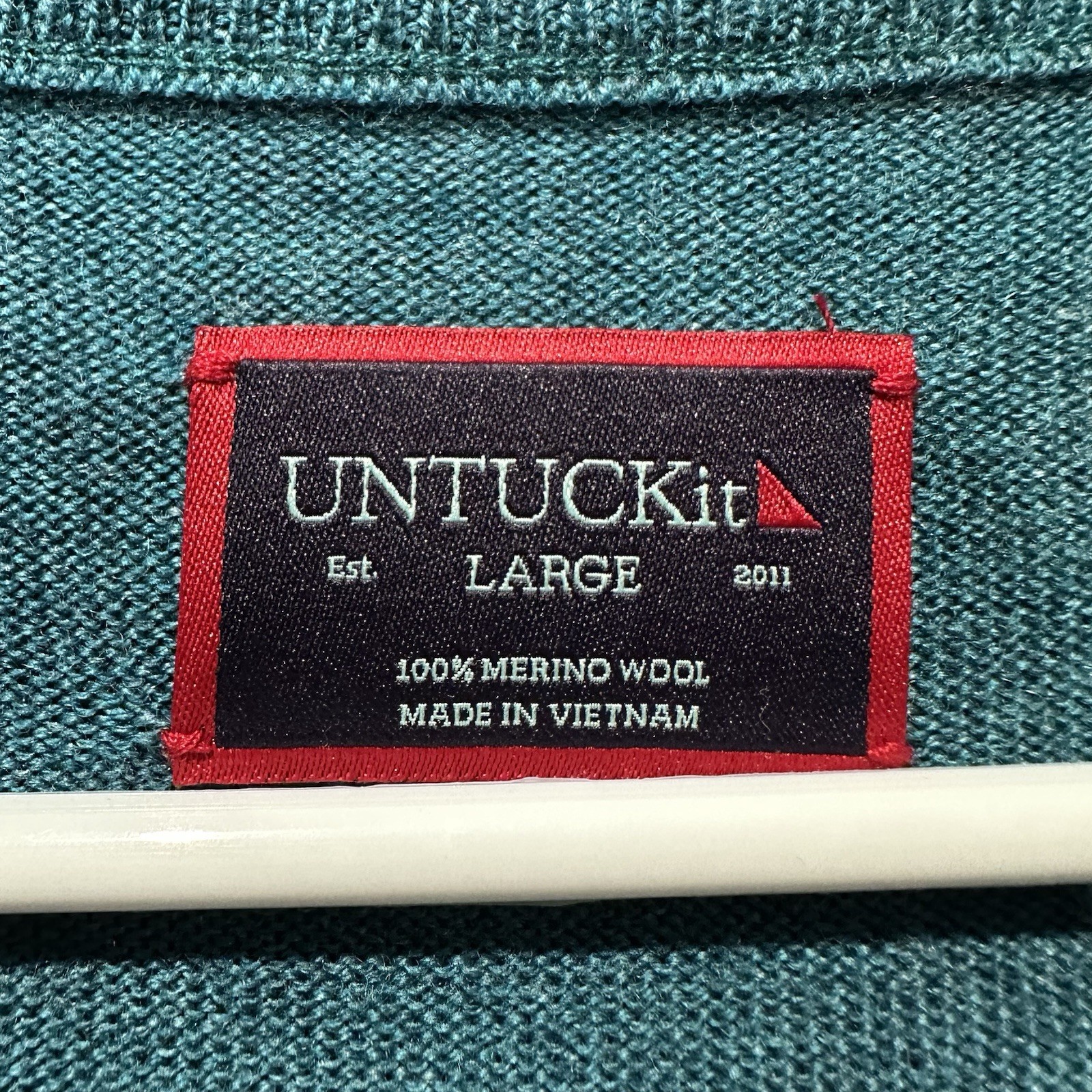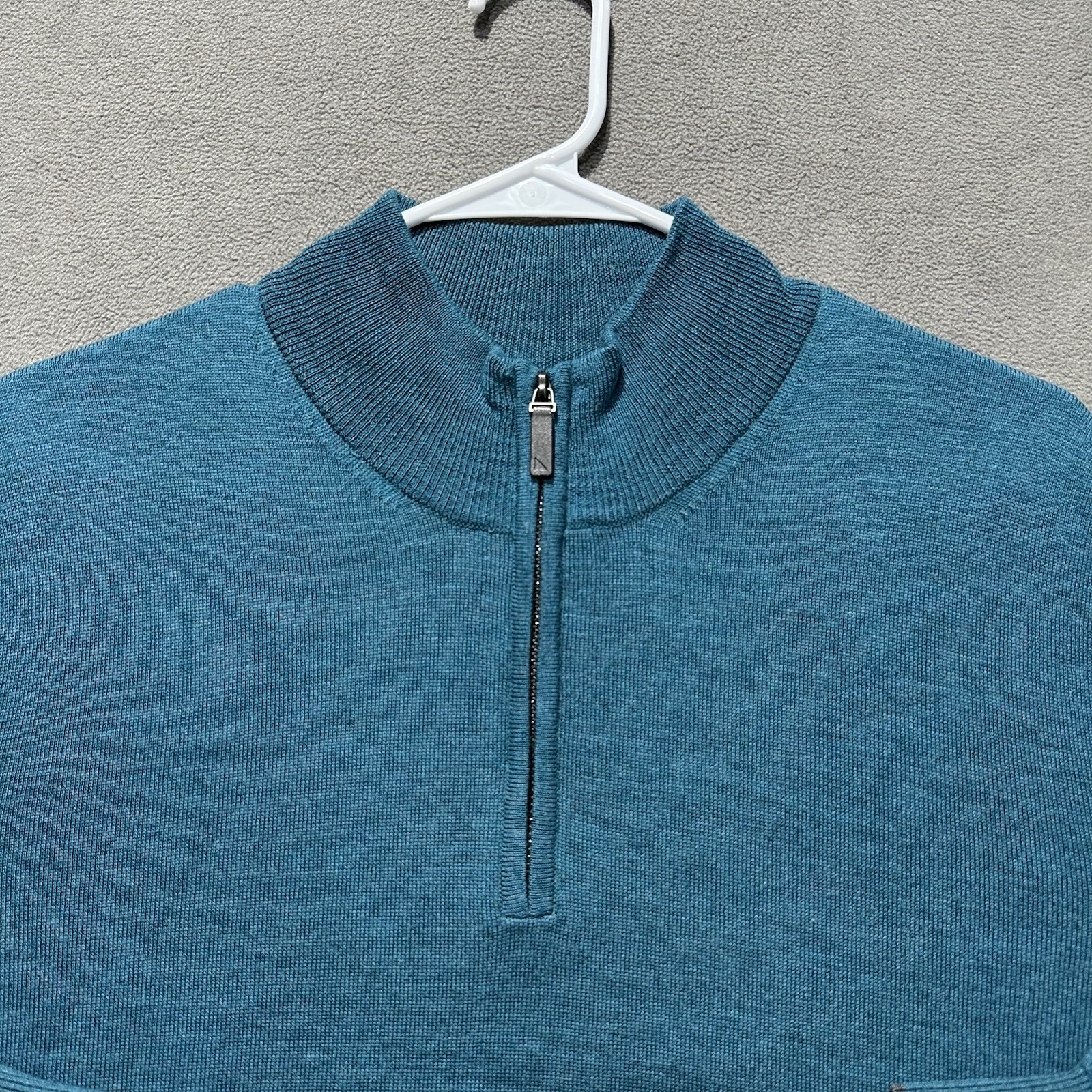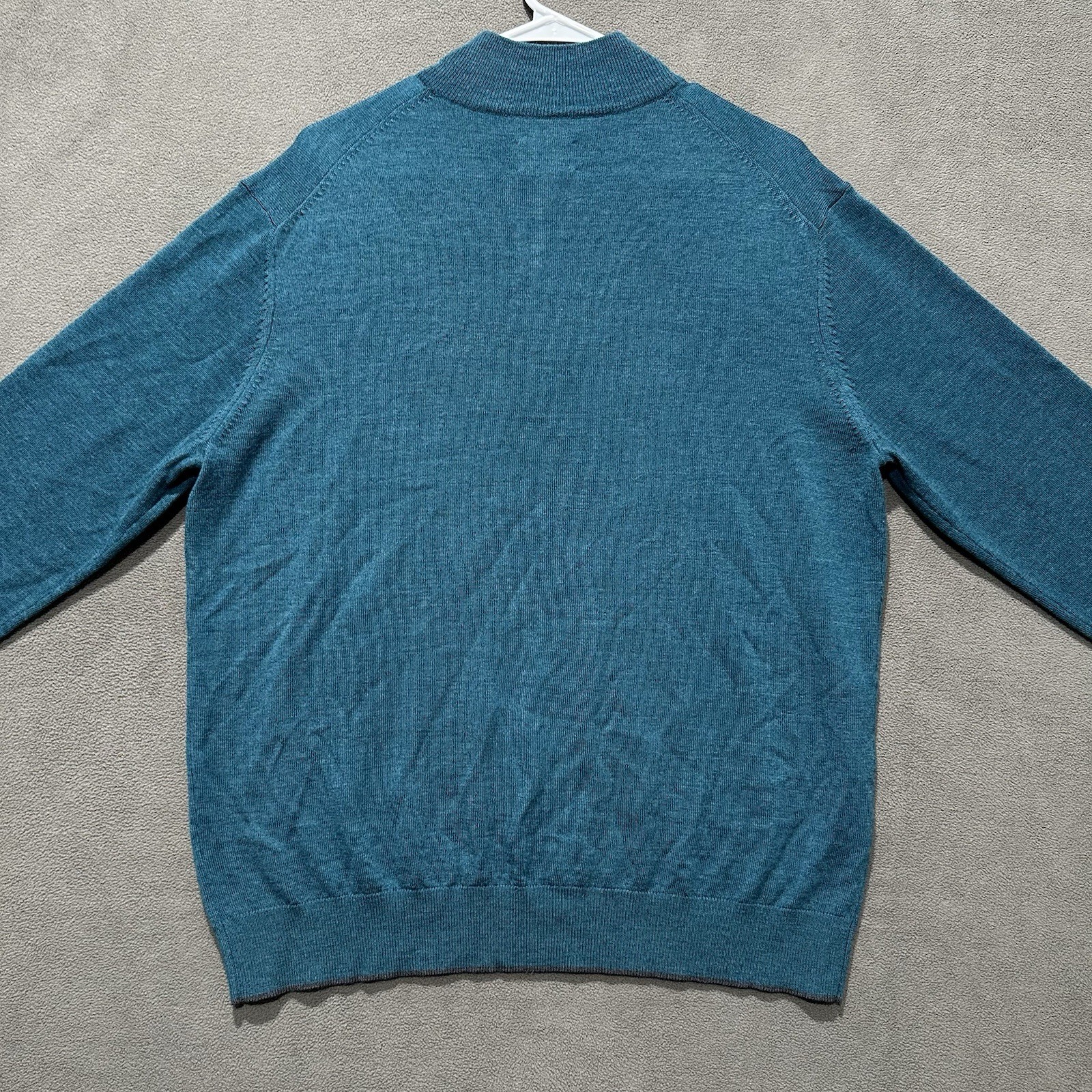 как выглядит UNTUCKit Sweater Mens Large Blue 1/4 Zip Belguardo 100 Merino Wool Pullover EUC фото