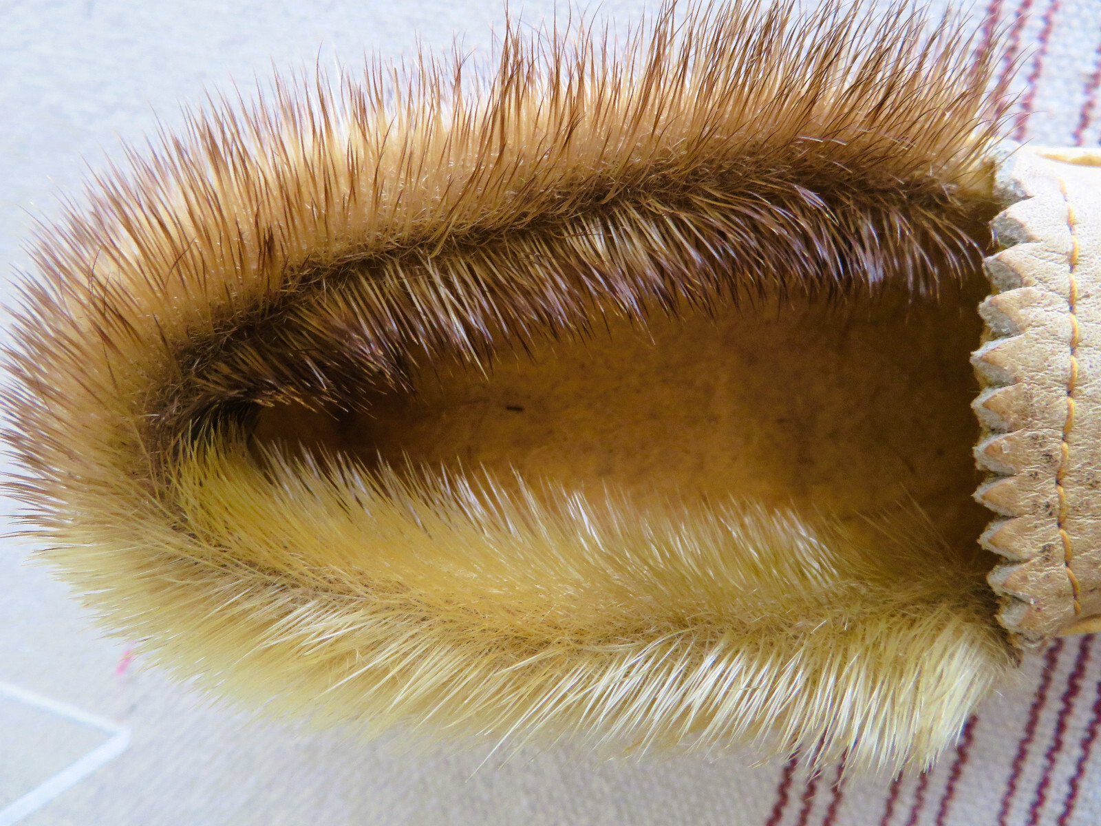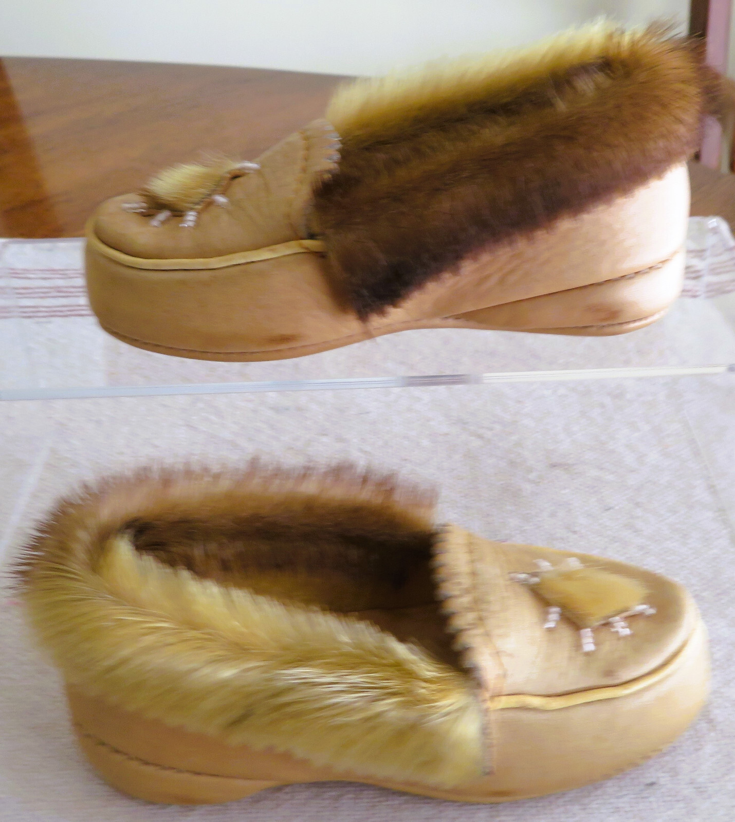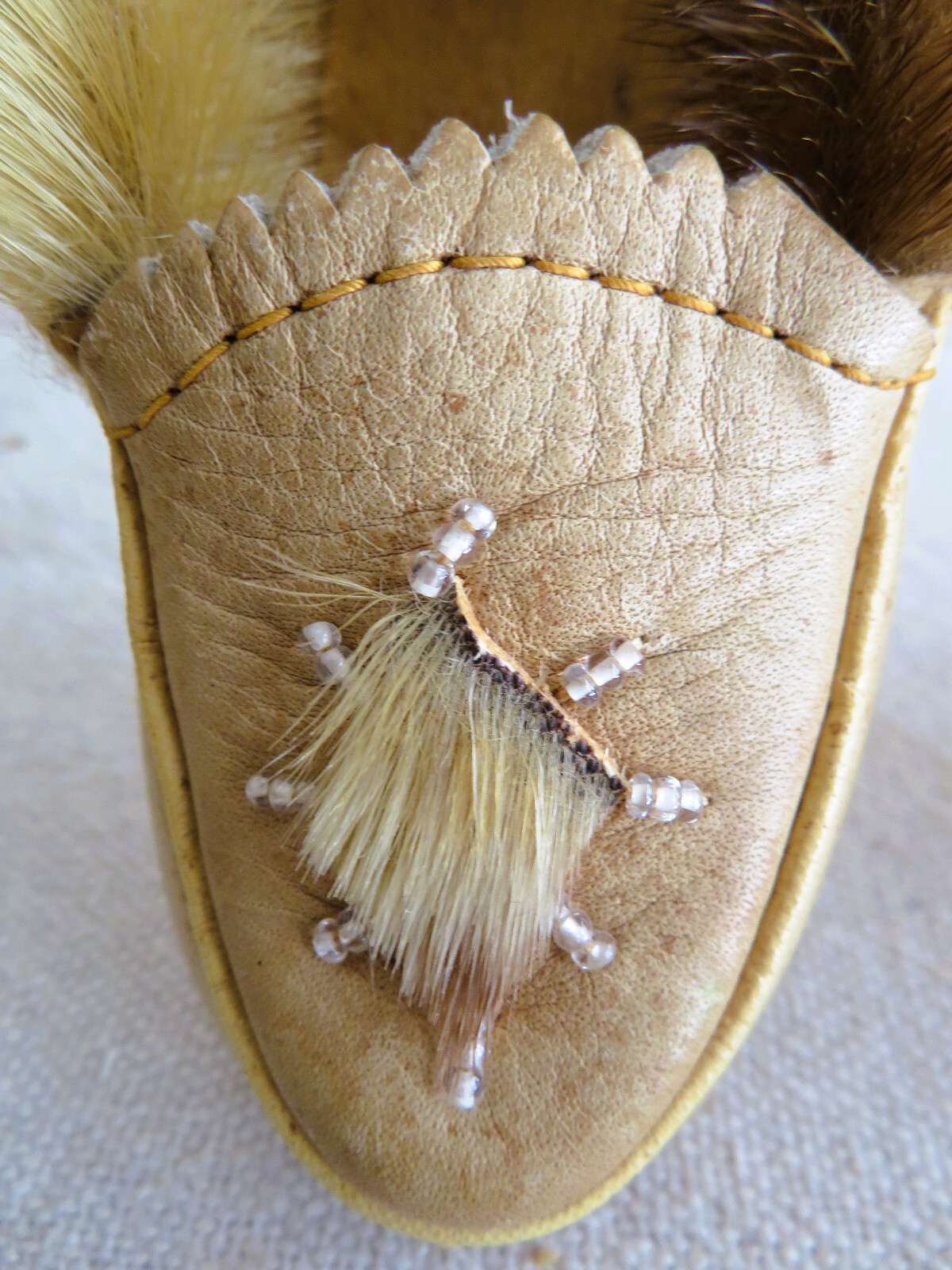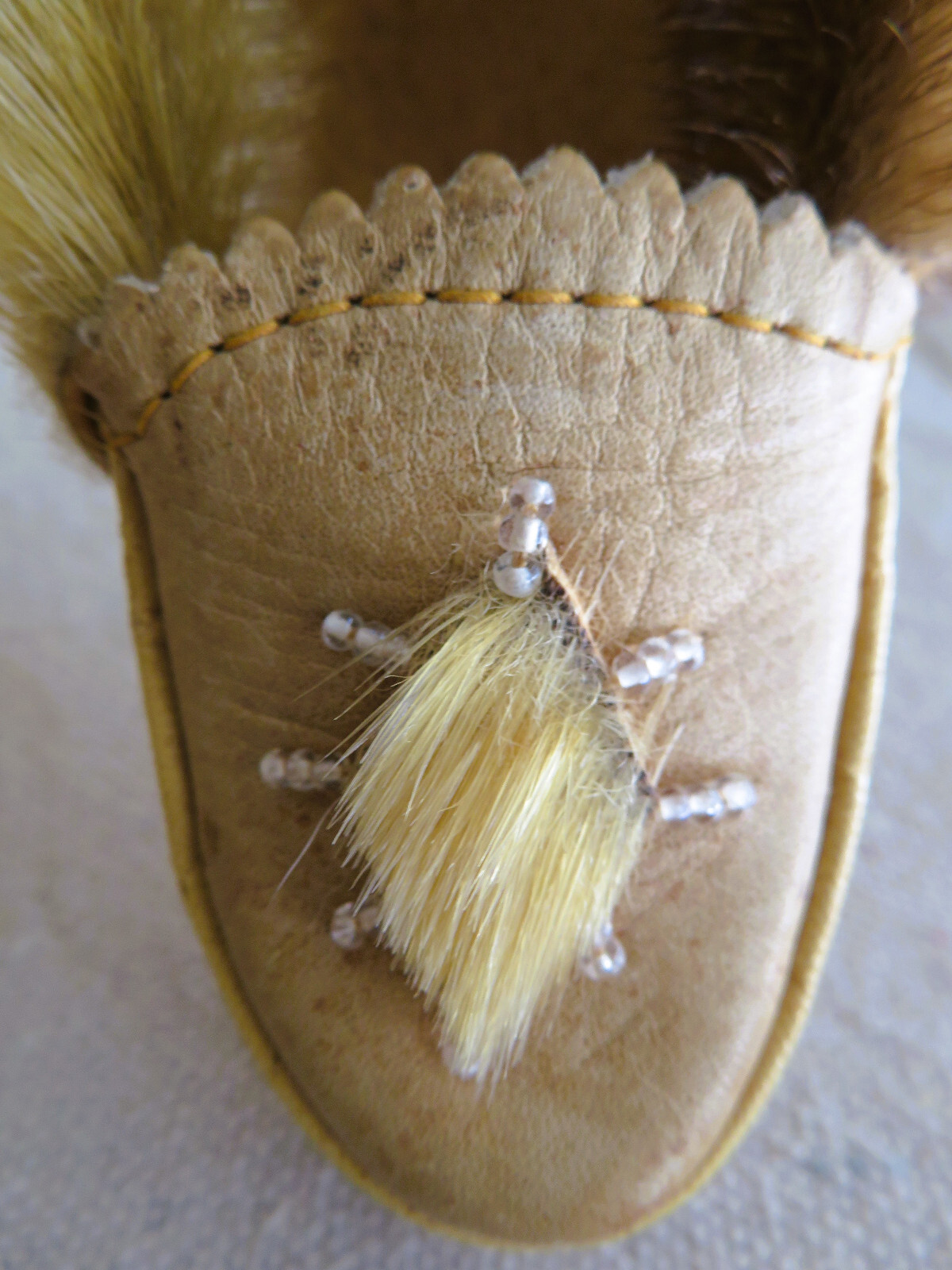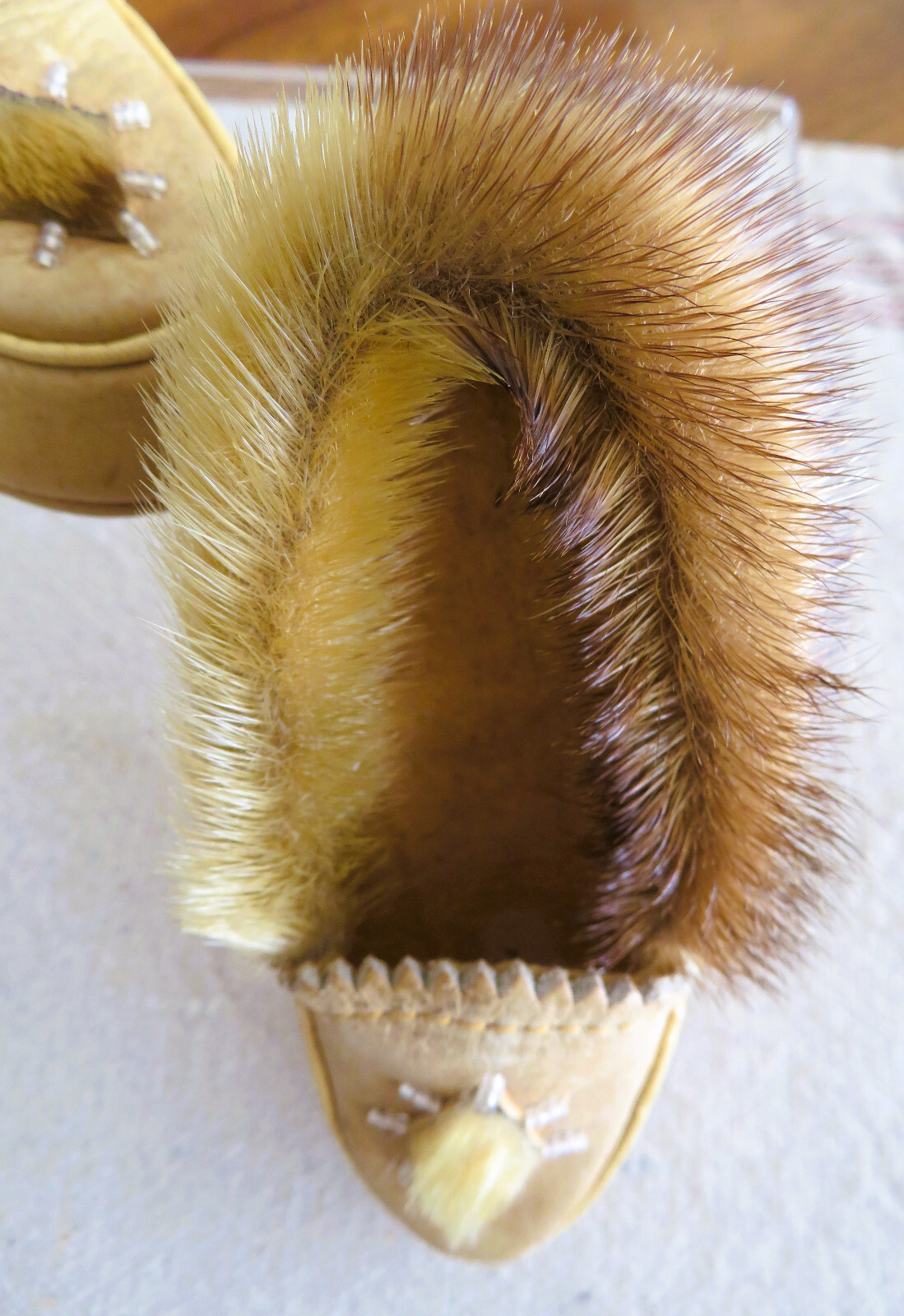 как выглядит Vintage 1970s Childrens/Toddlers Beaded Fur Leather Moccasin Slipper Shoes фото