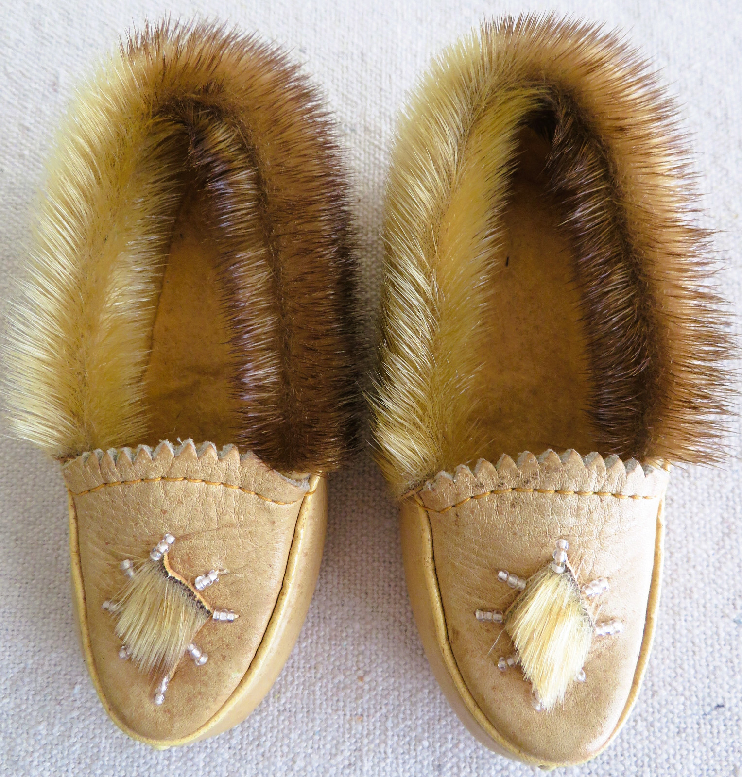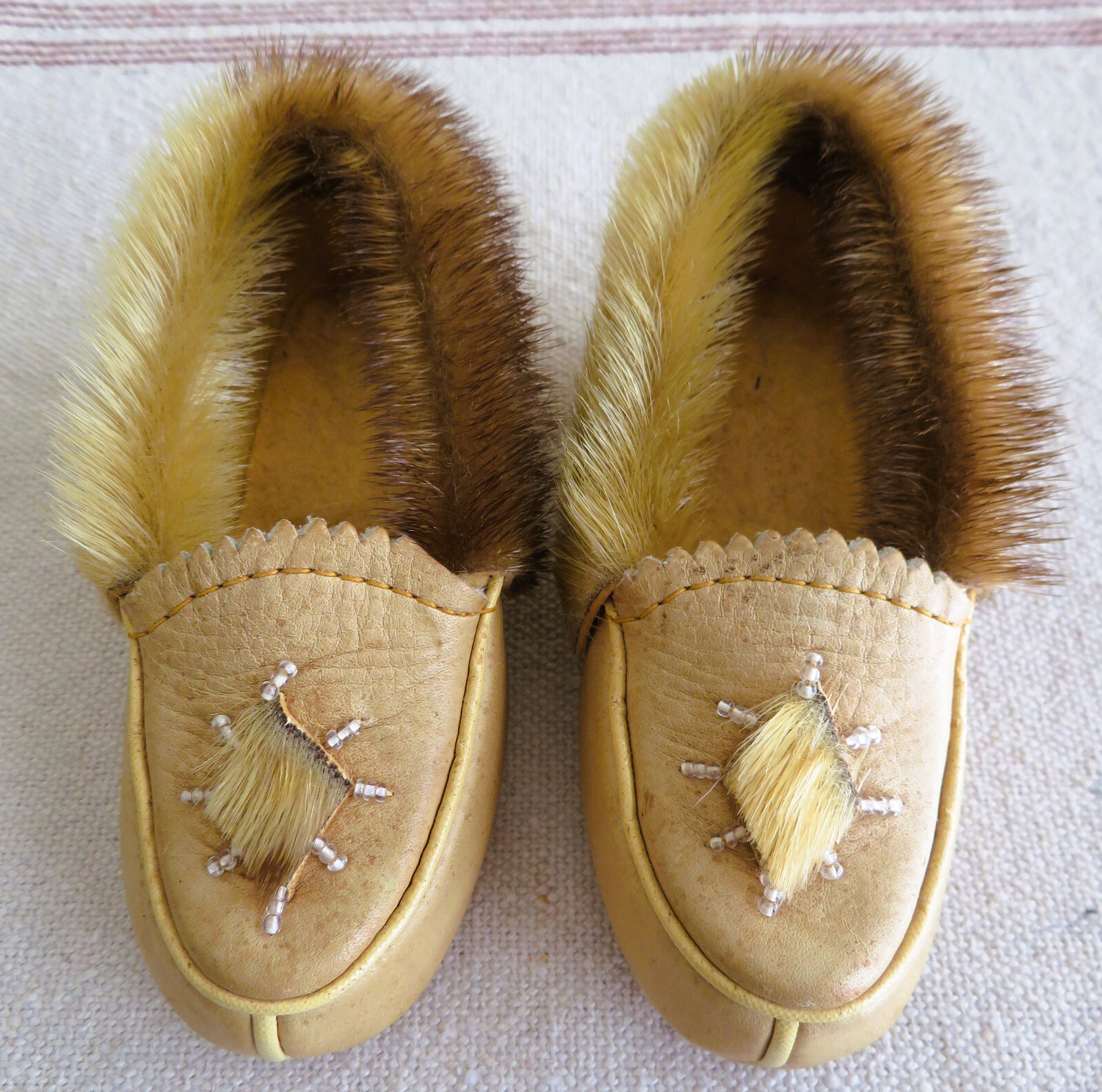 Vintage 1970's Children's/Toddlers Beaded Fur Leather Moccasin Slipper Shoes