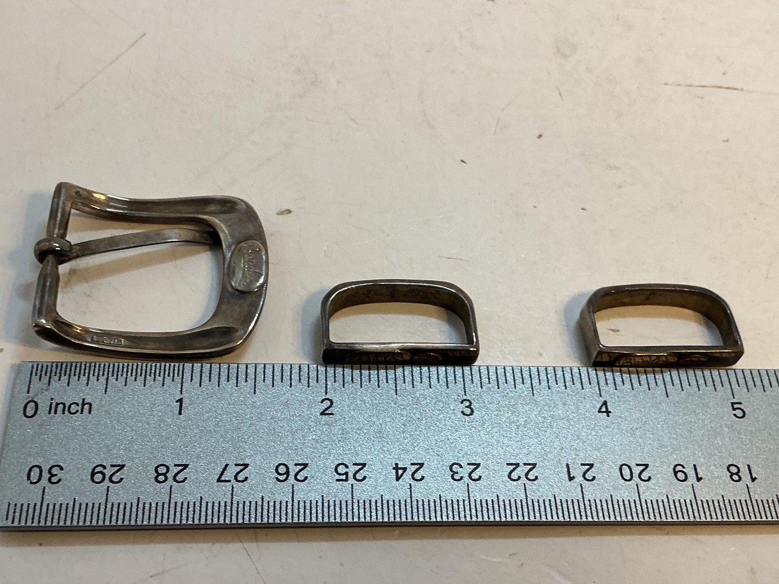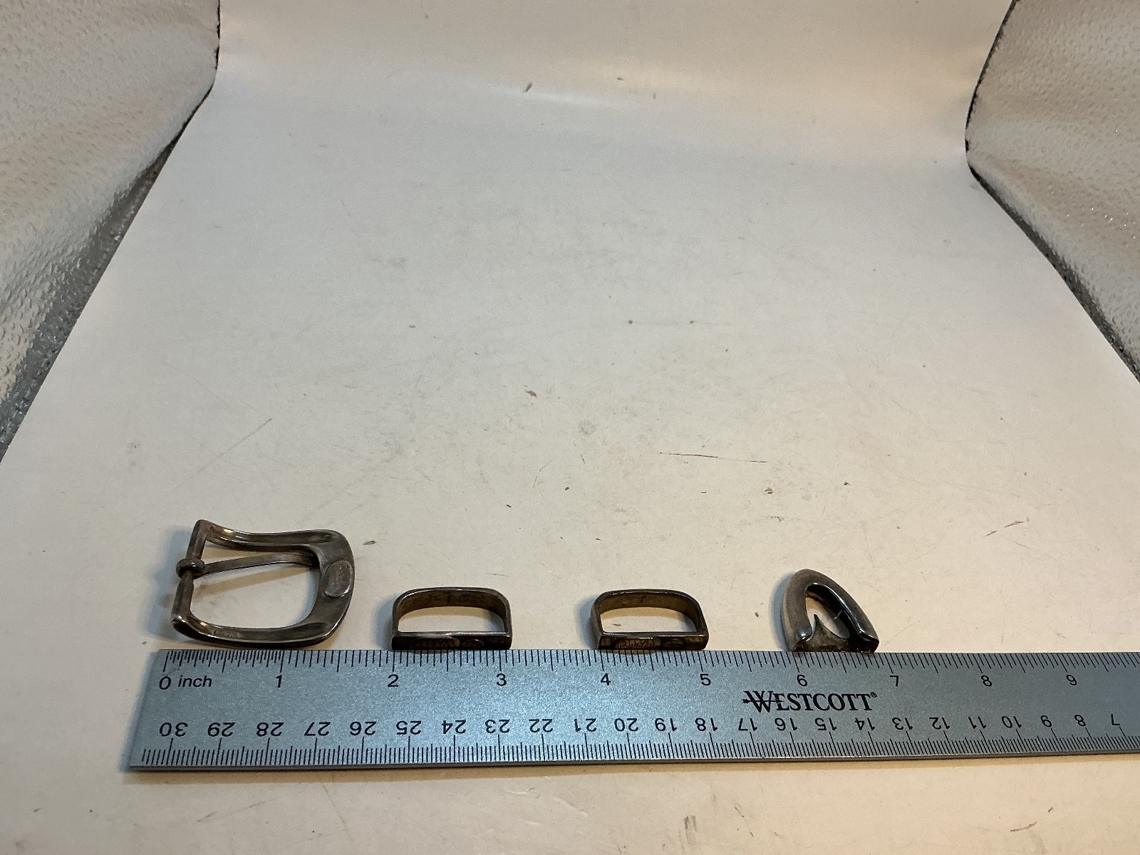 как выглядит Vintage Bandera 4pc Sterling Silver Plain Squared Belt Buckle 47.36 HTF фото