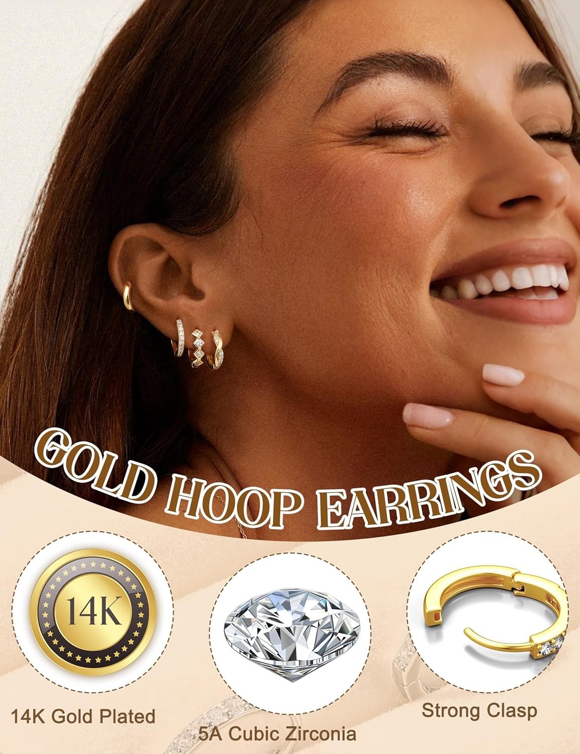Small Gold Hoop Earrings for Women Hypoallergenic 14K Gold Plated Huggie Hoop Ea