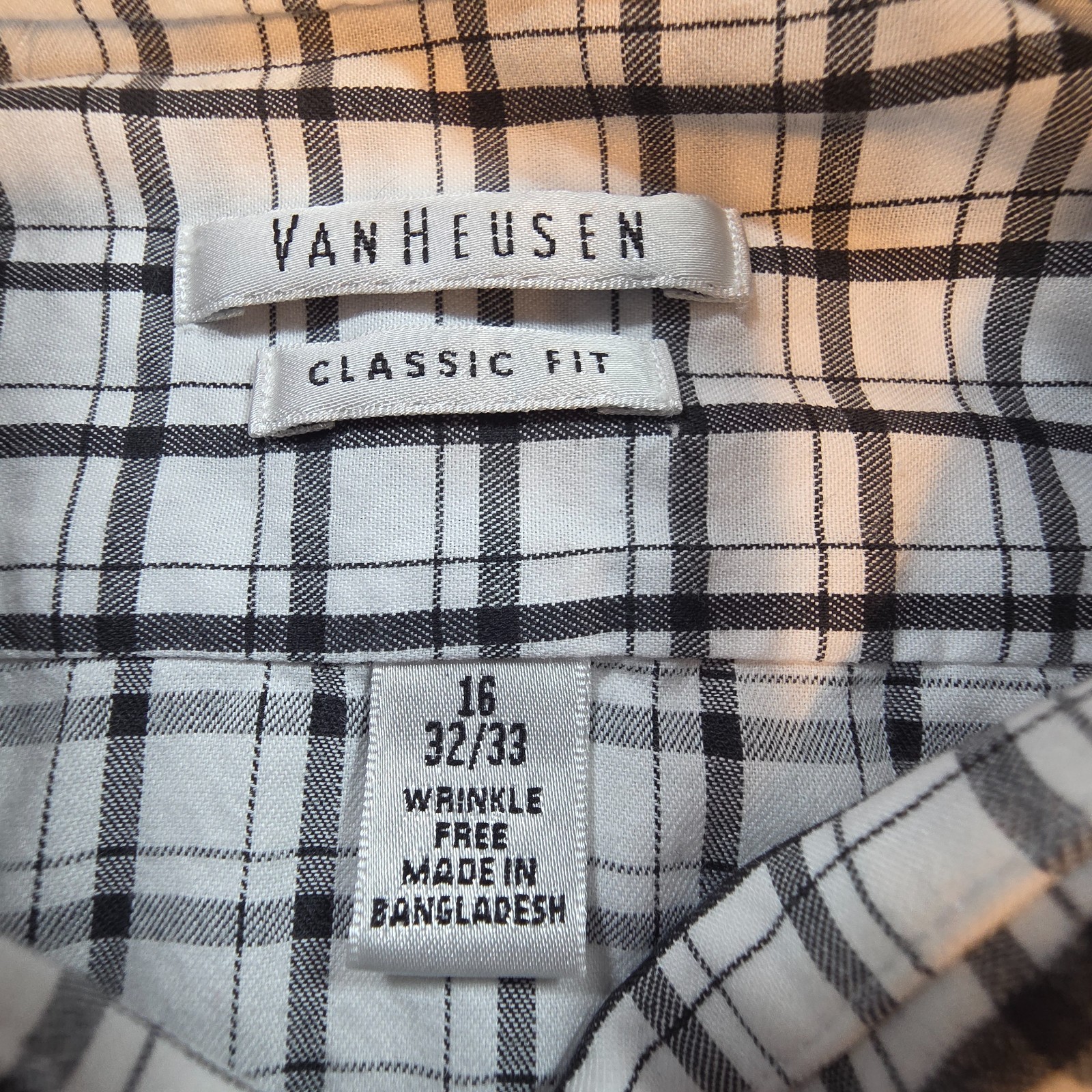 Van Heusen Men s Dress Shirt 16 32/33 Classic Fit Long Sleeve Black White Plaid